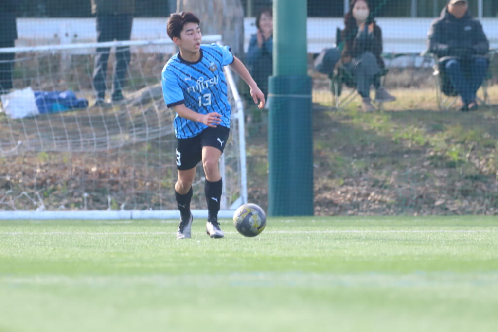フロンターレ等々力は10分負傷した久村に代わり13川上琉偉が右SBに。