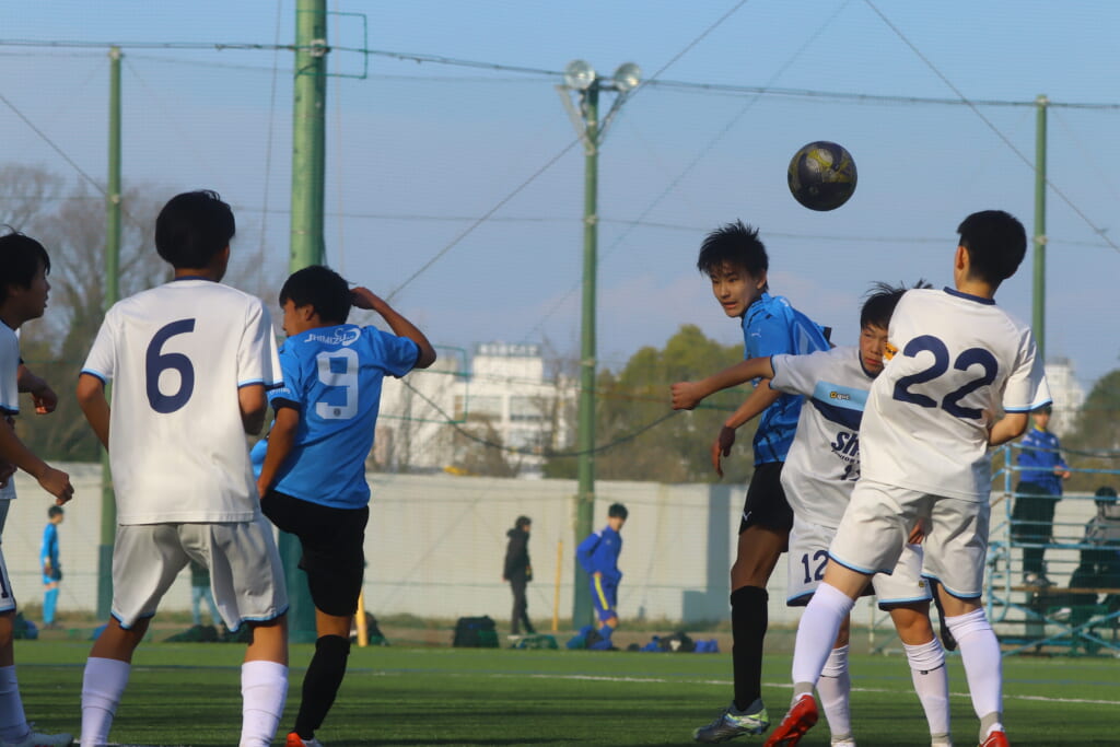 右サイドでスローインを得たシュートJrユースは、黒田がクロス。しかし、岩田陸叶がクリア。