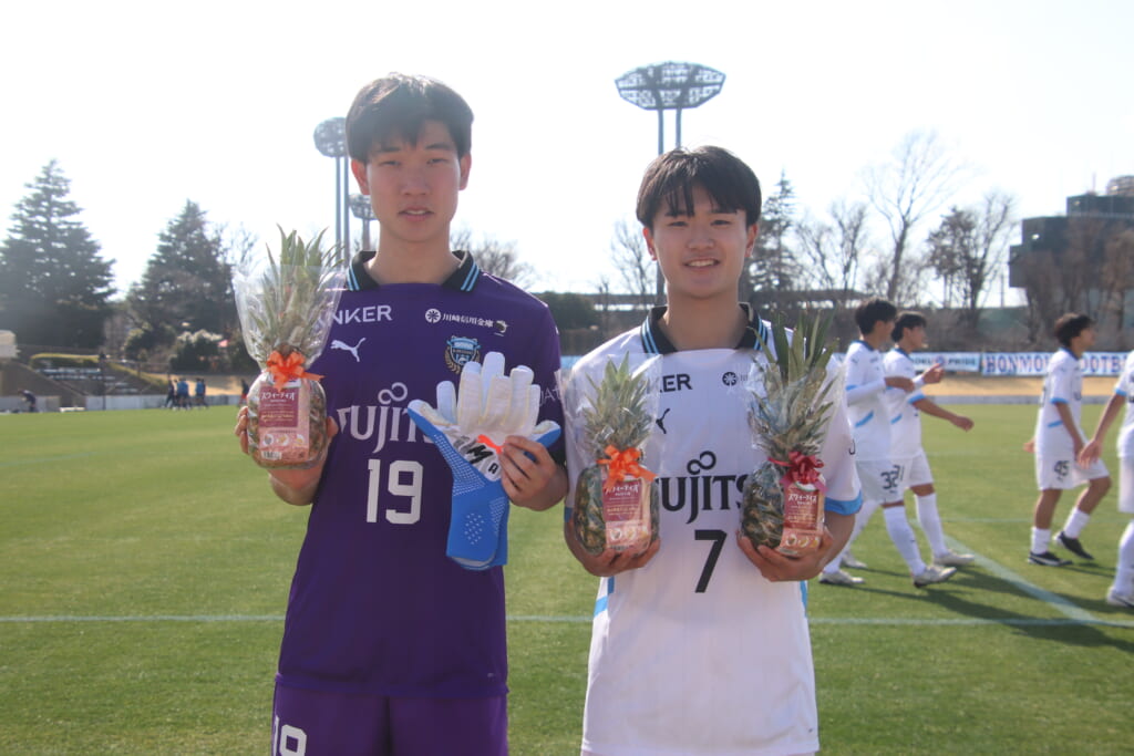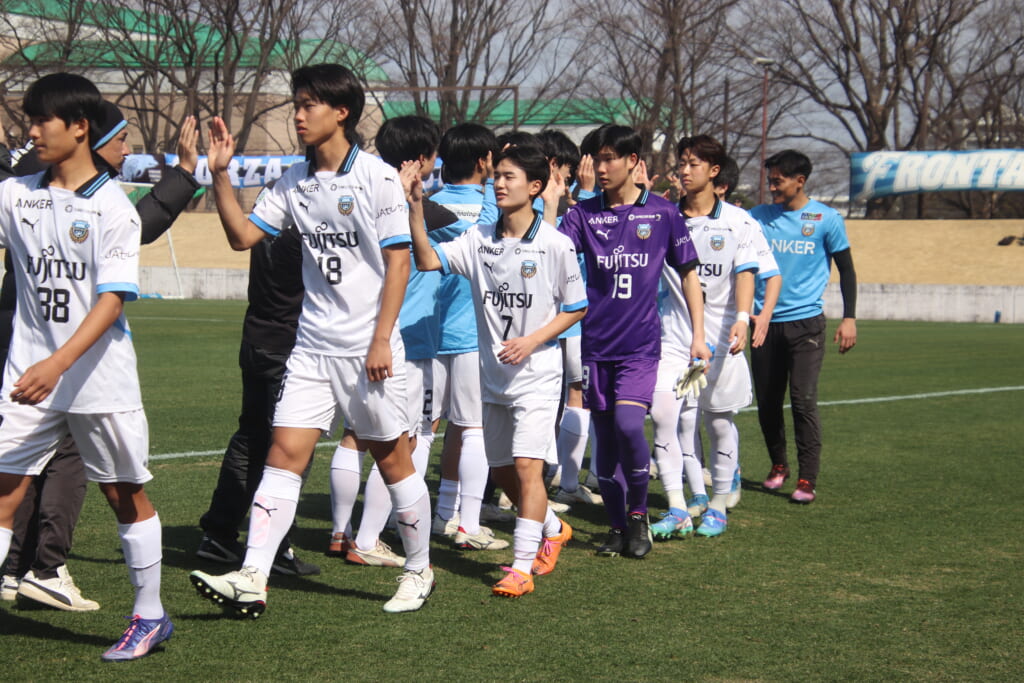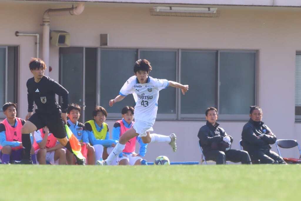 フロンターレは32分中野、對馬、小川翔太、荒井が下がり、フロンターレ生田から昇格の1年、37夏目瑛斗、フロンターレ等々力から昇格の28猪又聖生、31渡部泰地、43林凜太朗がピッチへ。