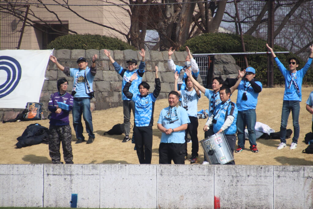 スタンドには多くの両チームの選手の家族らが集まり、それぞれのゴール裏にはフロンターレもYSCCも多くのサポーターが集結し、幕を掲出。