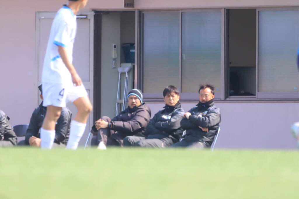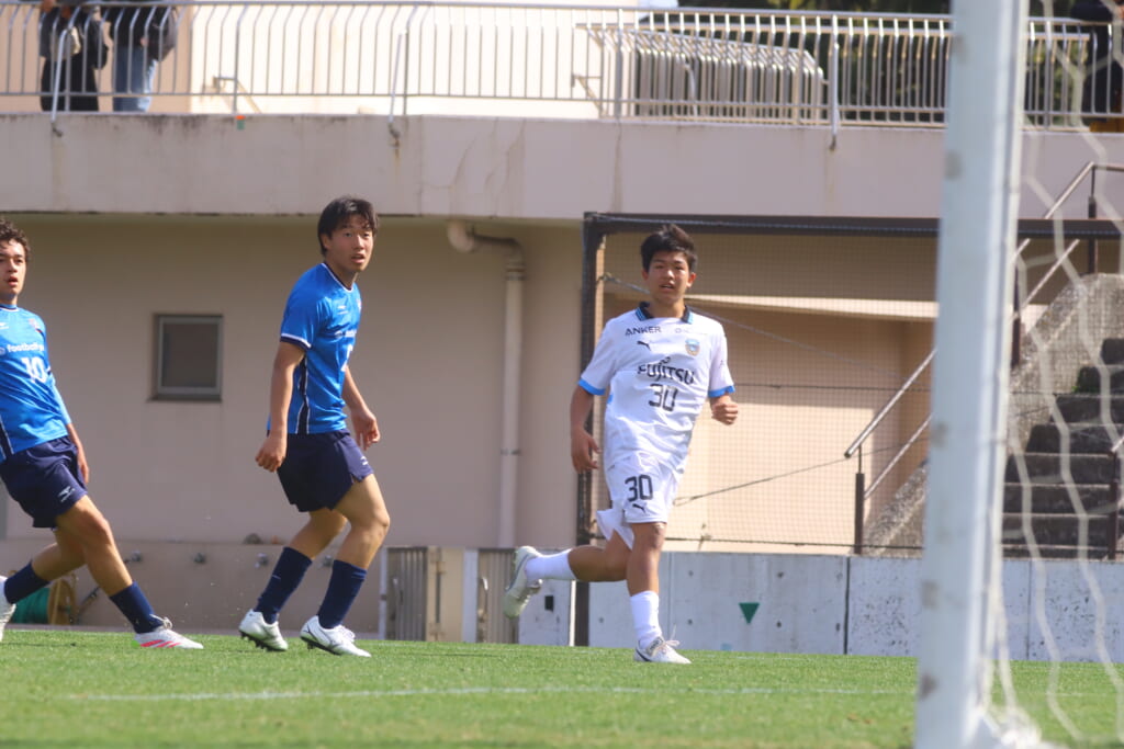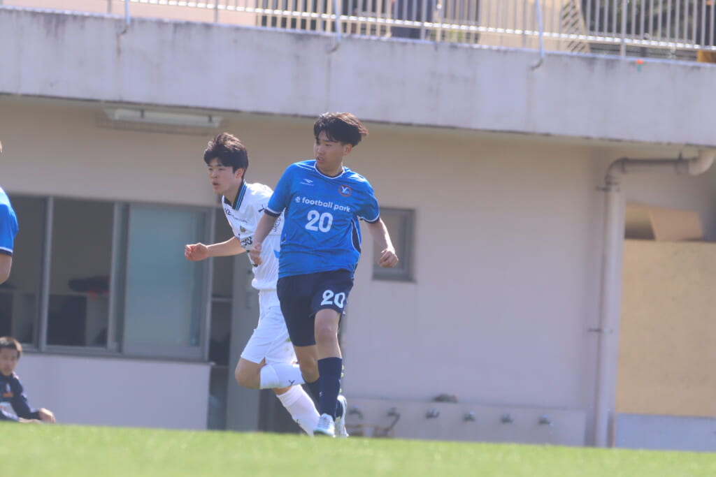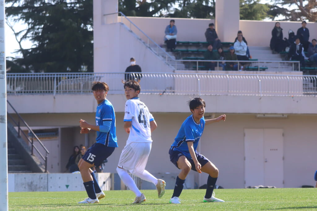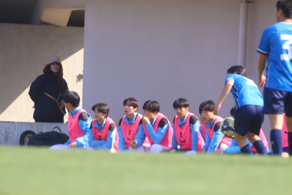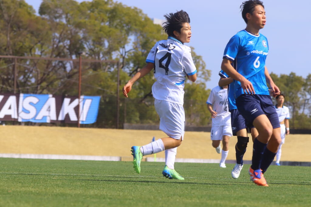 先発は、GK16一海陽遥、最終ラインは右から2江森祐馬、3浦野瑛仁、4山崎宏太、キャプテンの6山内稀斗、ボランチは10ティーネンカンプ健造、その前に14西村蒼悟、7宮崎稟士、右に18山崎佑太、左に11國分悠翔、前線は9大庭クリステンセン伶音。