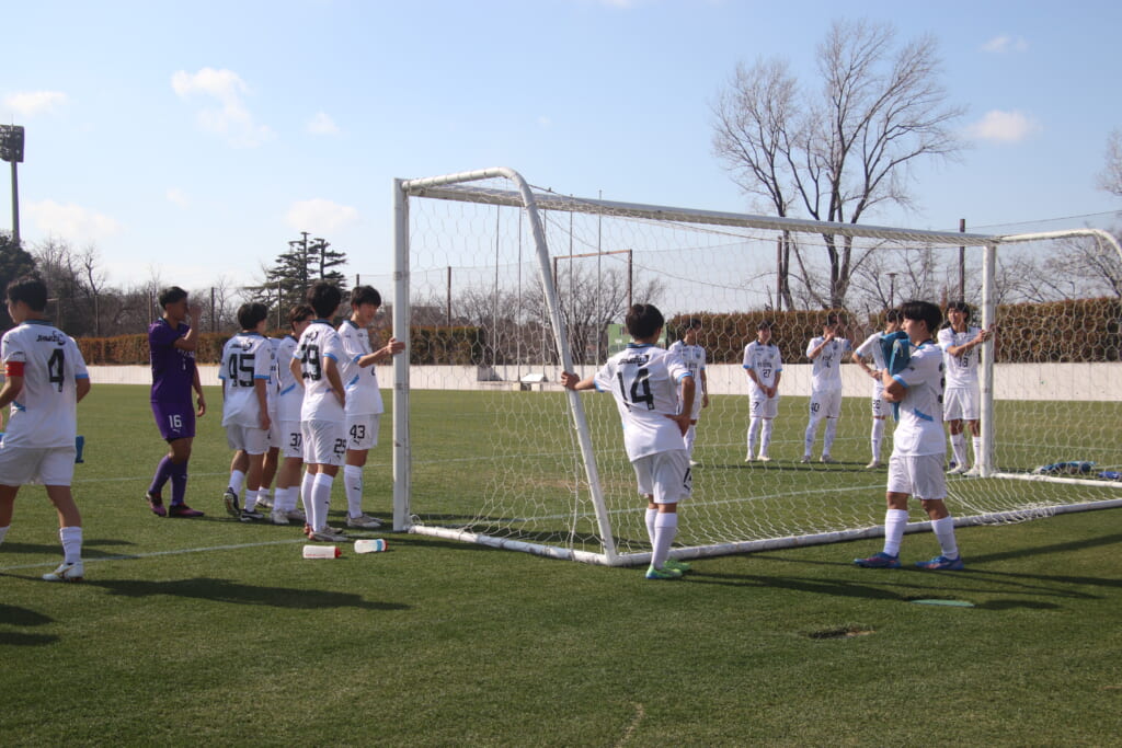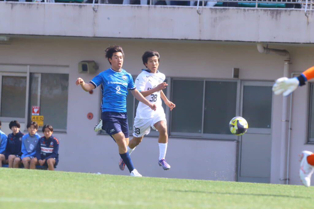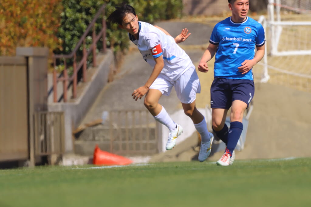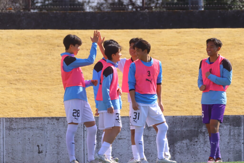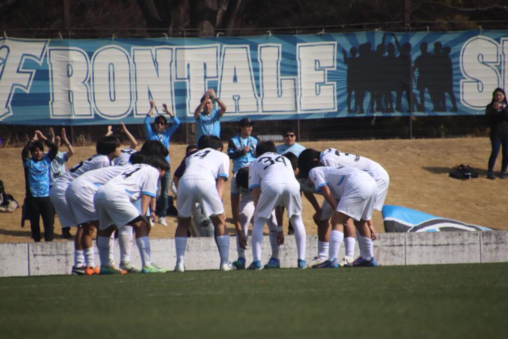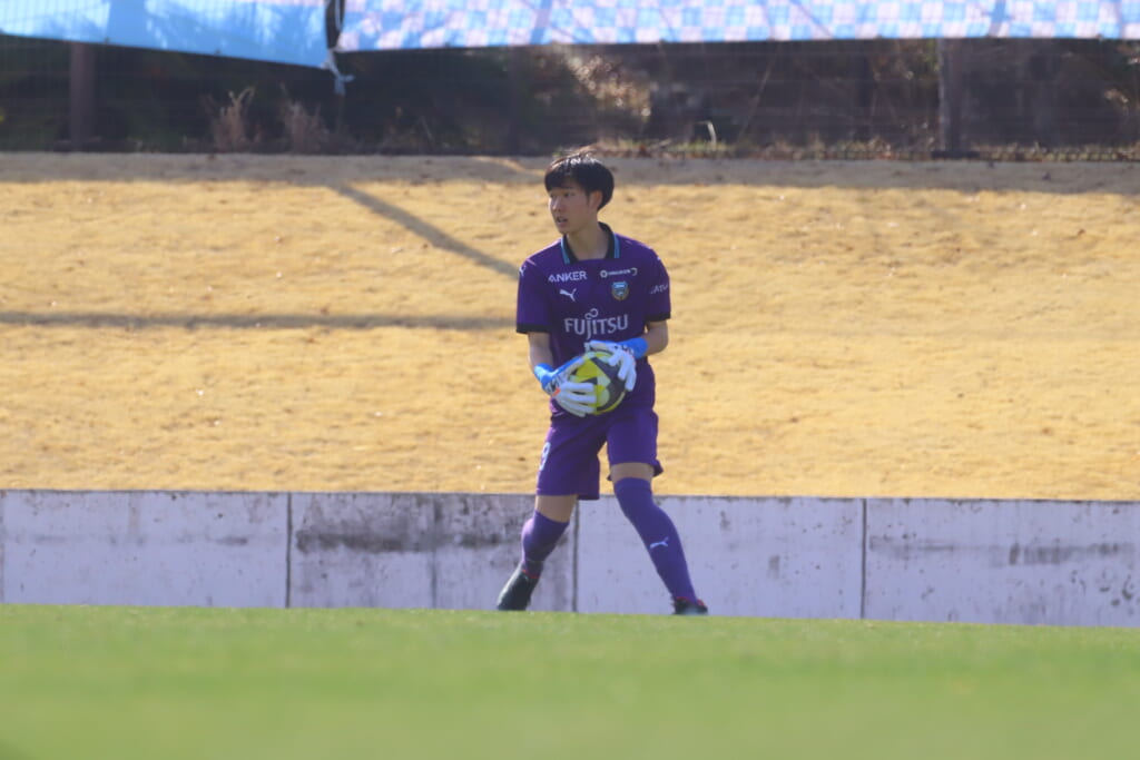 先発は、GK16一海陽遥、最終ラインは右から2江森祐馬、3浦野瑛仁、4山崎宏太、キャプテンの6山内稀斗、ボランチは10ティーネンカンプ健造、その前に14西村蒼悟、7宮崎稟士、右に18山崎佑太、左に11國分悠翔、前線は9大庭クリステンセン伶音。