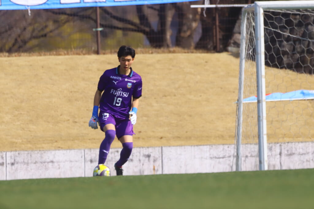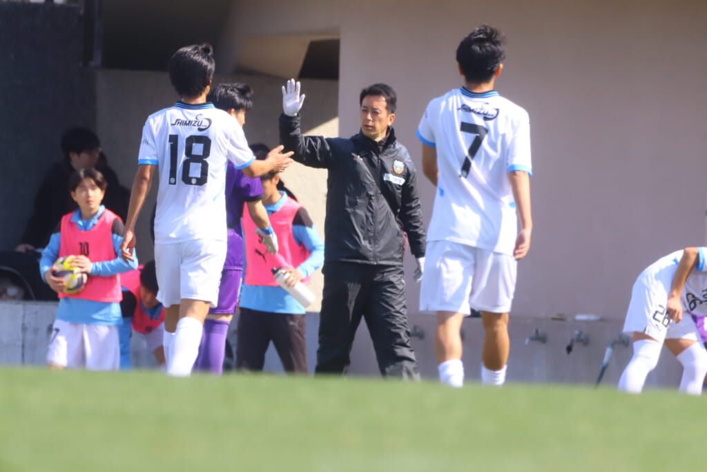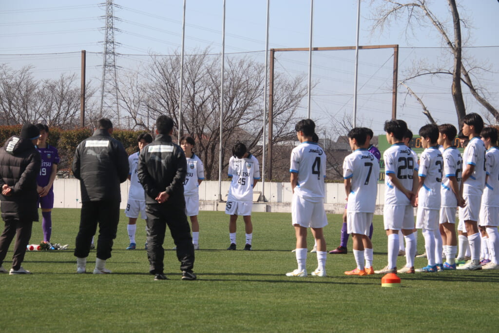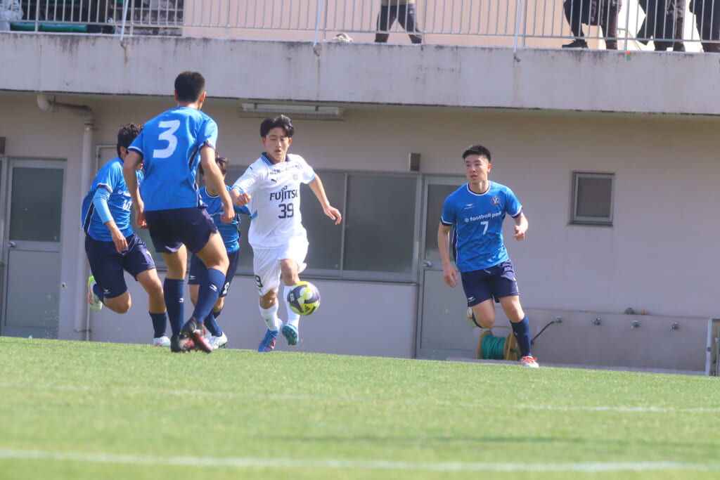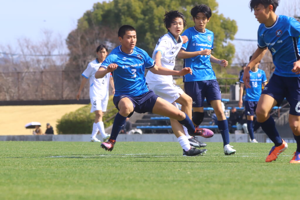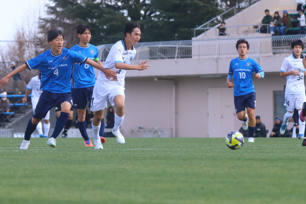 先発は、GK16一海陽遥、最終ラインは右から2江森祐馬、3浦野瑛仁、4山崎宏太、キャプテンの6山内稀斗、ボランチは10ティーネンカンプ健造、その前に14西村蒼悟、7宮崎稟士、右に18山崎佑太、左に11國分悠翔、前線は9大庭クリステンセン伶音。