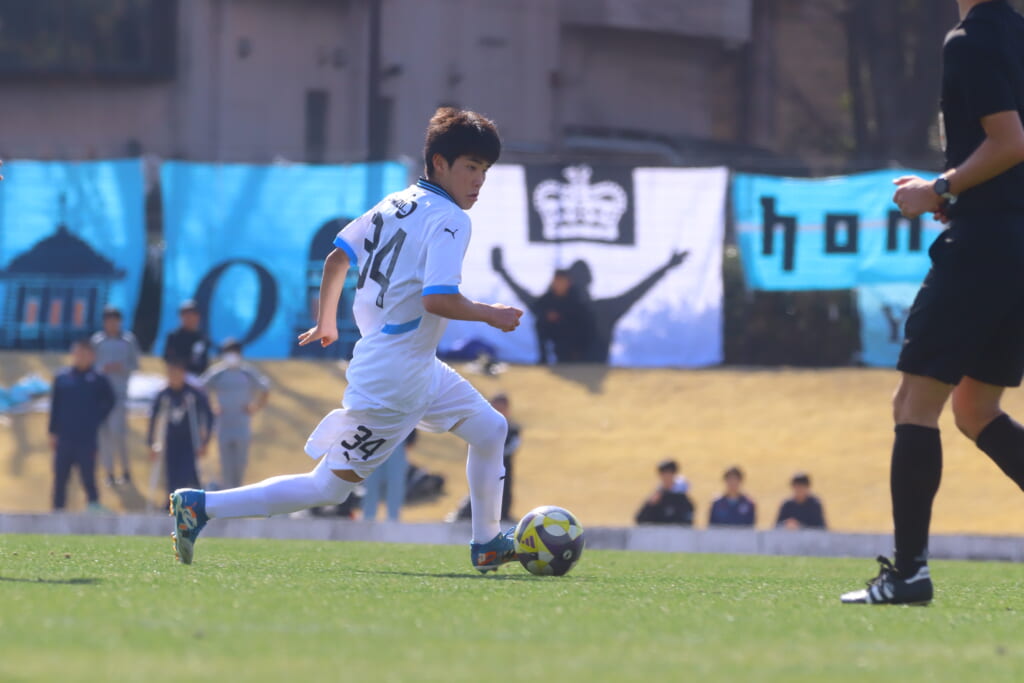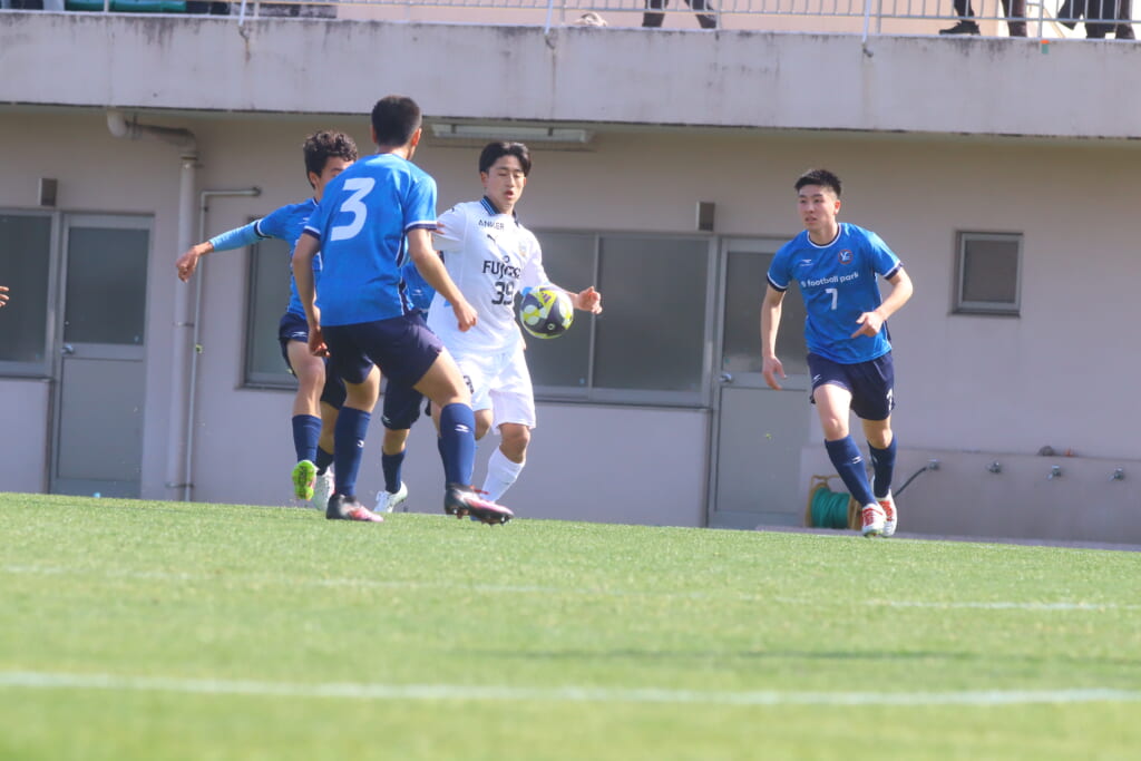 24分には、中央間で受けた全が相手を巧みに剝がしてエリア外正面右へ持ち込み、ミドルシュート。しかし、上に。