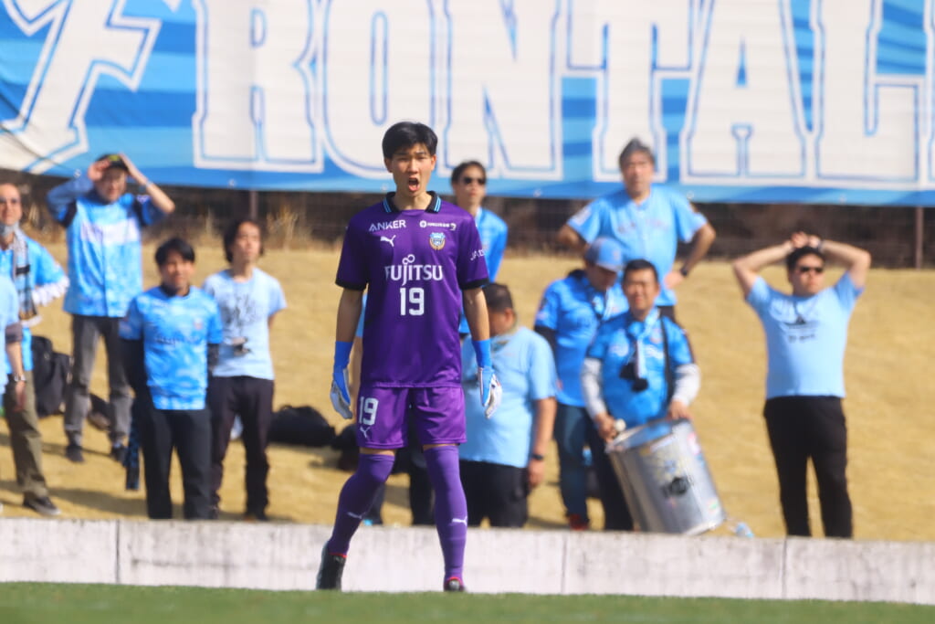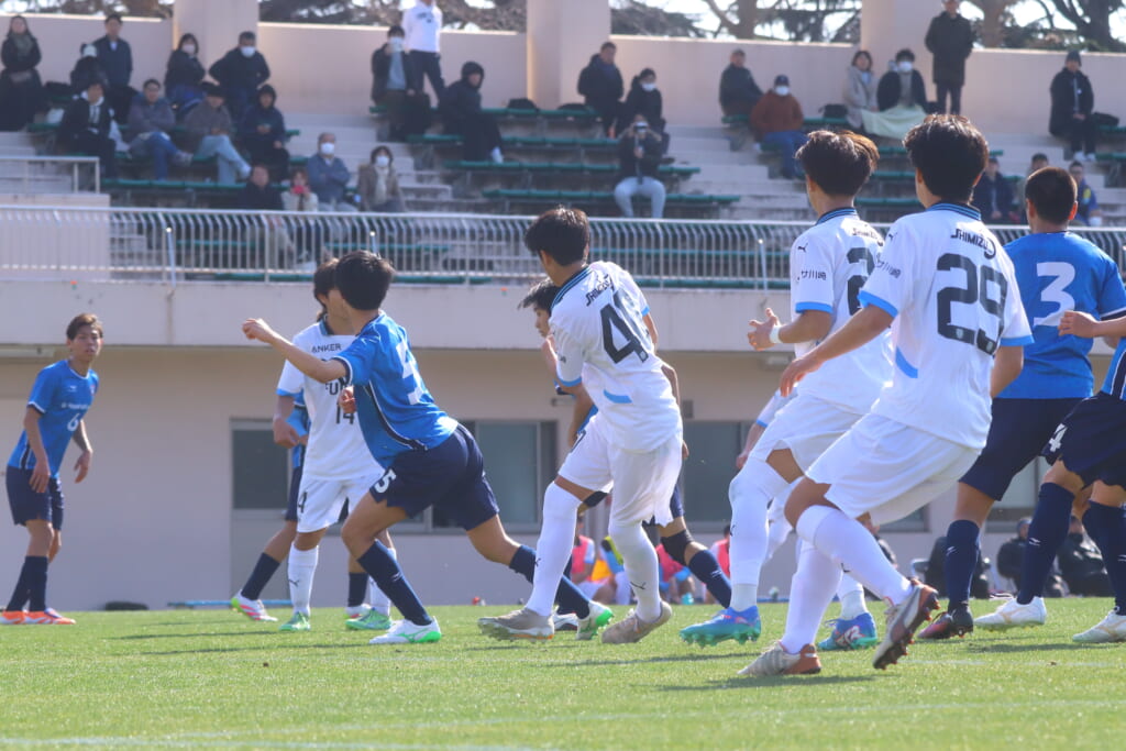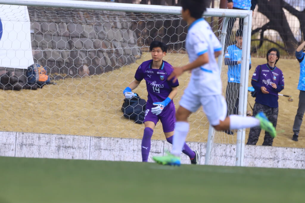 21分には、對馬から荒井、吉澤と左サイドで動かしていき、ルーズボールを拾った全がエリア正面左へ。シュートは枠をとらえますが一海が素晴らしい反応を見せ、セーブ。