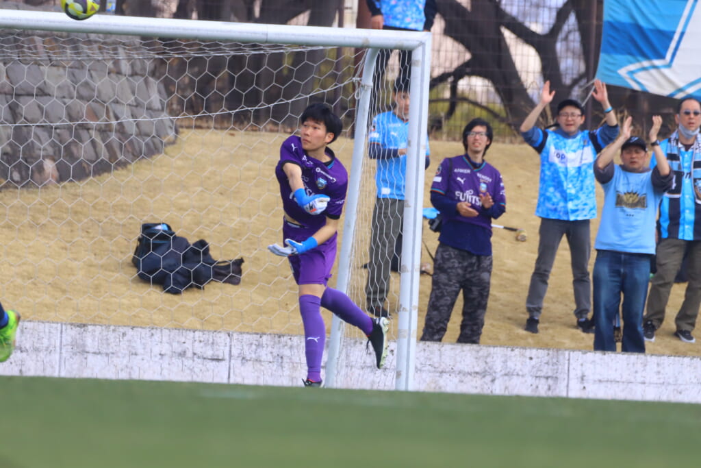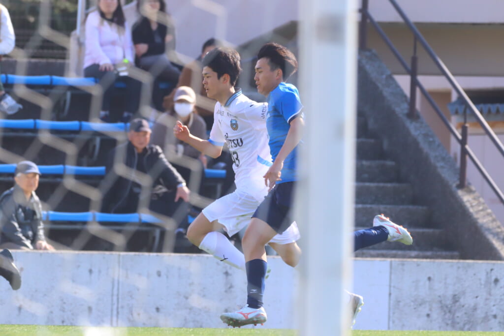 セカンドボールを拾ったフロンターレは野田がエリア内へ。しかし、ここでも一海が体を張って止め、最後はクリア。