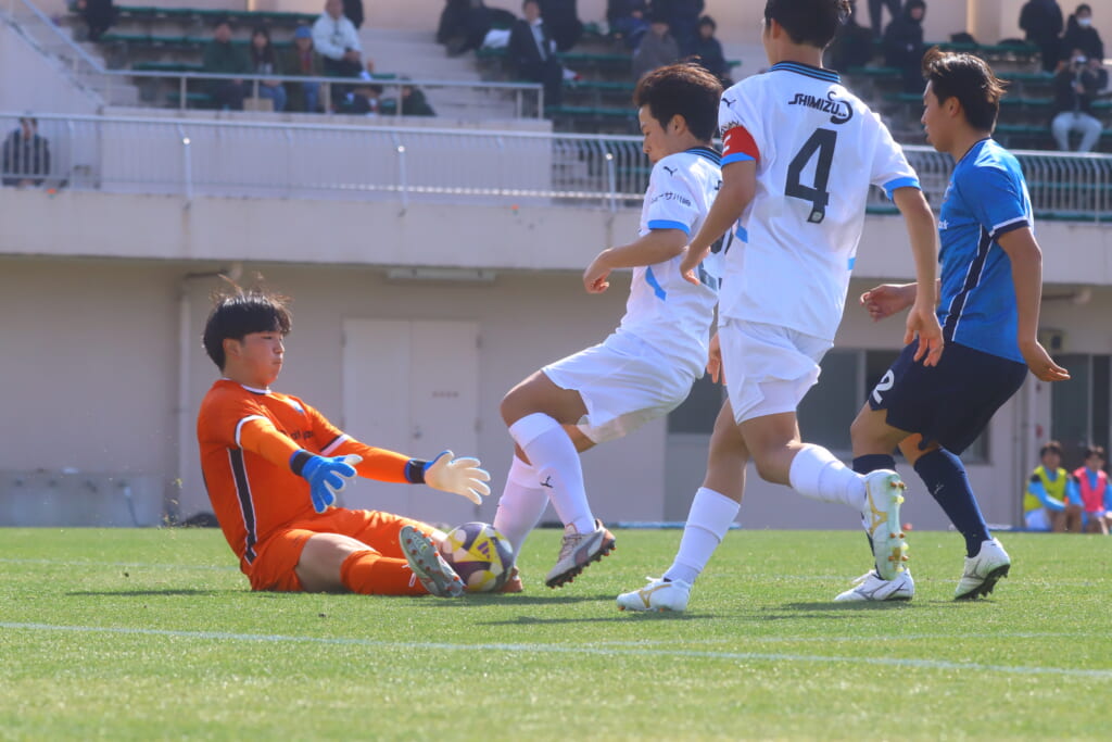 アディショナルタイム、41分にはルーズボールに反応した小川翔太がエリア外正面右へ。シュートは枠をとらえますが、一海がセーブ。