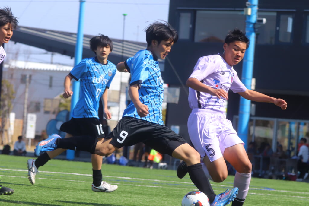 5分には、フロンターレ生田、佐藤のプレスバックからボールを奪い、右サイドへ展開。都島から中央に寄って受けた徳政がエリア外正面へ持ち込み、スルーパス。