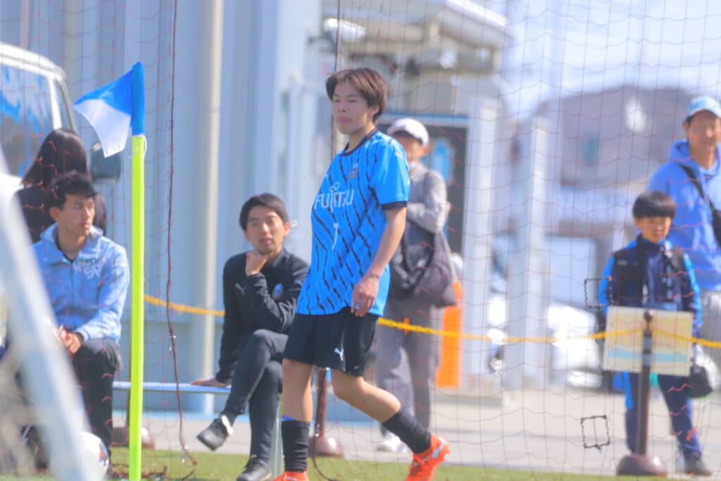 右コーナーキックを得たフロンターレ生田。キッカーの笠倉が左足で遠いサイドに入れると、望月の折り返しから最後は都島がヘディングシュート。