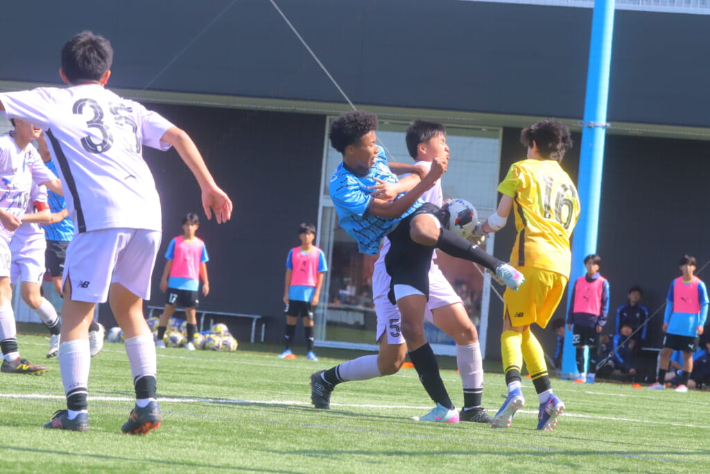 ここもFC東京深川がブロック。ゴールとはなりませんでしたが、フロンターレ生田がしっかりつないで、ゴールをおびやかしていきます。