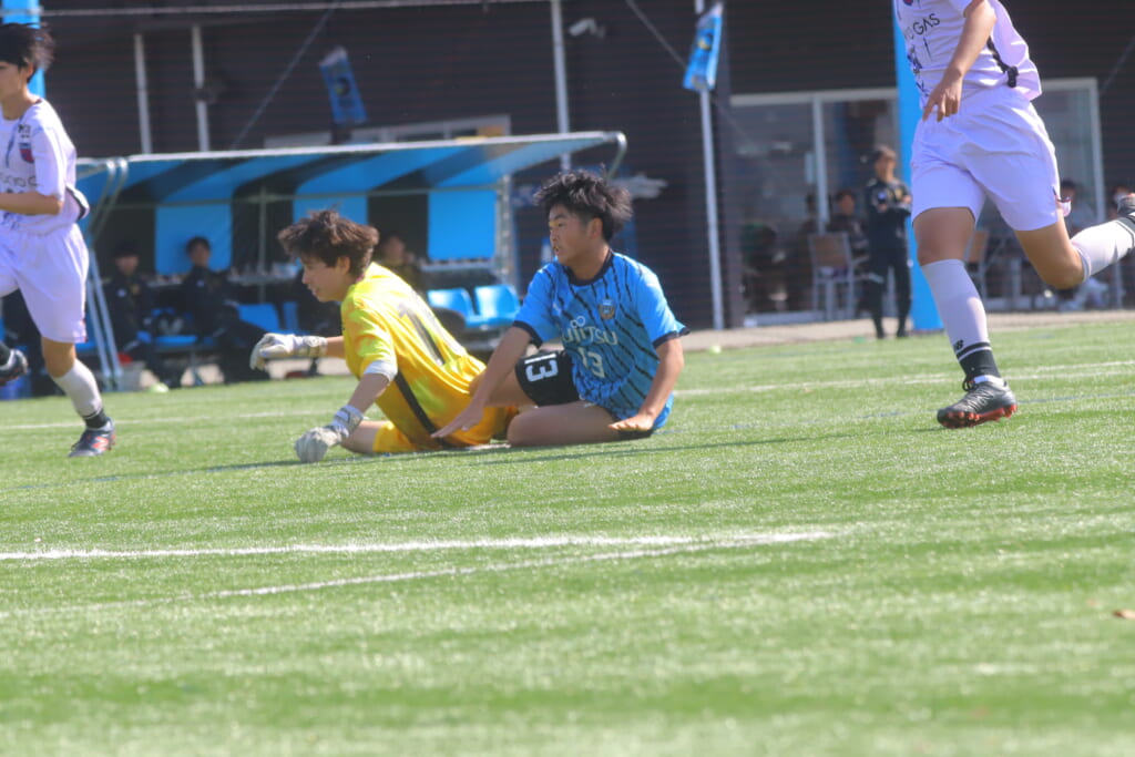 フリーキックを得たフロンターレ生田。戸澤が遠いサイドに入れると、上野が折り返し。エリア内おさめて左足でシュートを打ったのは吉澤。