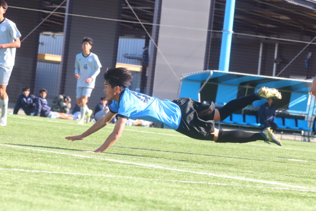 全や小川翔太、猪又も少し前に顔を出して受けるなどしながら、組み立てを図り、山梨学院高校がサイドチェンジから1対1の場面をつくるところでは吉田が対応。