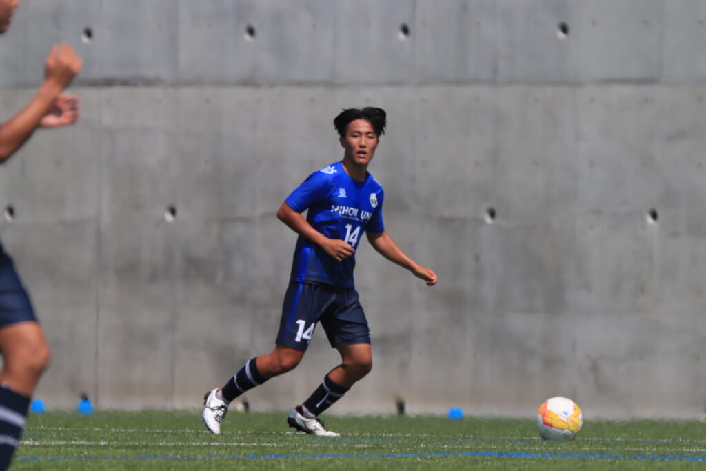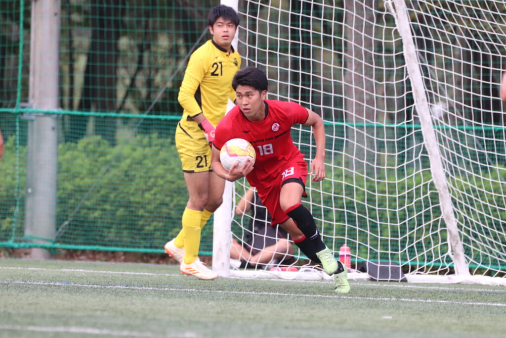 関東地区の総理大臣杯の予選につながる「アミノバイタル®」カップ 2026 第15 回 関東大学サッカートーナメント大会東京都予選では、日本大文理学部のMF城田優、MF松尾凛久が試合に臨みました。