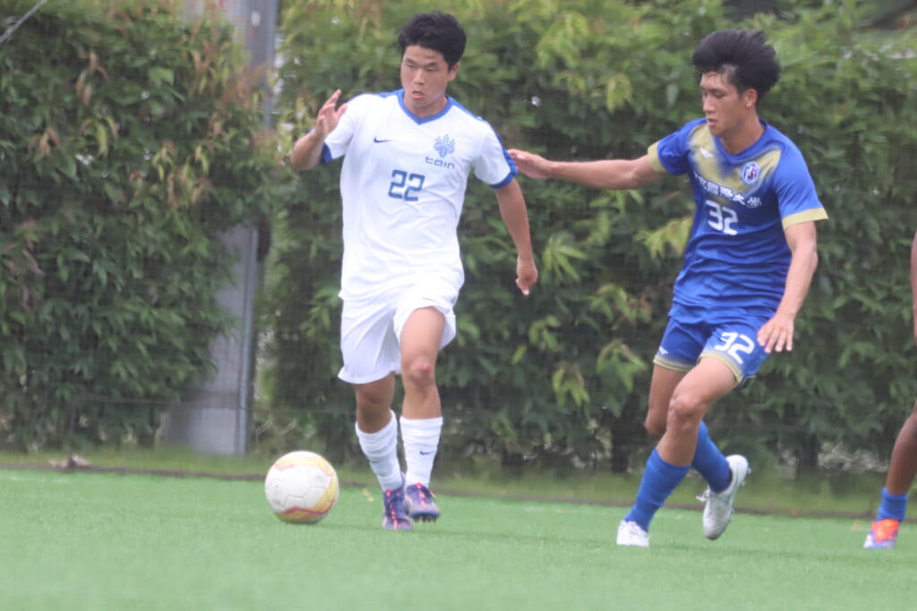 横浜国立大との2回戦に臨んだ桐蔭横浜大。信澤は71分から出場。加治佐は先発、フル出場。