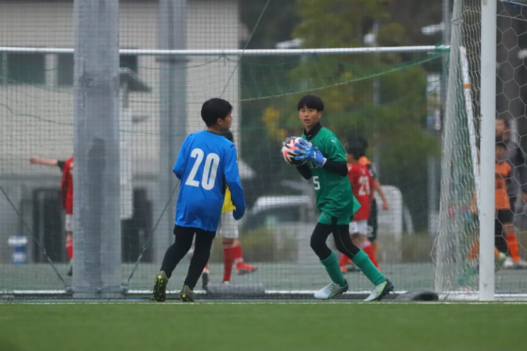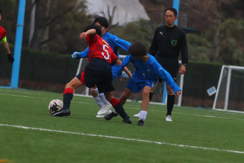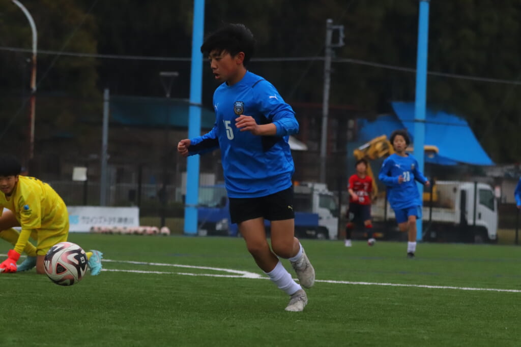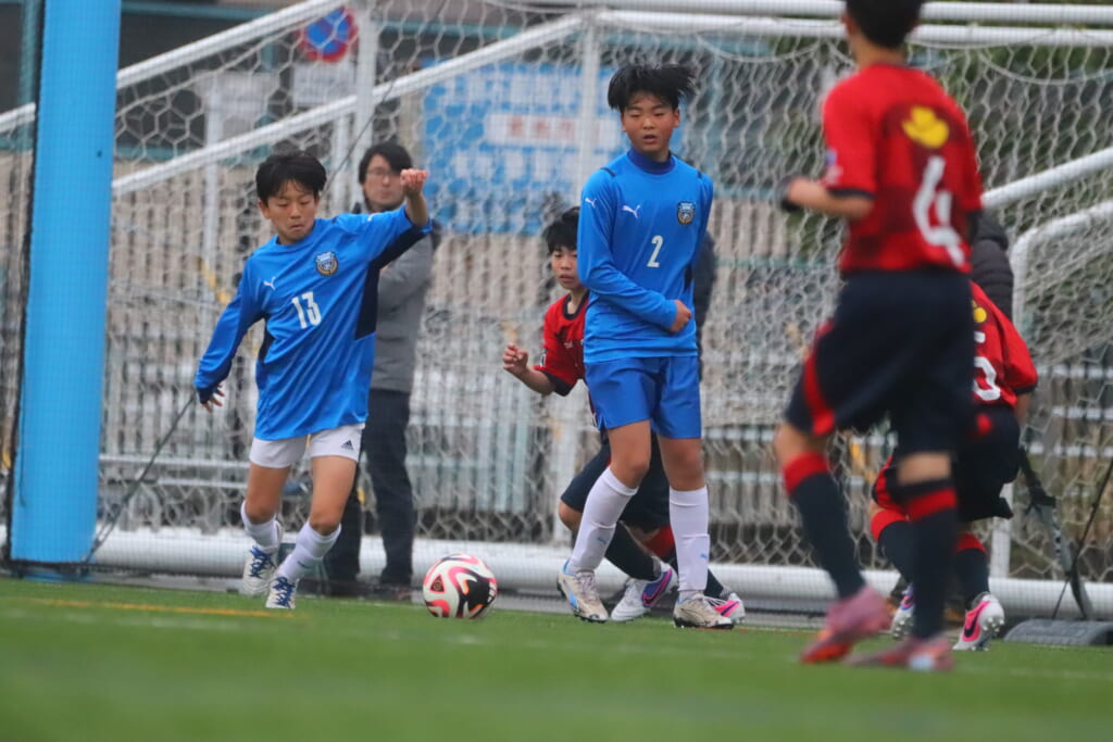 2分には、キャプテンの6との連係から5が右サイド、高い位置へ持ち込みクロス。エリア内で13がヘディングシュート。