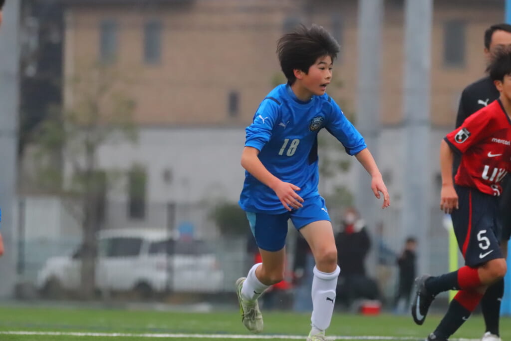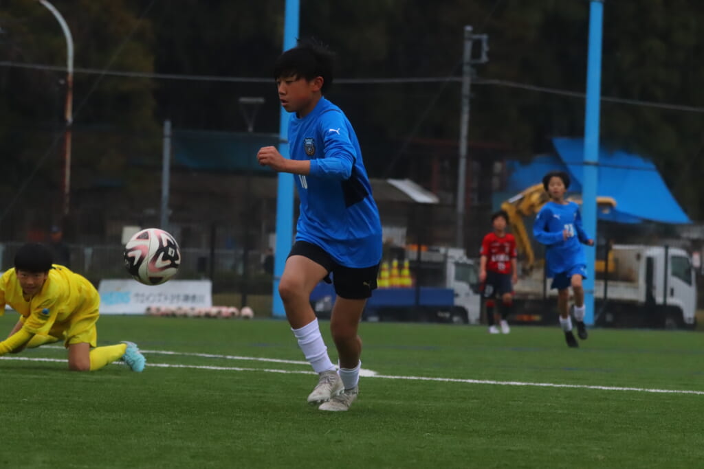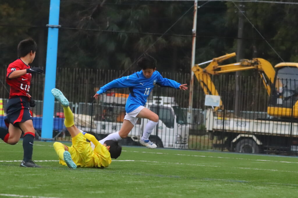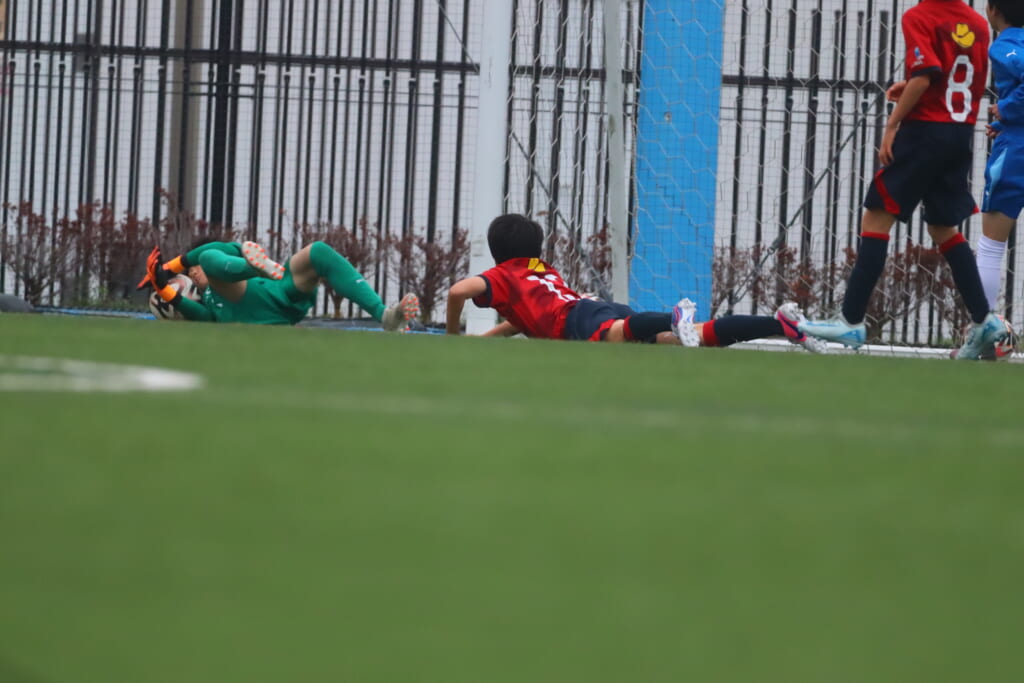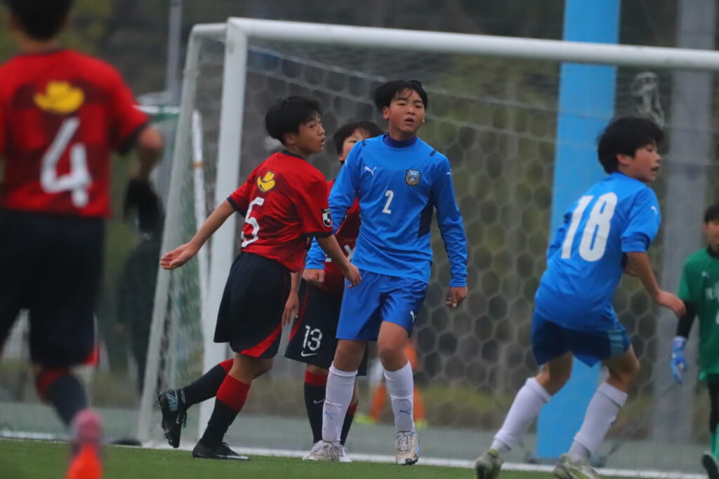 2分には、キャプテンの6との連係から5が右サイド、高い位置へ持ち込みクロス。エリア内で13がヘディングシュート。