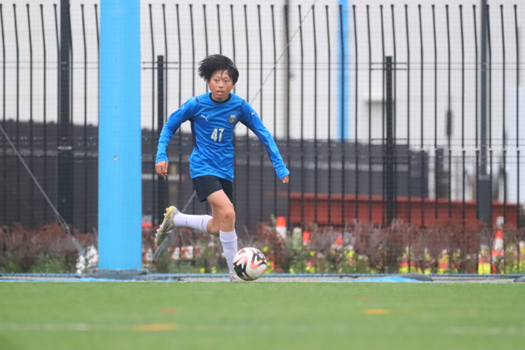 後半、フロンターレはGK45佐藤充、最終ラインは右から16石田渚々、20星河湊翔、2佐野龍与志、8岡西春樹、ボランチは29藤本遊真、18山本暖大、右MF6木﨑太陽、左MF30浅井玲央、前線には13角市陽哉、5森瀬大雅。