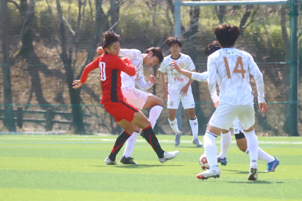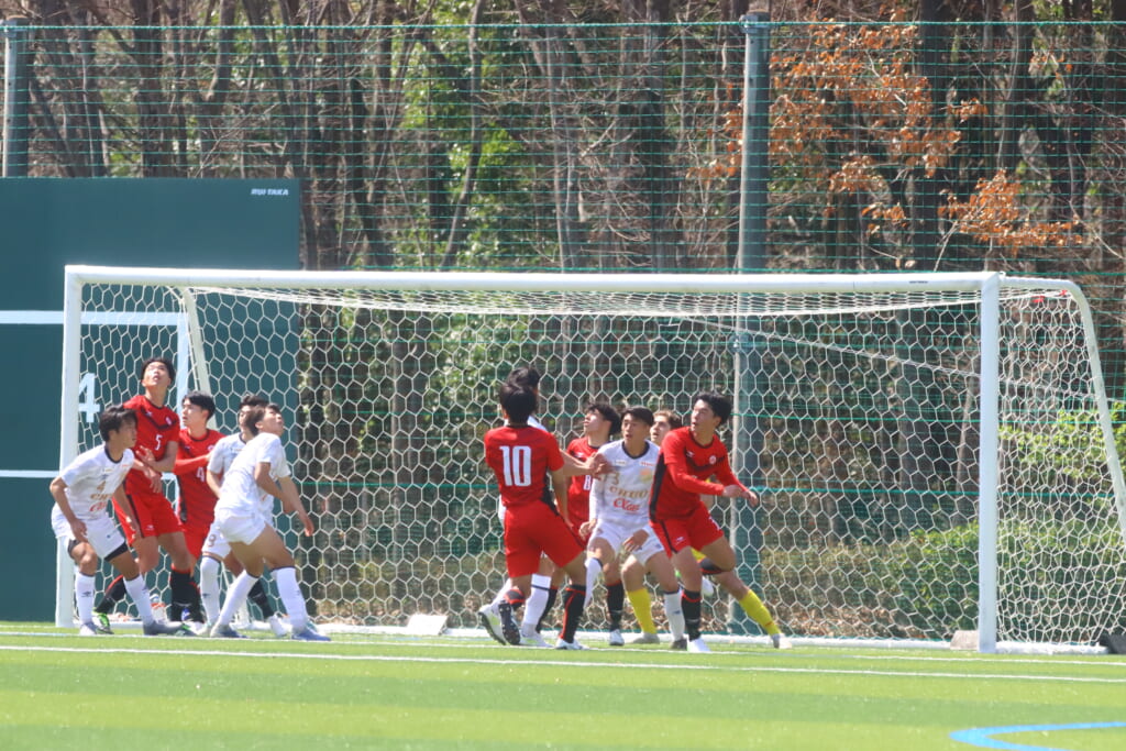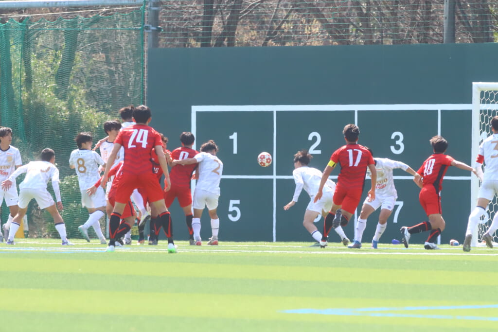 44分には、矢越、関と中央間でつながり、野澤から左サイドへ展開。クロスに五木田がエリア内へ飛び出しヘディングシュート。