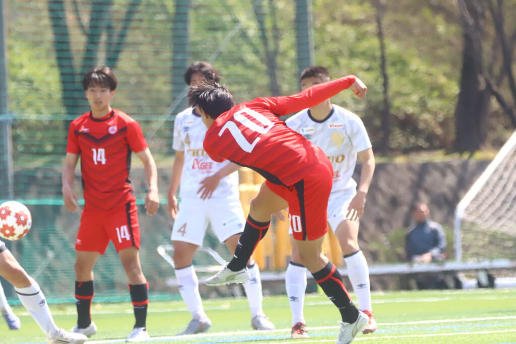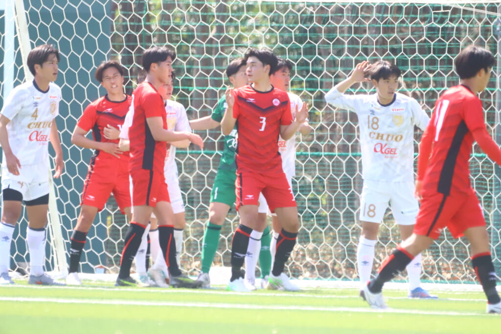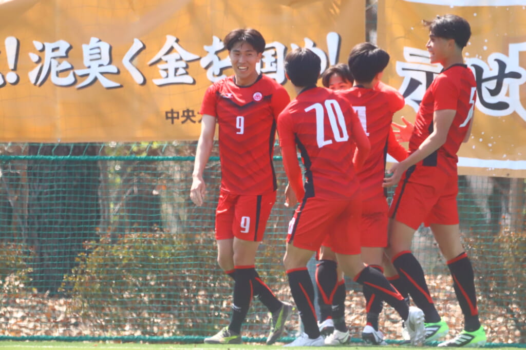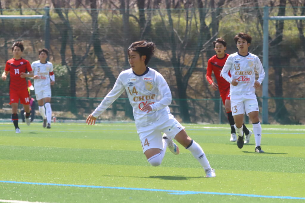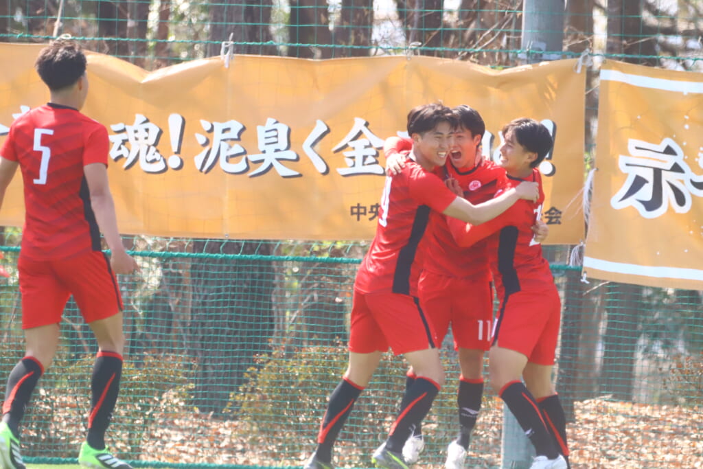 右コーナーキックを得た中央大は、鷹取が左足で入れると、最後はセカンドボールを拾い、エリア外左で尾川がミドルシュート。