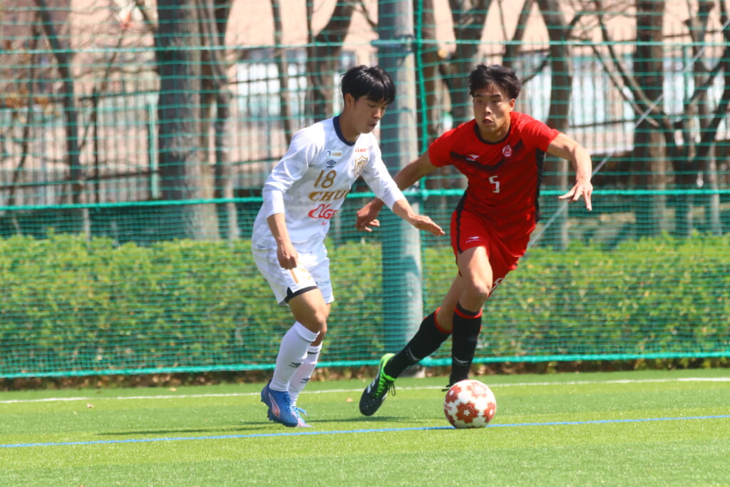 日本大は、川崎フロンターレU-18出身、FW五木田季晋(4年)、MF矢越幹都(2年)、フロンターレU-15→SC相模原U-18のMF浅倉心魂(3年)、中央大は、フロンターレU-18出身、MF尾川丈(3年)、MF岡野一恭平(3年)と5人のフロンターレアカデミー出身の選手が試合に臨みました。