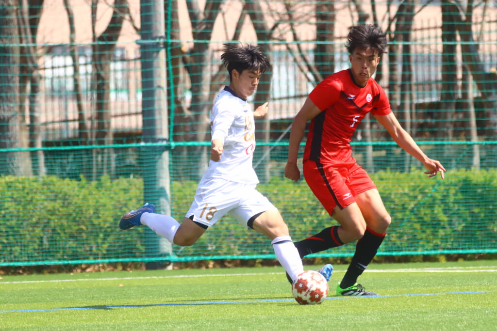 3分には、日本大、矢越が最終ラインの間で受け、やや前で受けた白濵のパスに、エリア外右へ抜け出した石橋が折り返し。