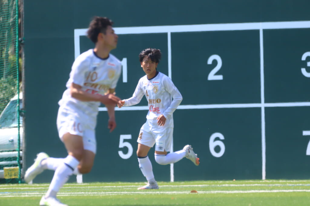それでも粘り強く戦い抜いた中央大は、日本大が延長後半に先制したのちに、FW北浜琉星がゴールを決めて同点に。しかし、終了間際に、先制点を決めている日本大のMF中川広土が決勝点を決めて、2-1に。