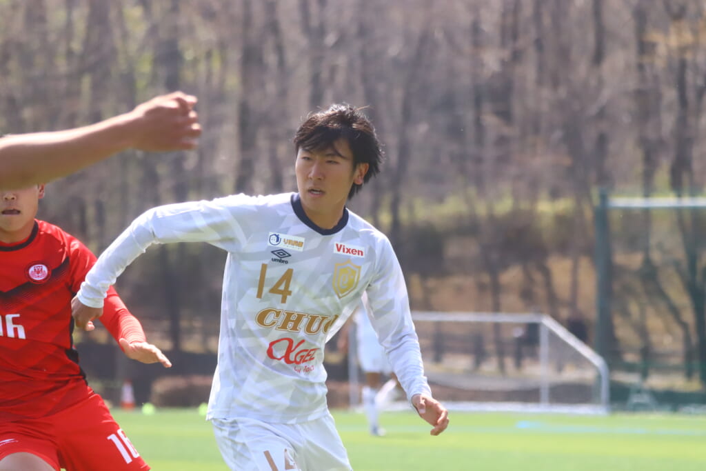 中央大は川崎フロンターレU-18出身、MF尾川丈(3年)が先発し、シャドーとして出場。