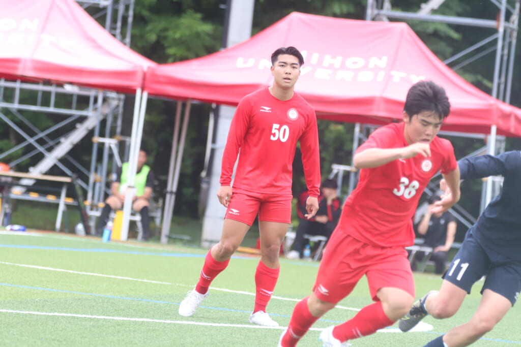 総理大臣杯の関東予選、「『アミノバイタル®』カップ 2026 第15 回 関東大学サッカートーナメント大会」の東京都予選では、日本大文理学部のMF城田優、MF松尾凜久が試合に臨みました。
