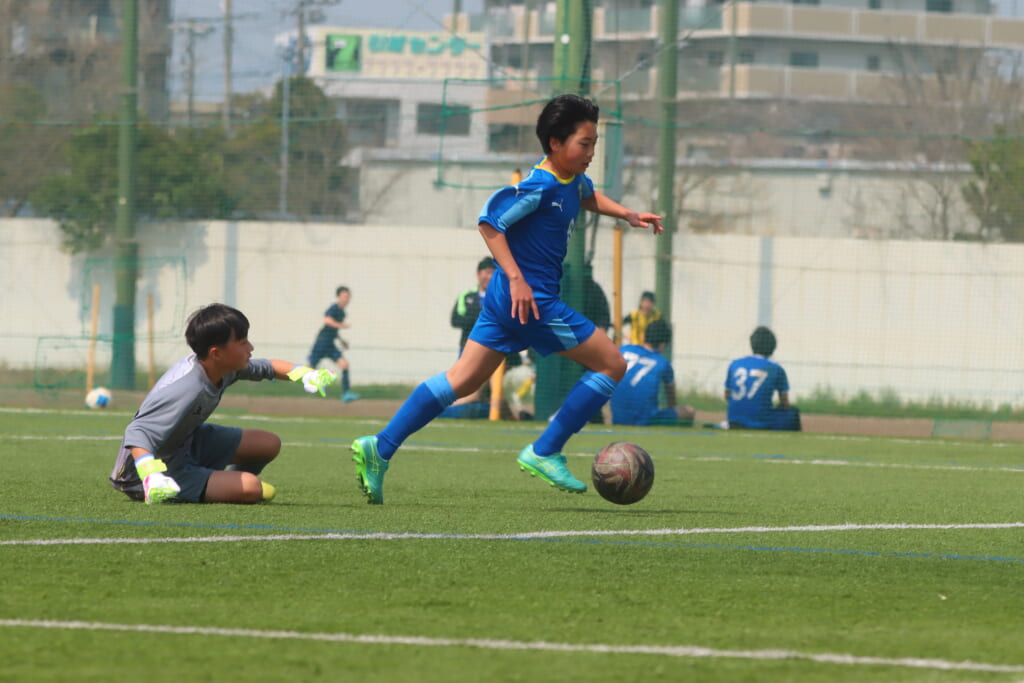 21分には、縦パスに抜け出した角市がうまく相手の前に入り込み、正面右へ抜け出し、シュート。ここはKanaloaのGK21がセーブ。