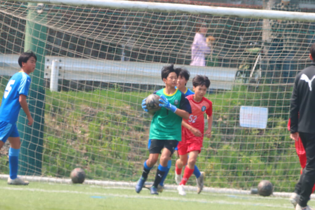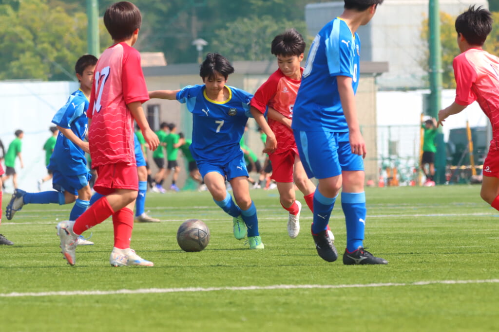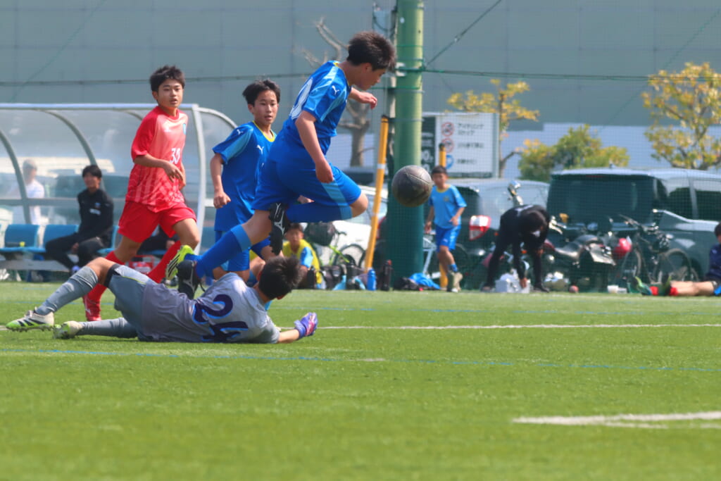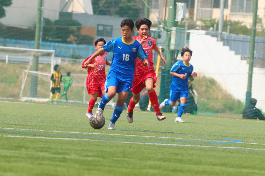 GKの40が前につけてきたところ、三浦夢斗が少し前に出てカット。自分たちのボールにしていくフロンターレ等々力。