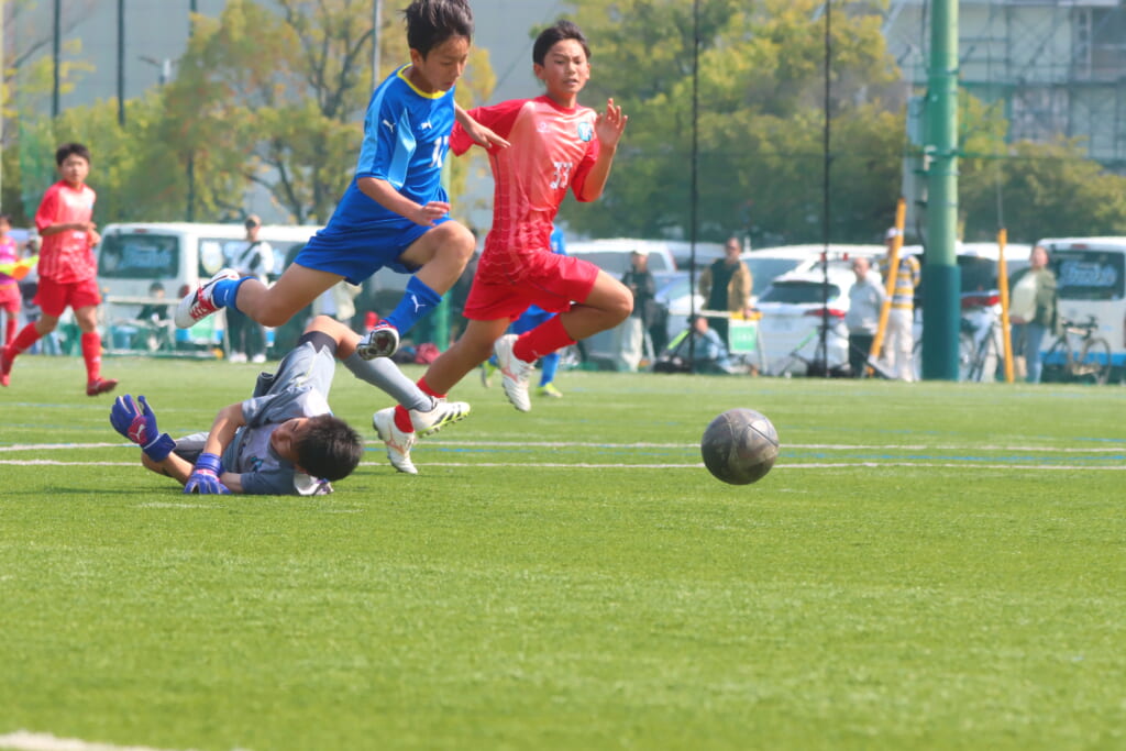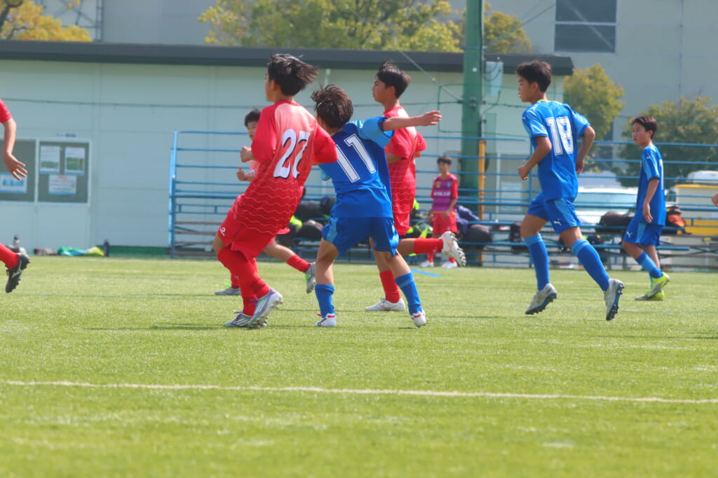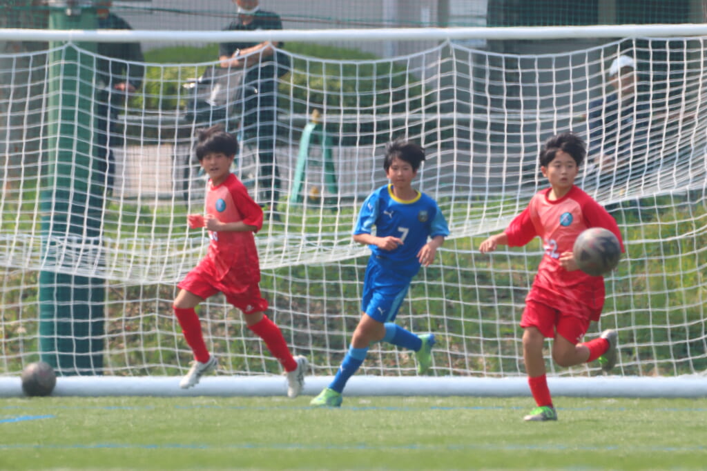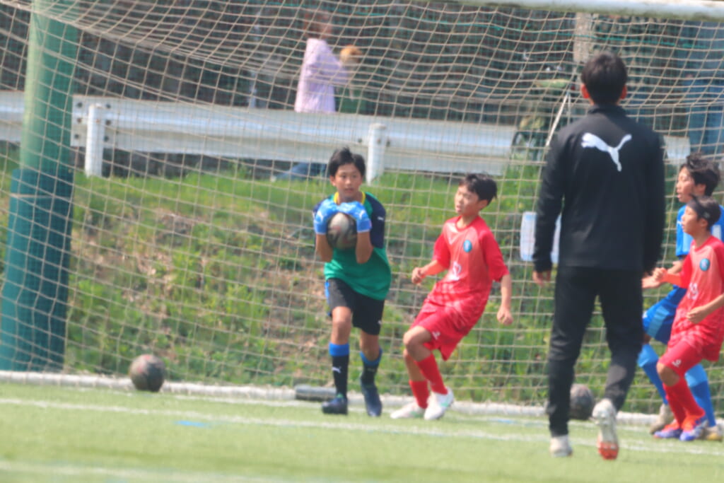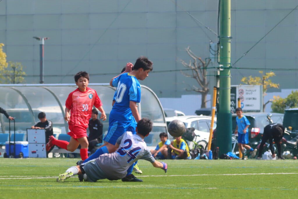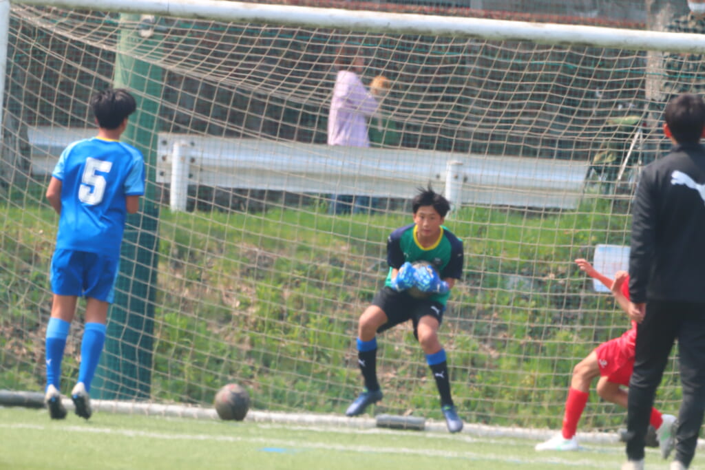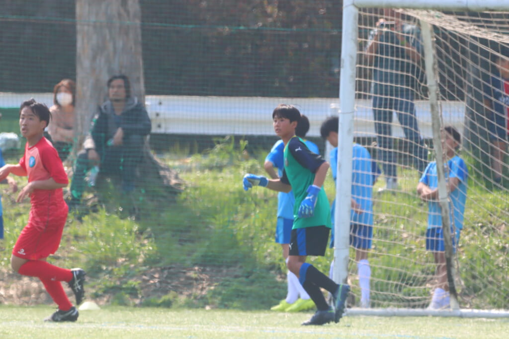 さらに三浦夢斗が少し前に持ち出し、左サイド、横矢へ。横矢は左サイドから正面へ持ち込み、そのパスに堀口が左サイド、高い位置へ仕掛けていきますが、Kanaloaも粘り強くカバー。ゴールキックにしていきます。