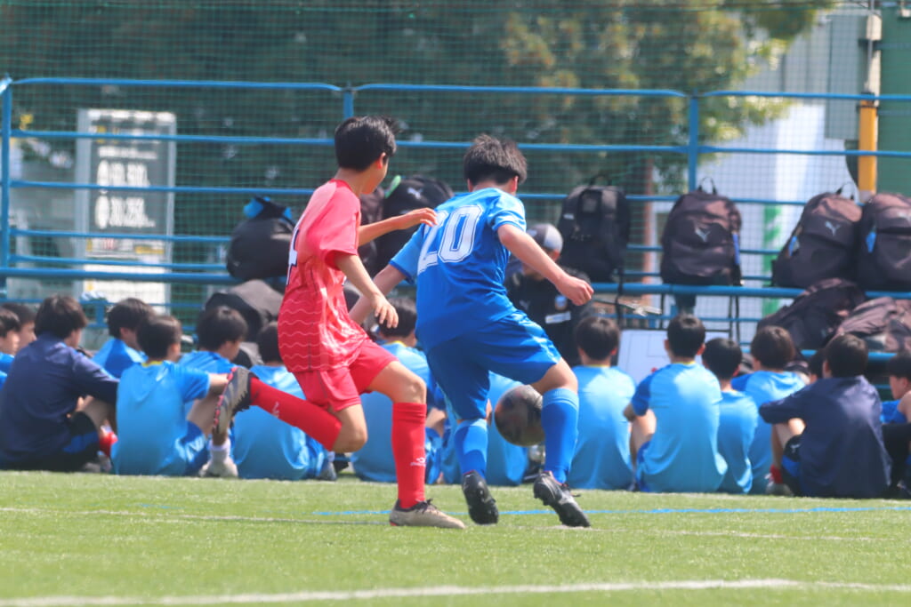 飲水タイムを挟んで、フロンターレ等々力は、堀口に代わり、1本目は2をつけて出場した園田丈琉が17をつけて右SBに。さらに下地に代わり14清水創太がボランチに。