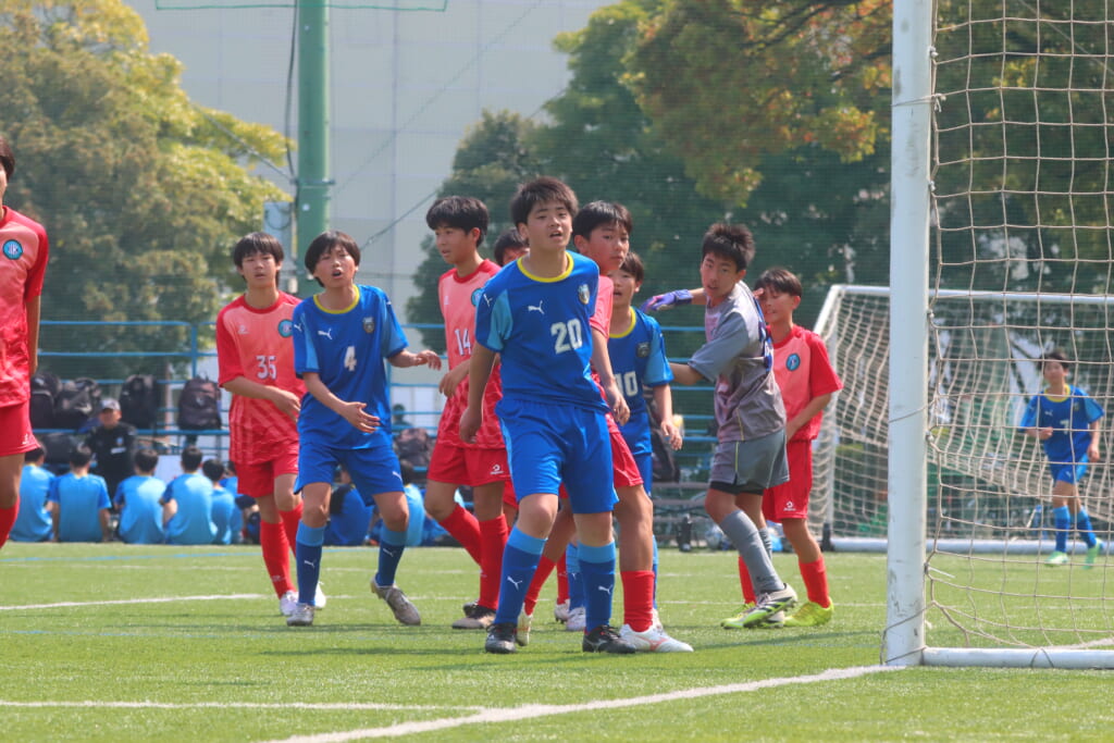 キッカーは岡西。左足で直接ゴールへ向かうボールを入れていくもGK24が対応。