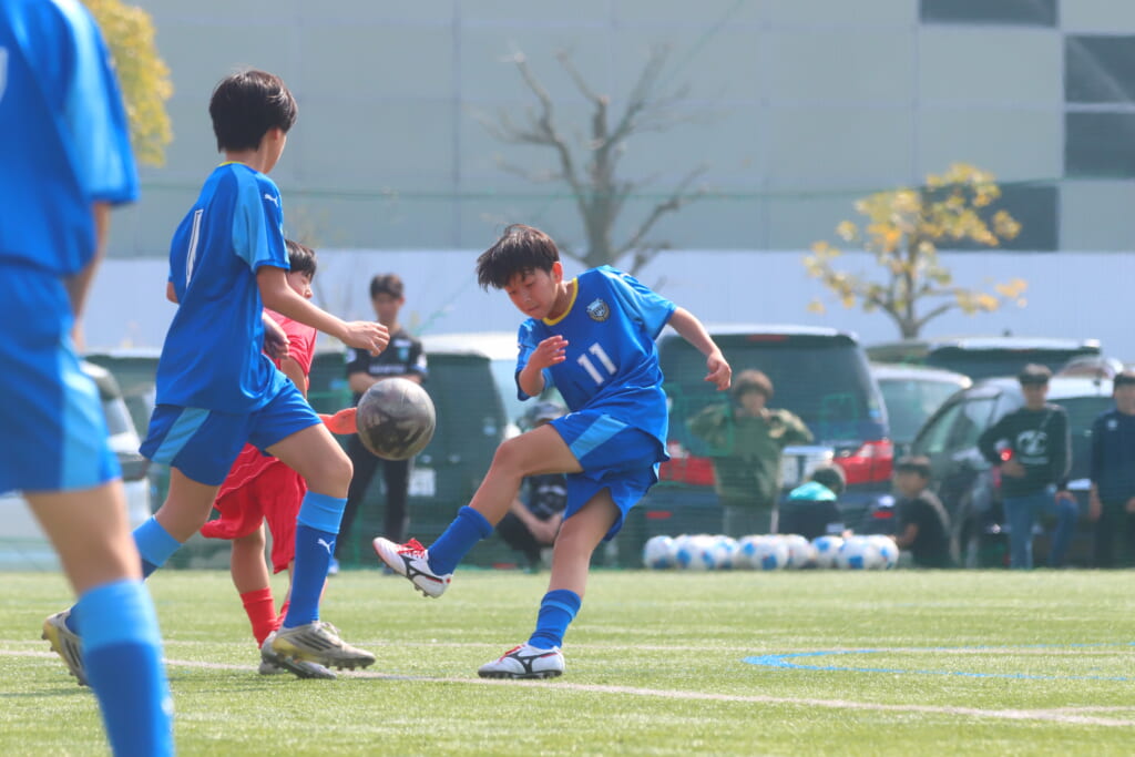7分には、左サイドでのスローインの流れから、角市がパス交換を経て正面へ抜け出しシュート。しかし、左に。