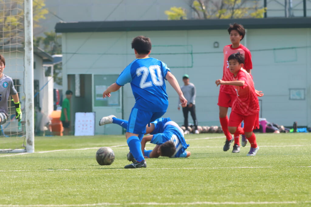 25分には、浮き球のパスに正面へ受け出した角市。GK24をかわし、シュートを打つとこれが決まり、2-2。