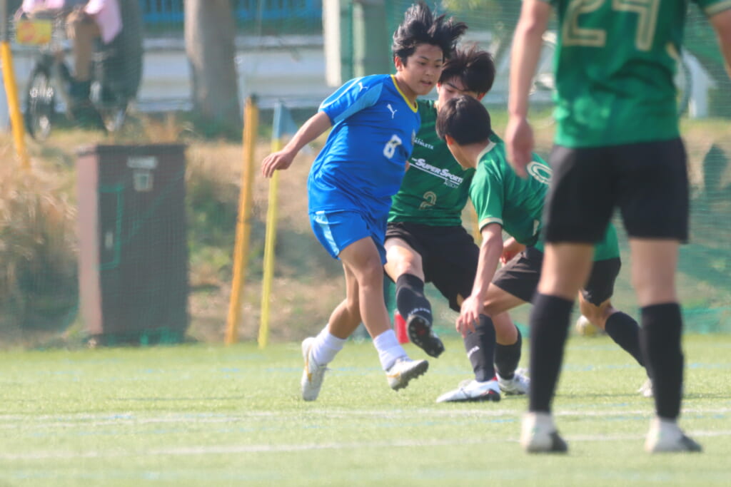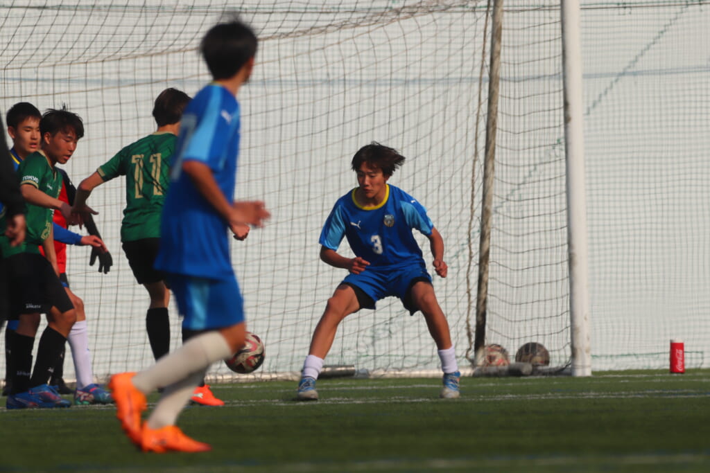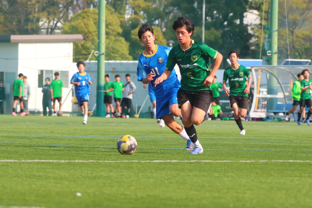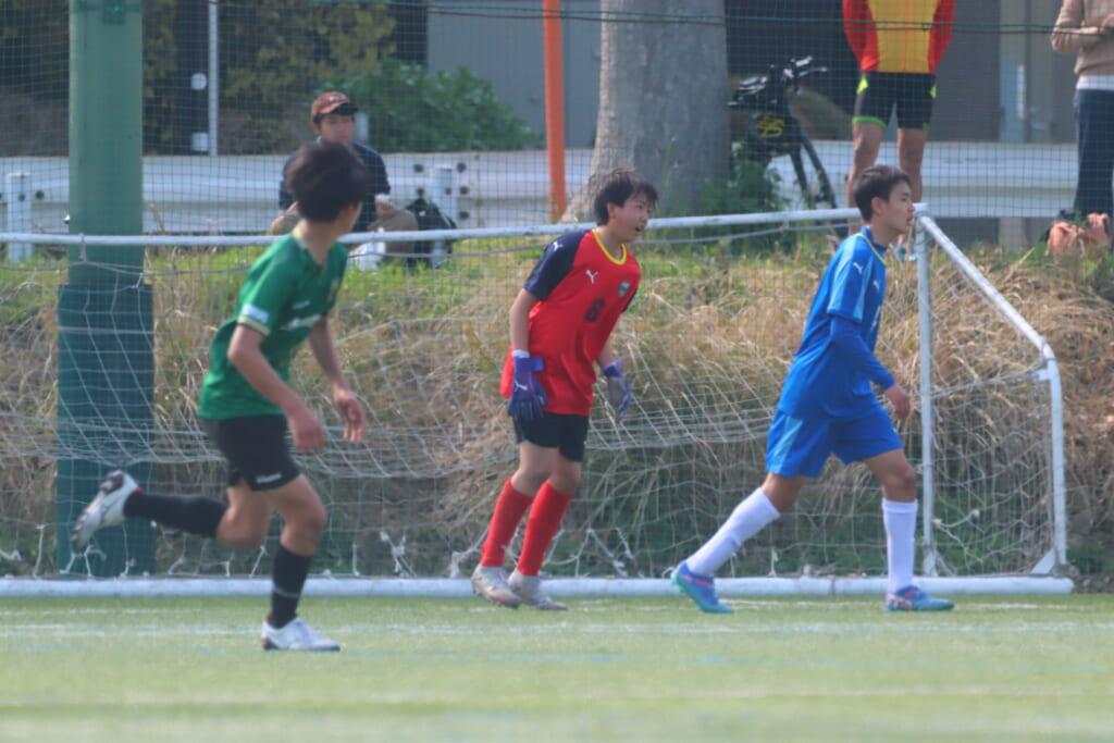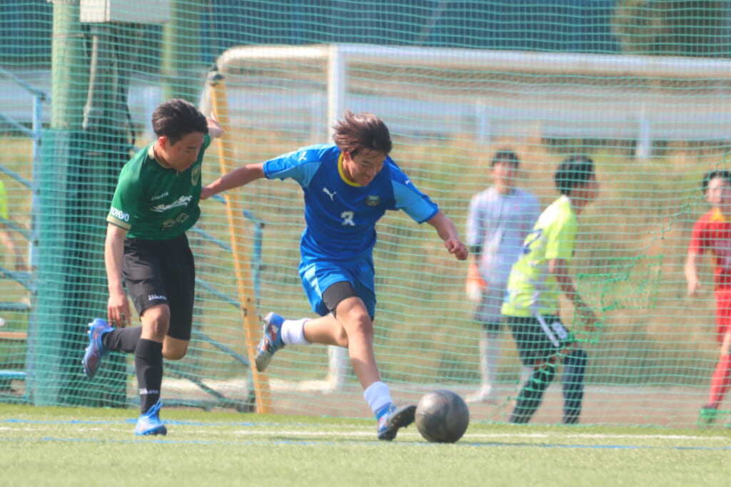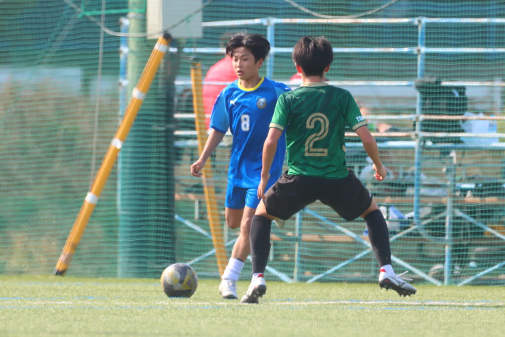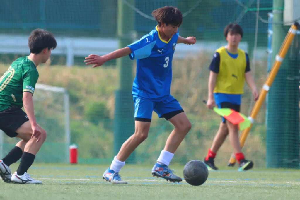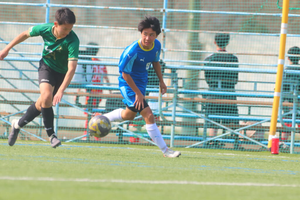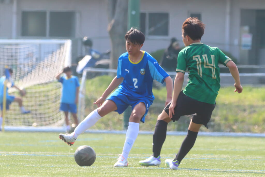 セカンドボールを拾い、左サイドへ展開してきたところでは岩田陸叶がカット。簡単に前には行かせずに対応。