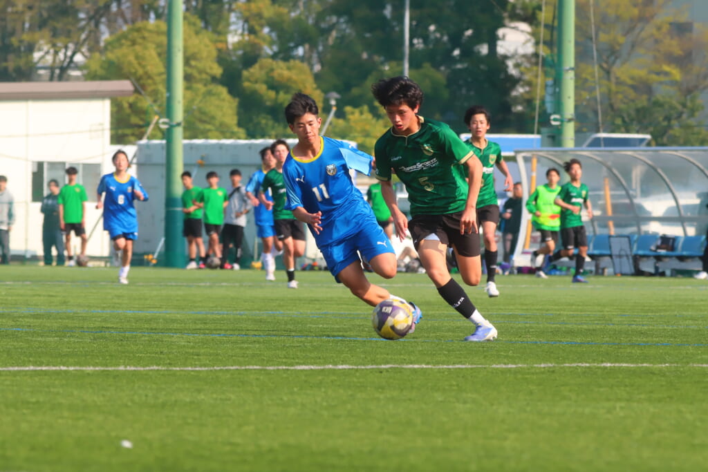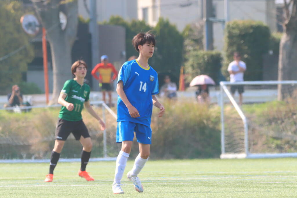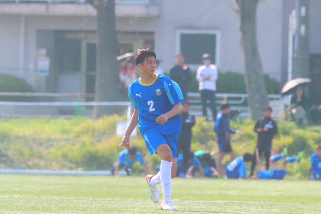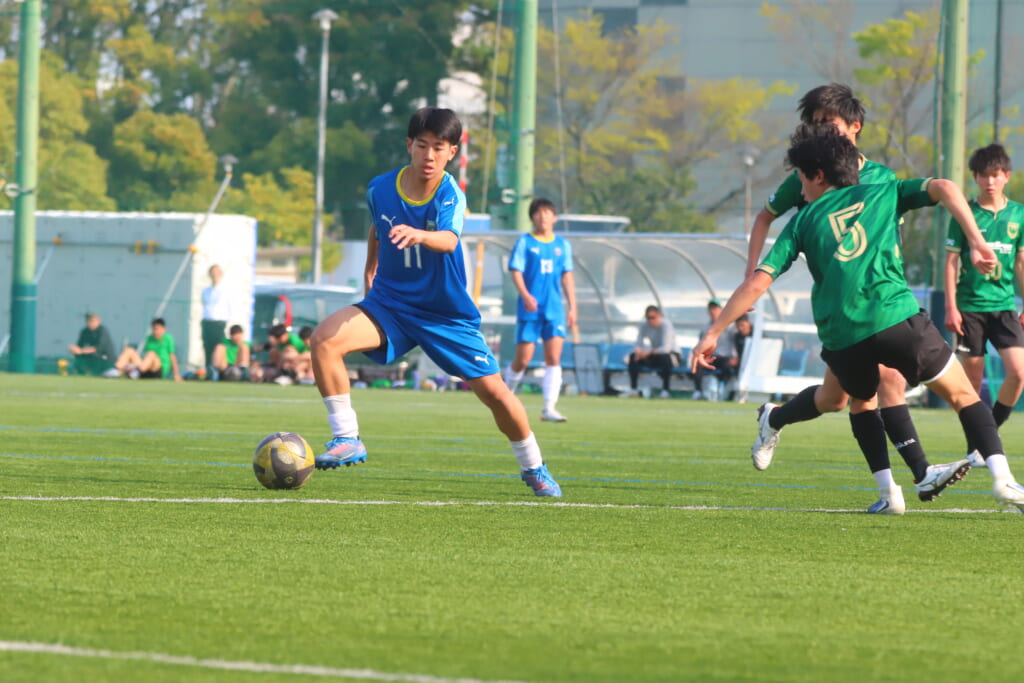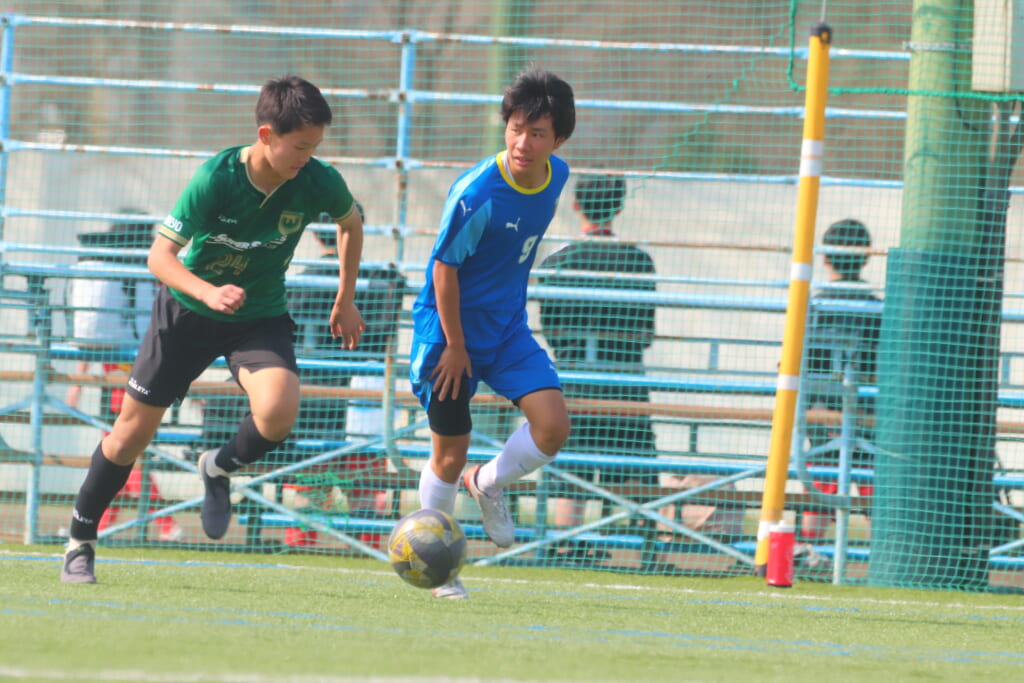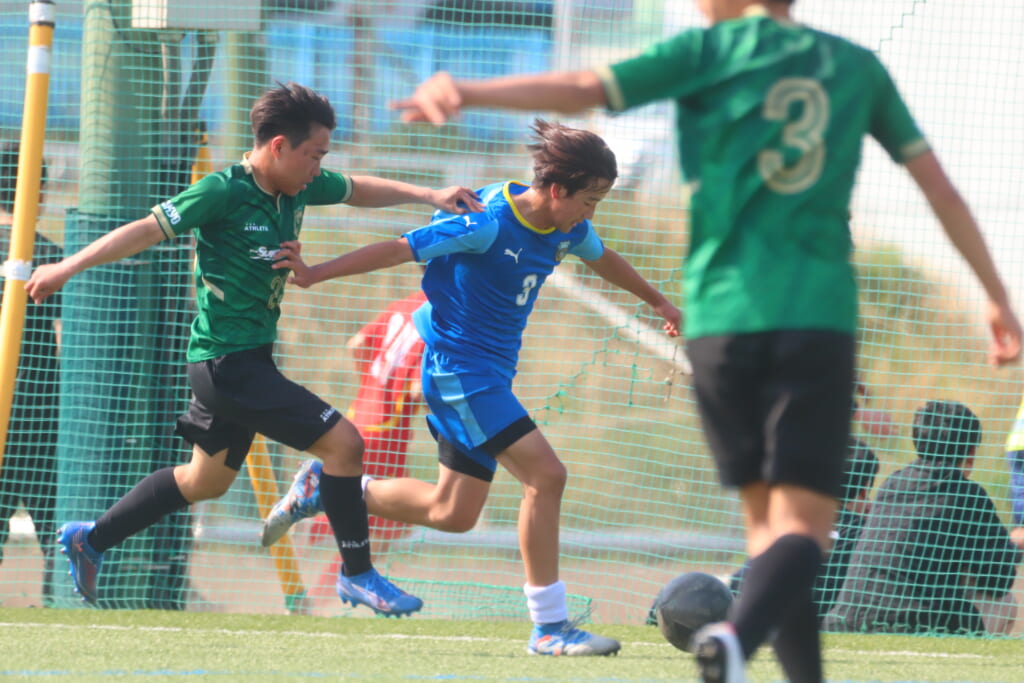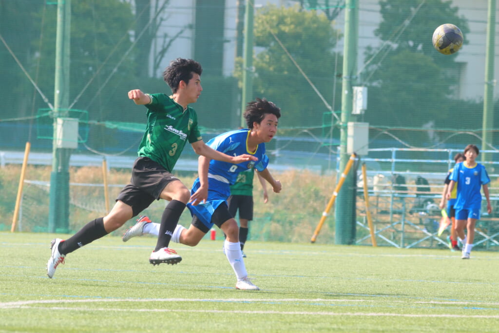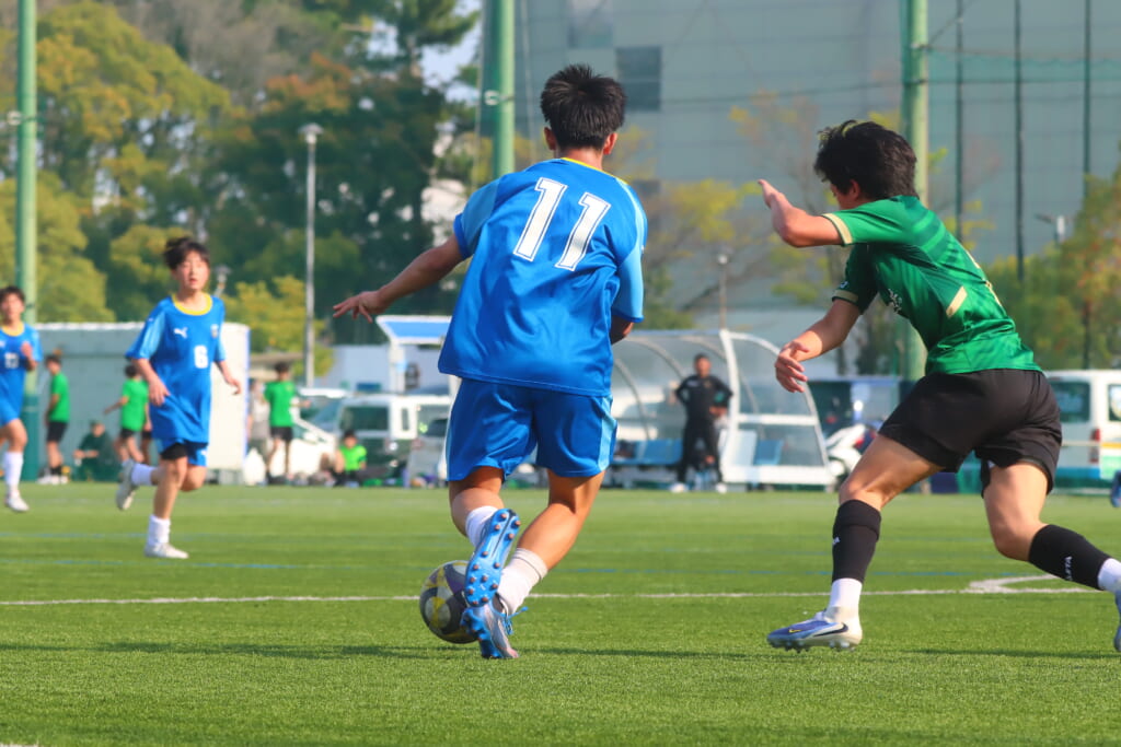 セカンドボールを拾い、左サイドへ展開してきたところでは岩田陸叶がカット。簡単に前には行かせずに対応。