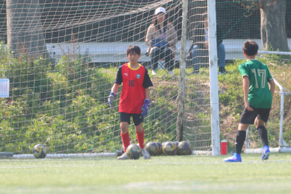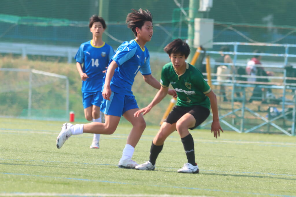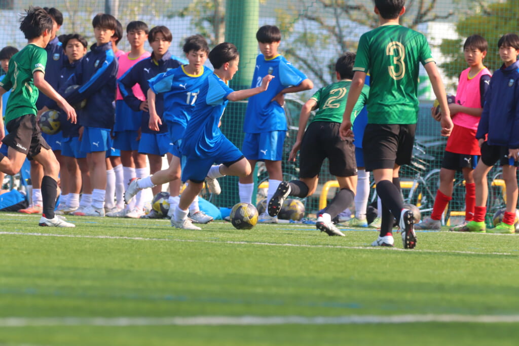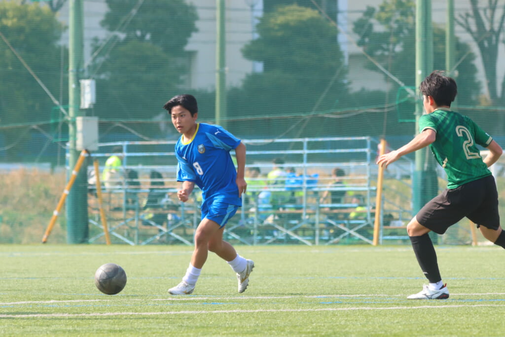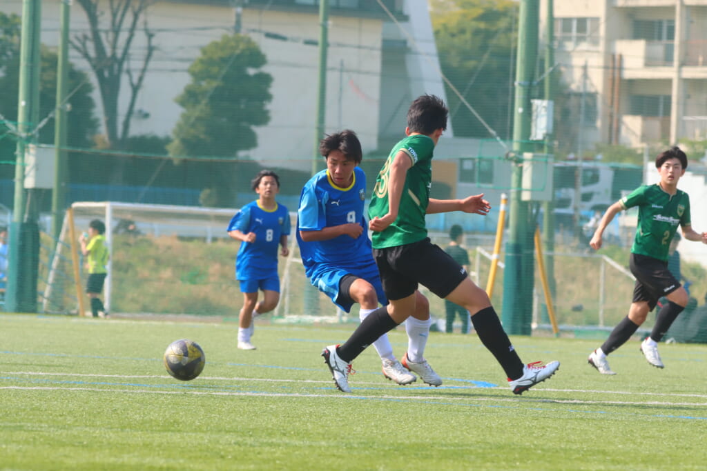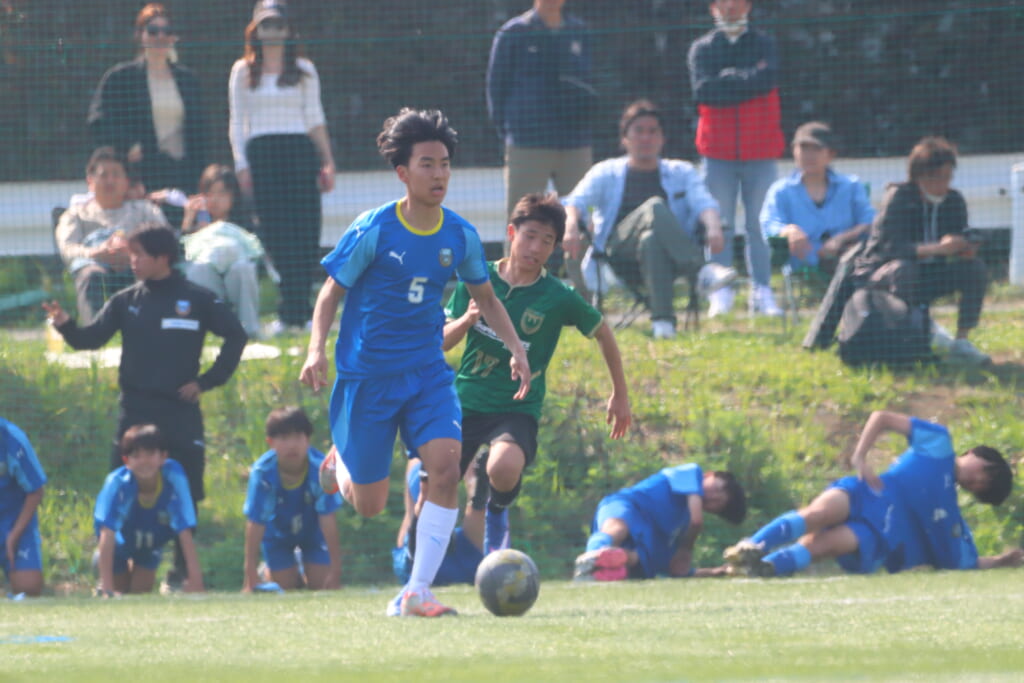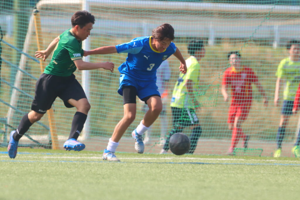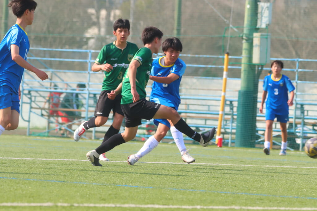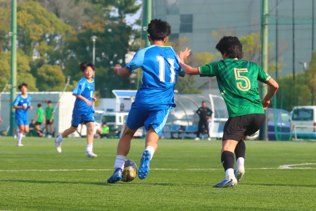 セカンドボールを拾い、左サイドへ展開してきたところでは岩田陸叶がカット。簡単に前には行かせずに対応。