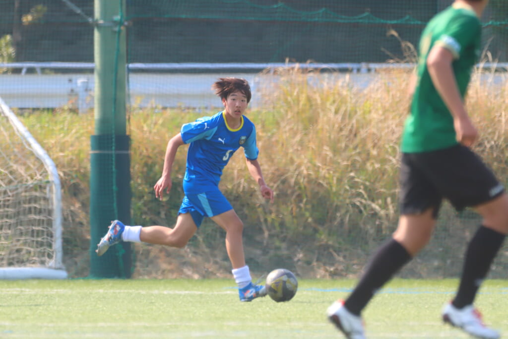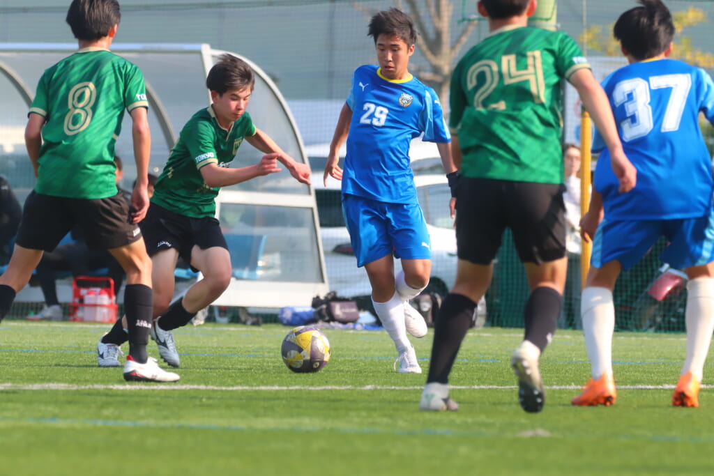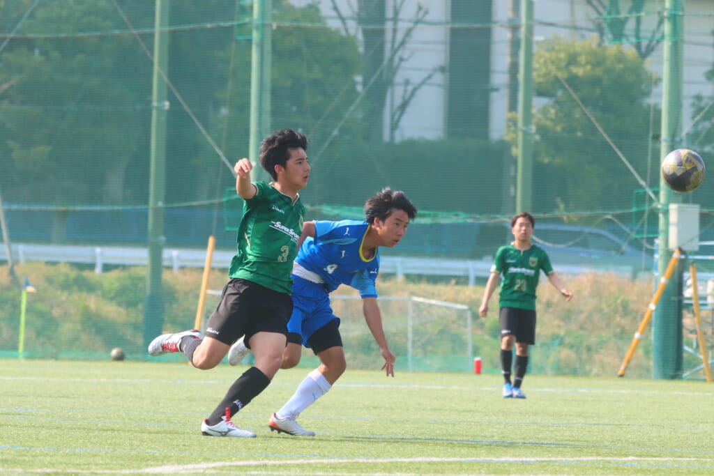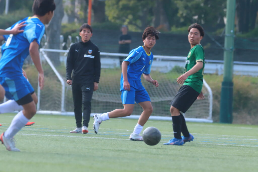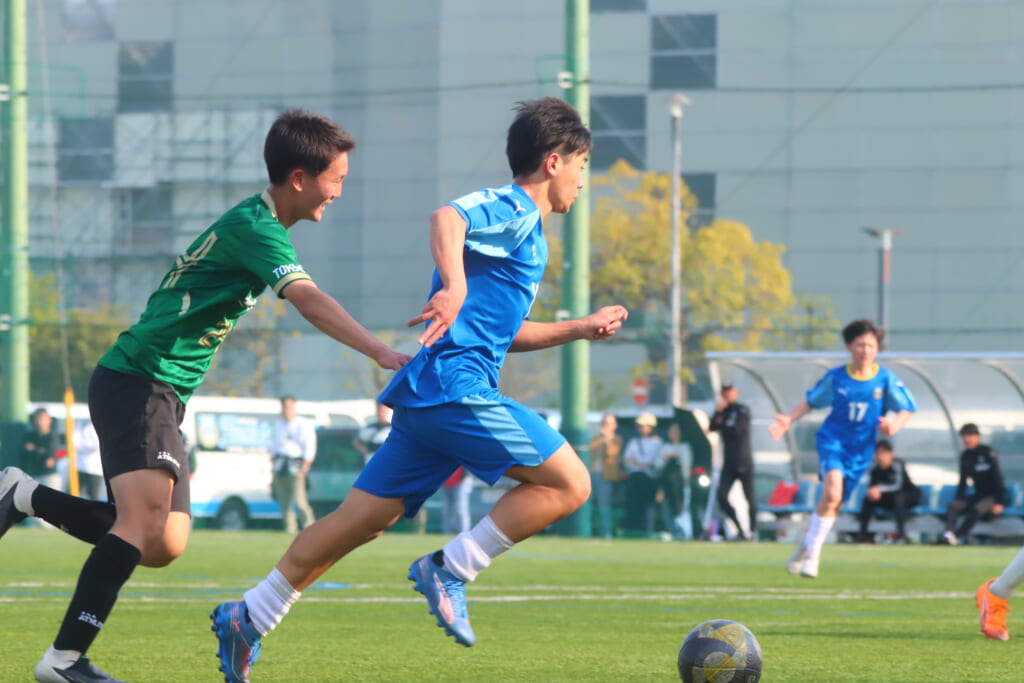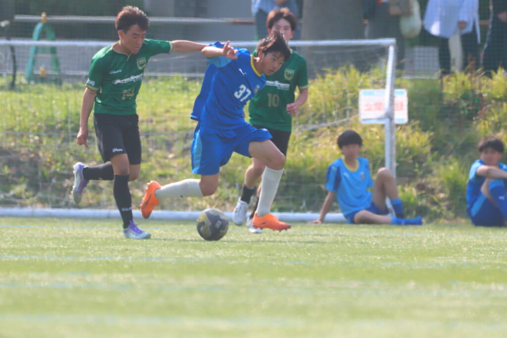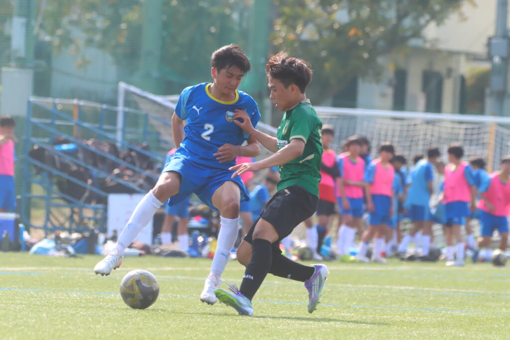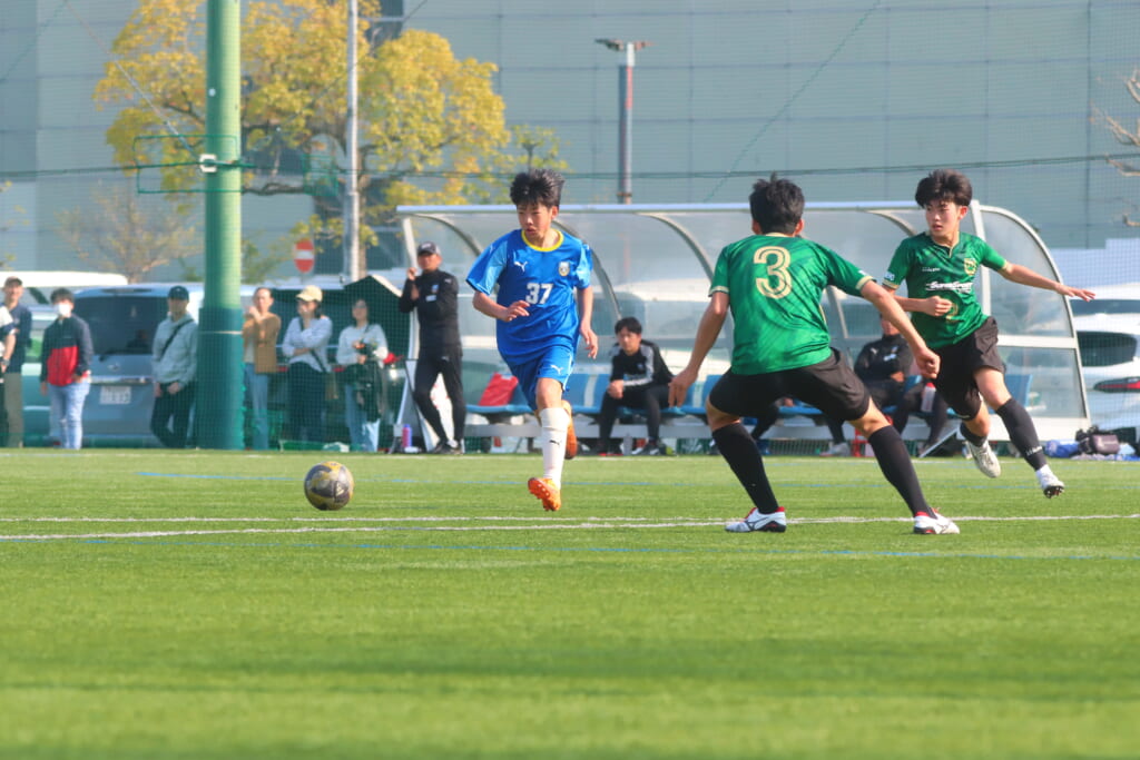セカンドボールを拾い、左サイドへ展開してきたところでは岩田陸叶がカット。簡単に前には行かせずに対応。