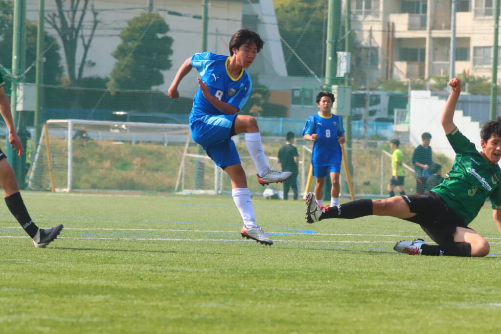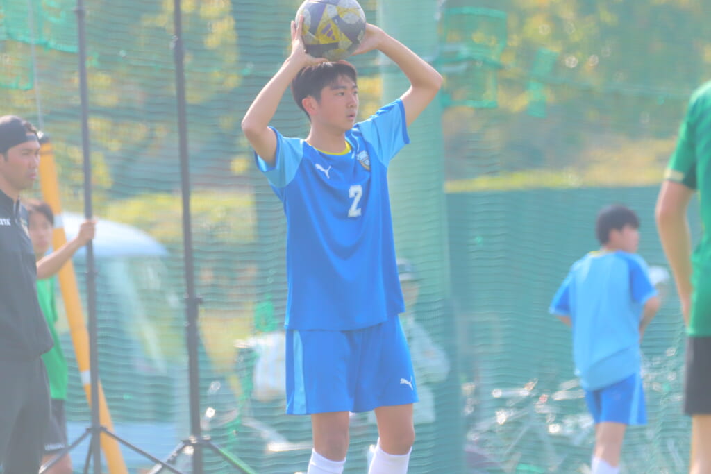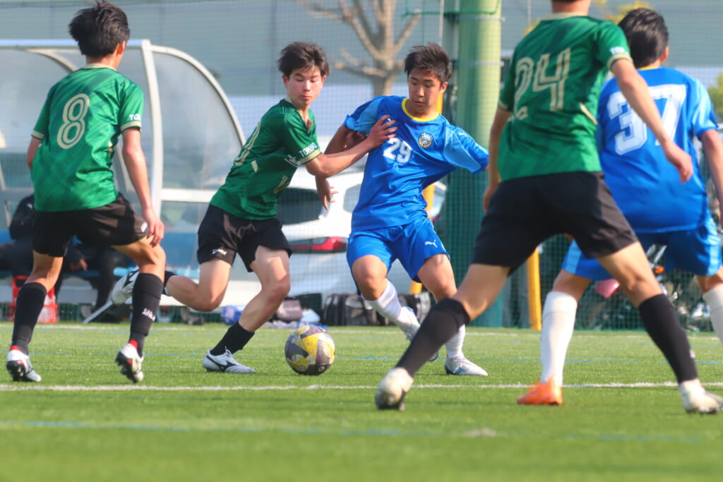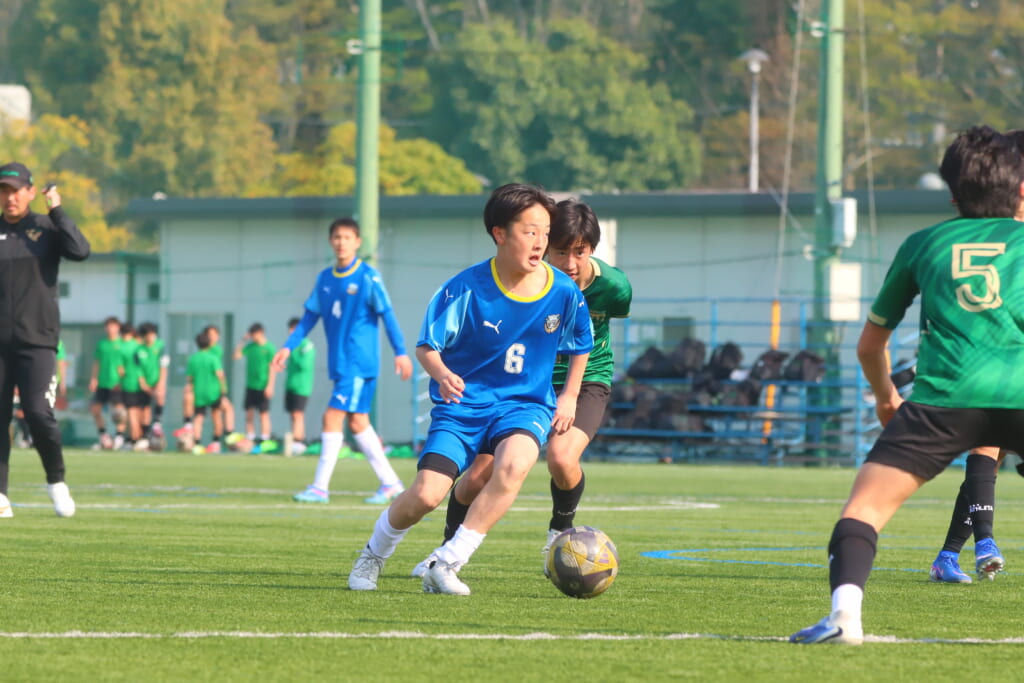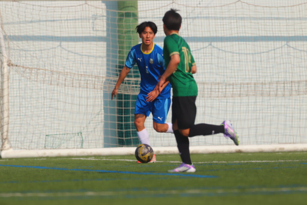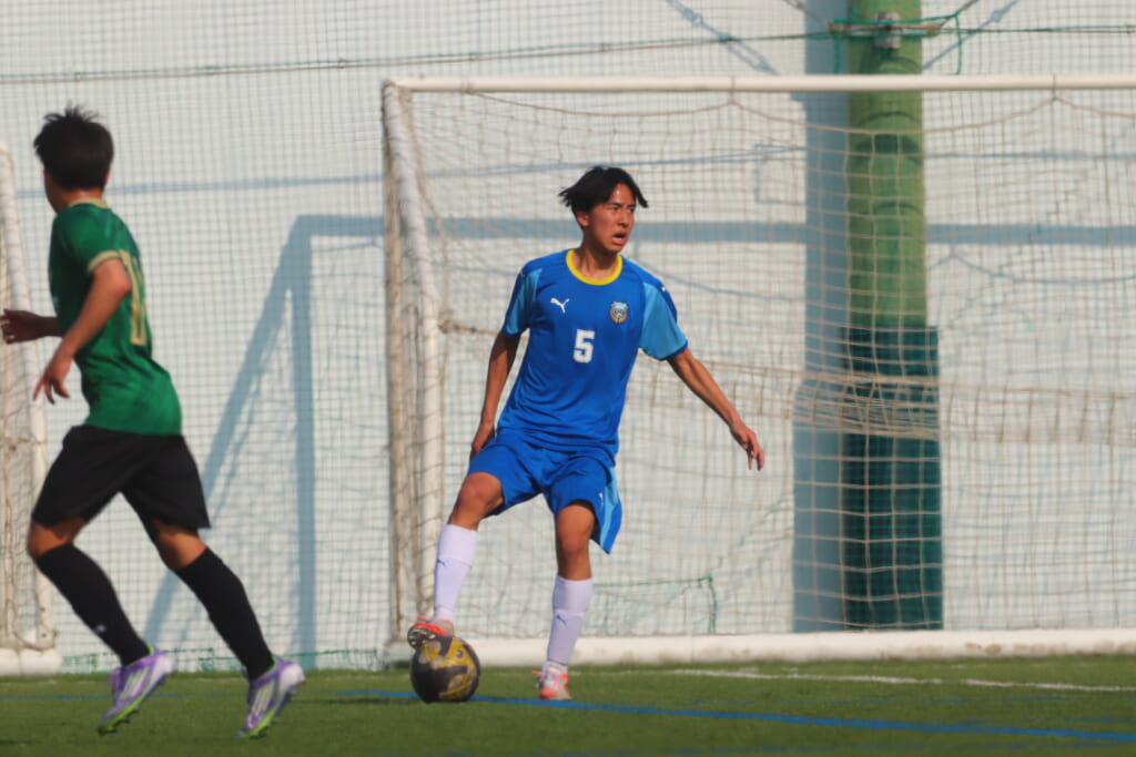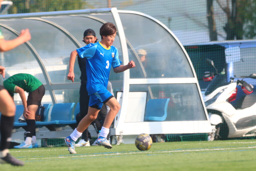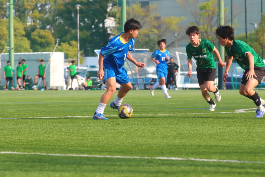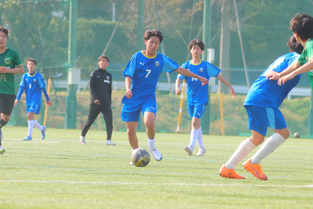 セカンドボールを拾い、左サイドへ展開してきたところでは岩田陸叶がカット。簡単に前には行かせずに対応。