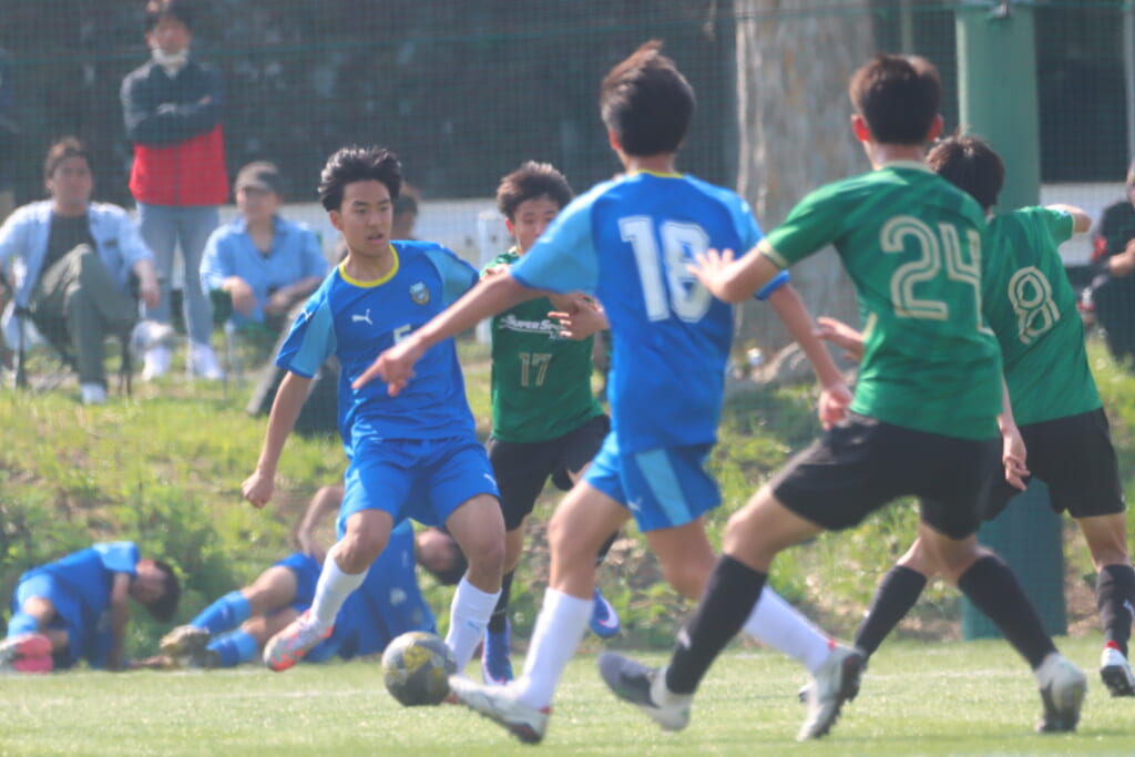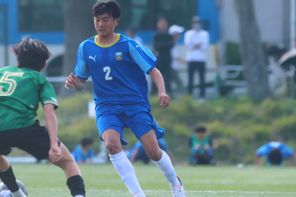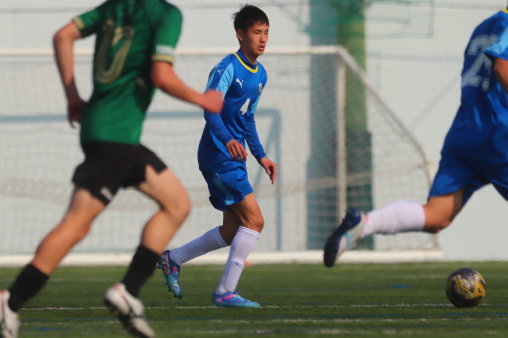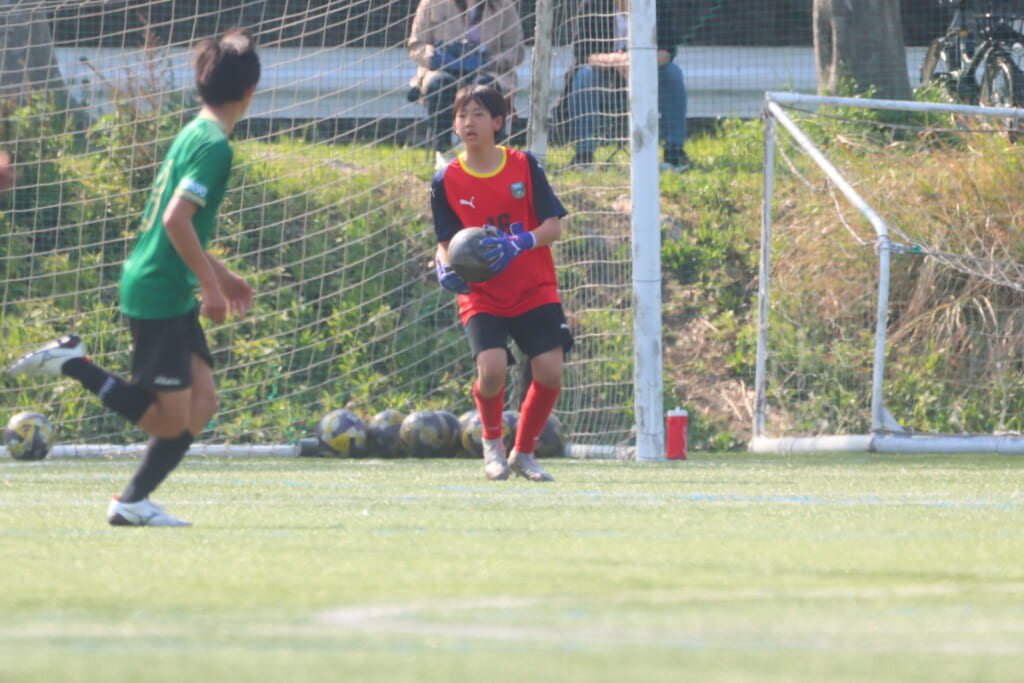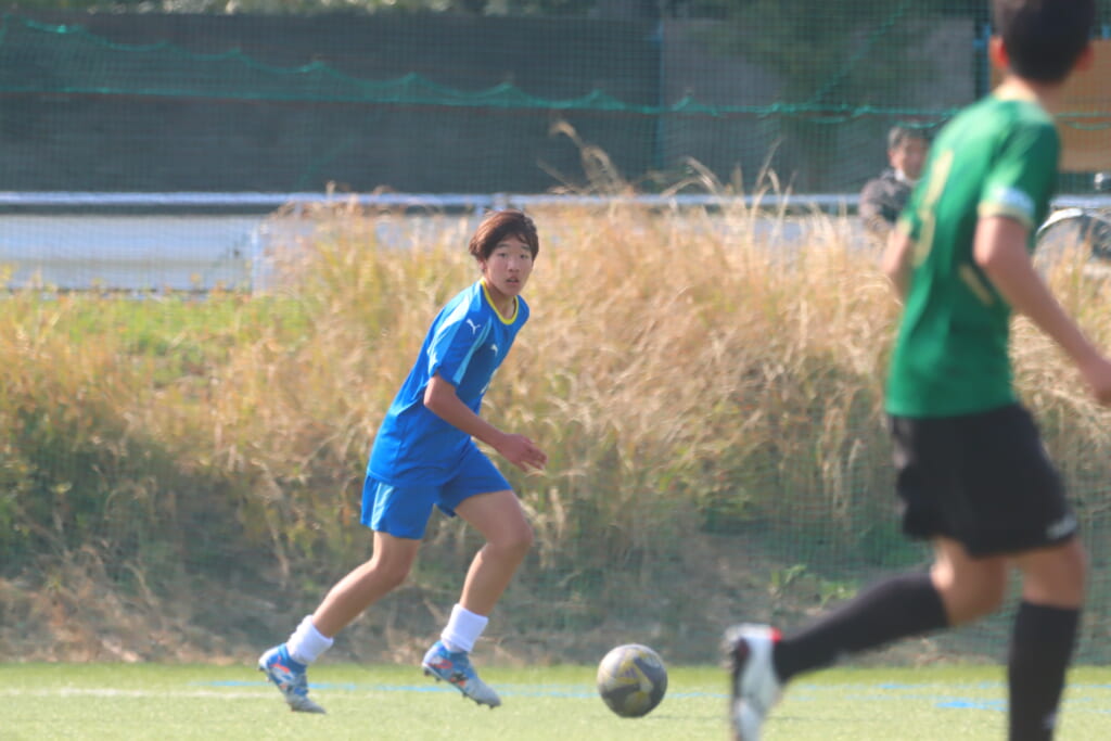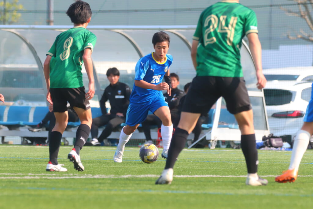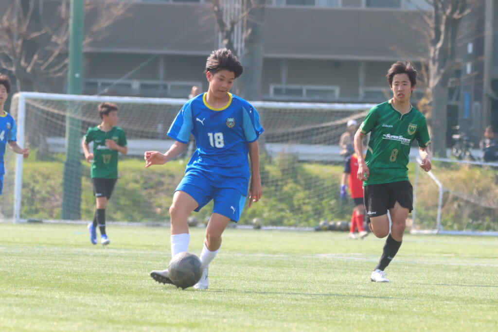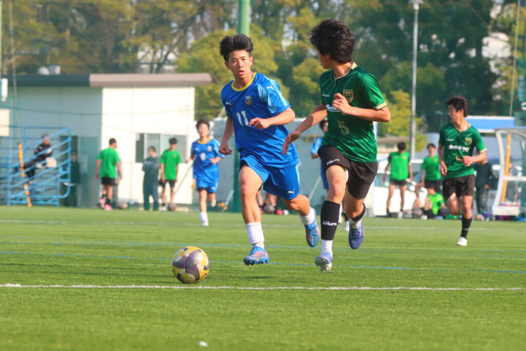セカンドボールを拾い、左サイドへ展開してきたところでは岩田陸叶がカット。簡単に前には行かせずに対応。