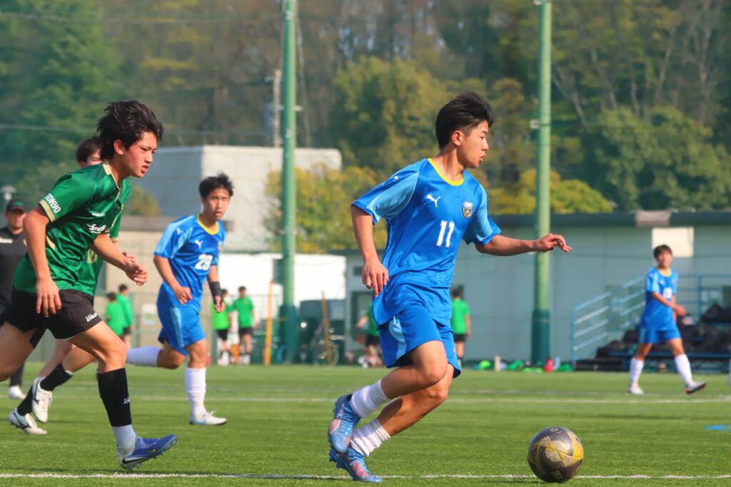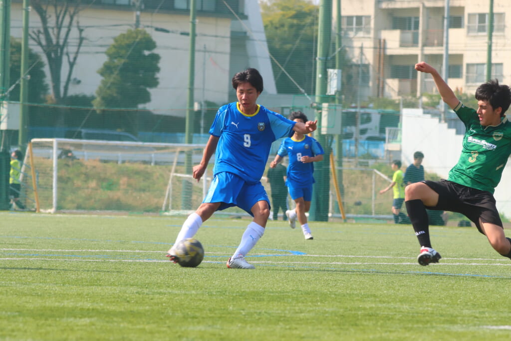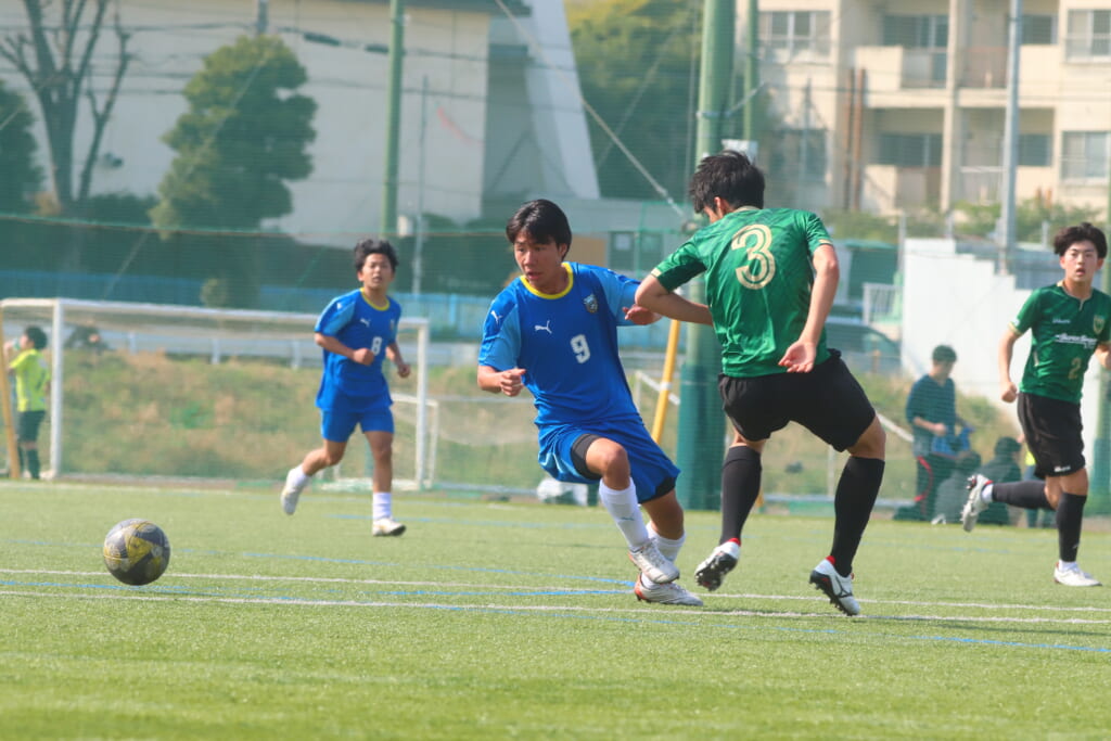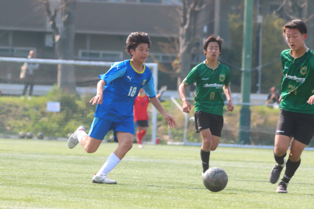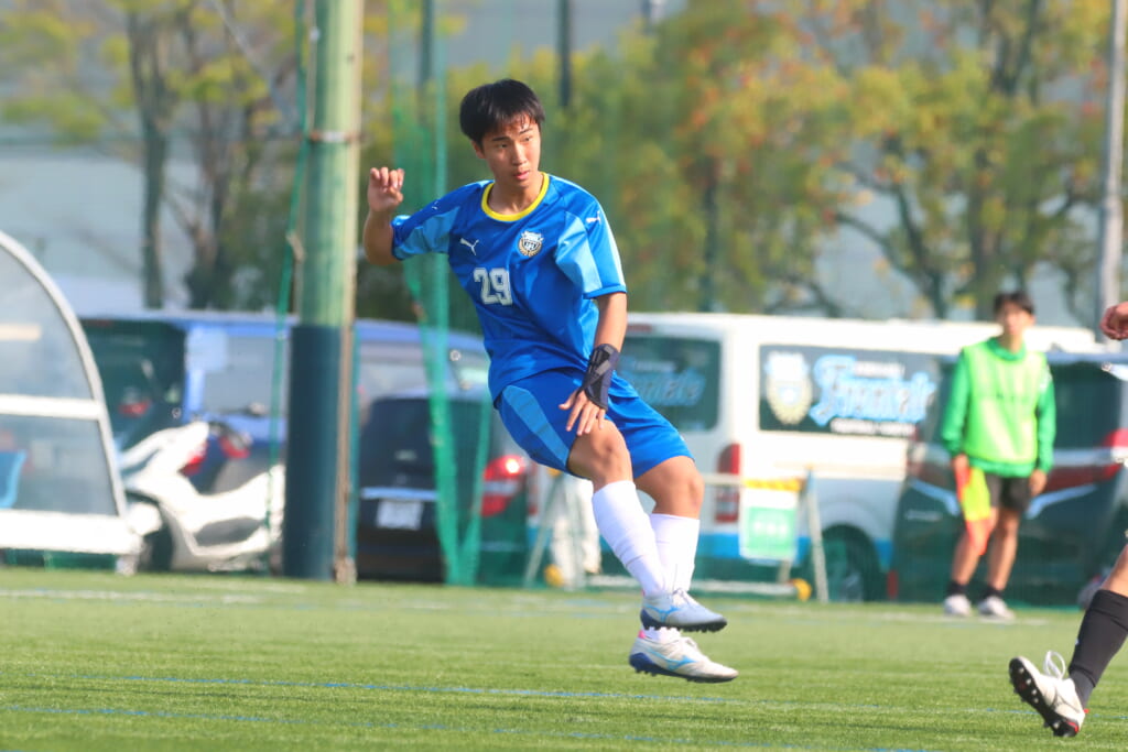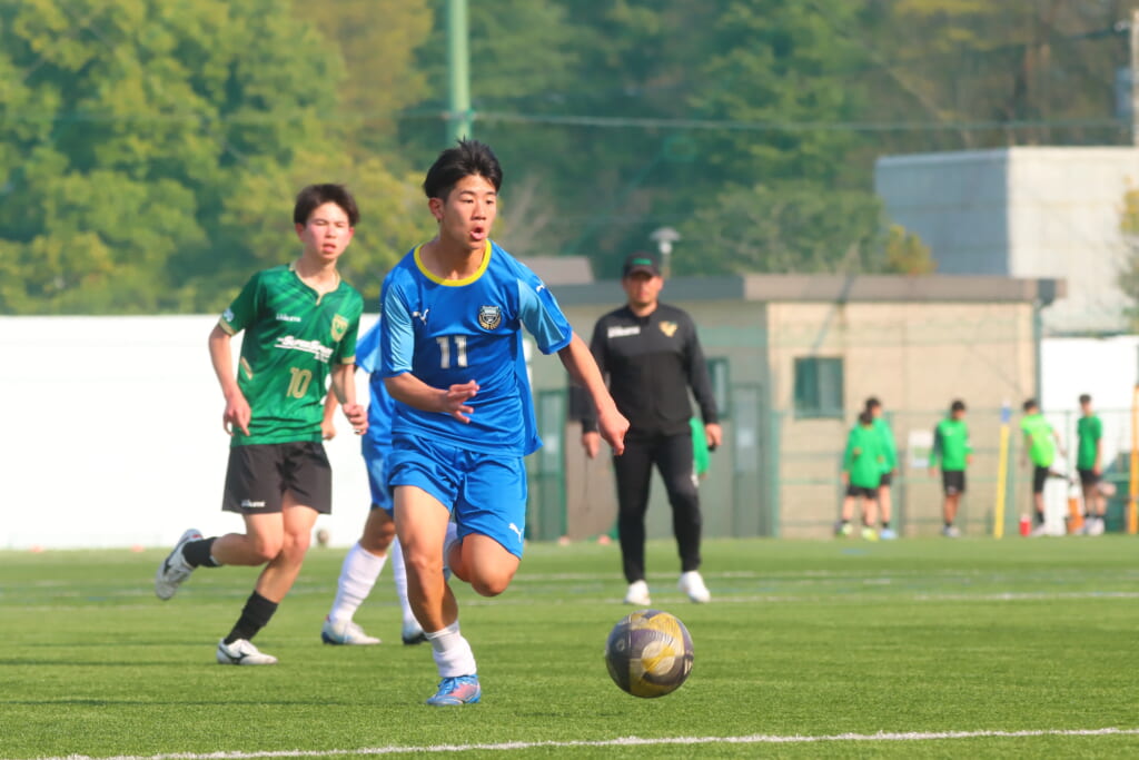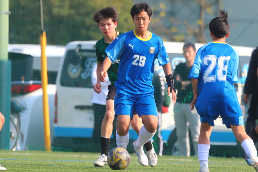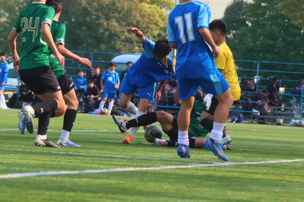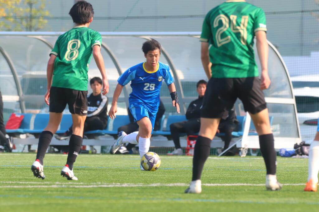 セカンドボールを拾い、左サイドへ展開してきたところでは岩田陸叶がカット。簡単に前には行かせずに対応。