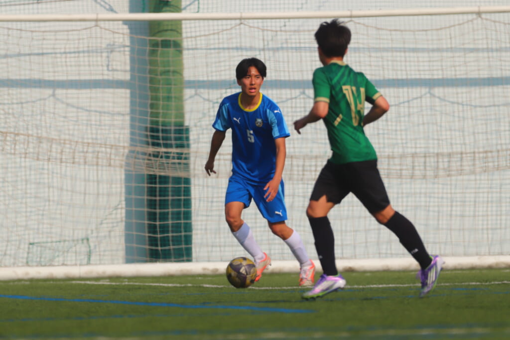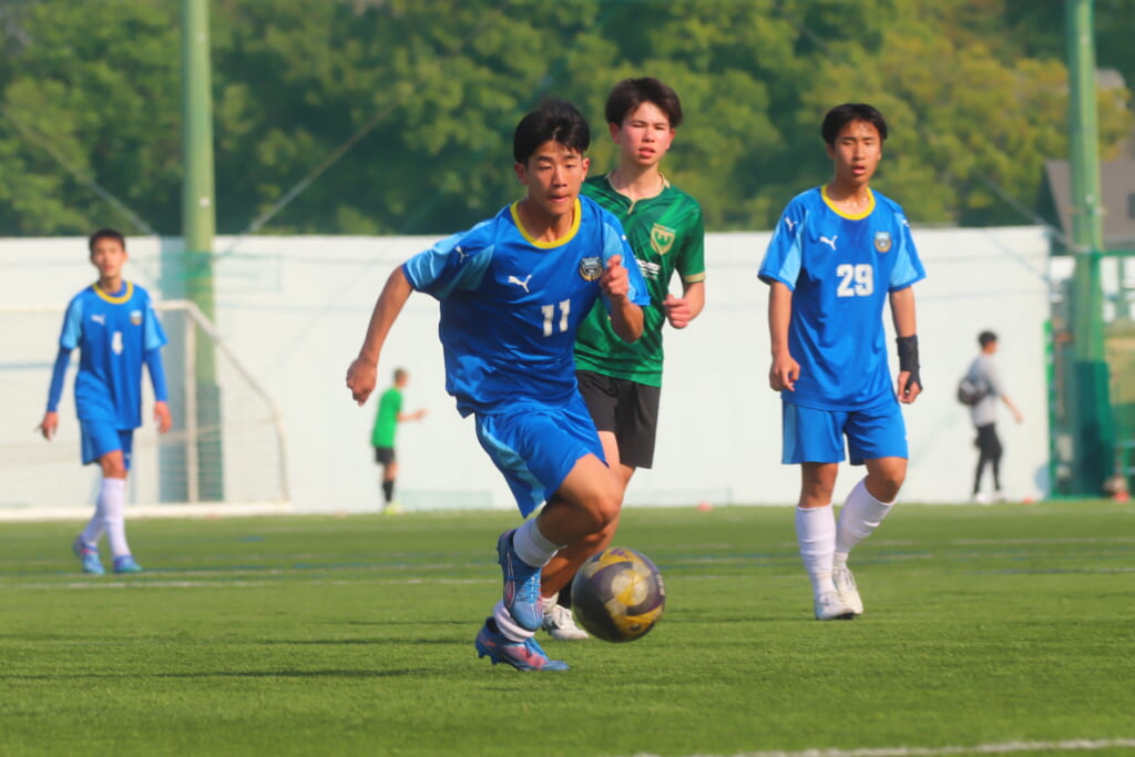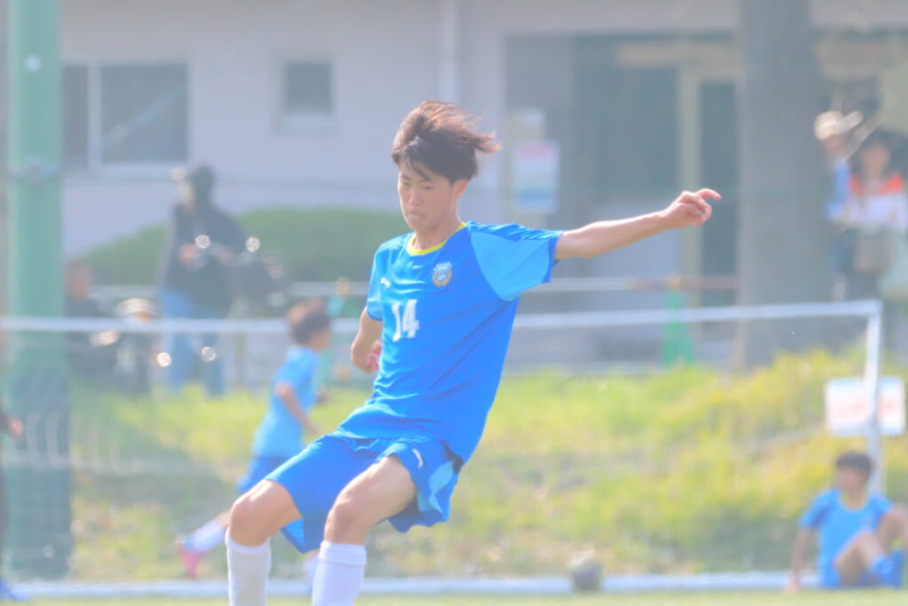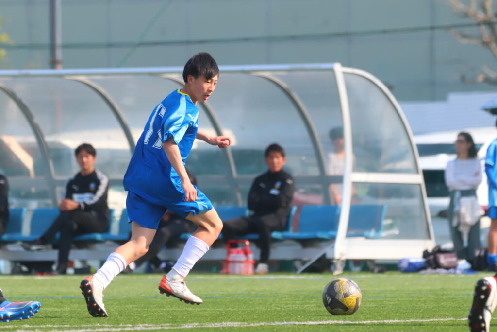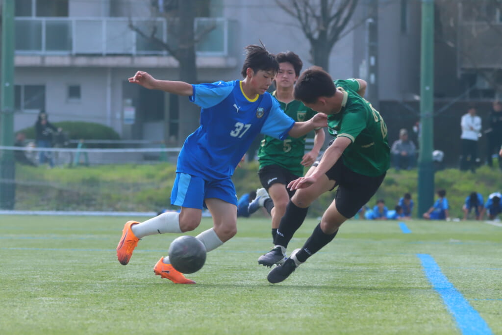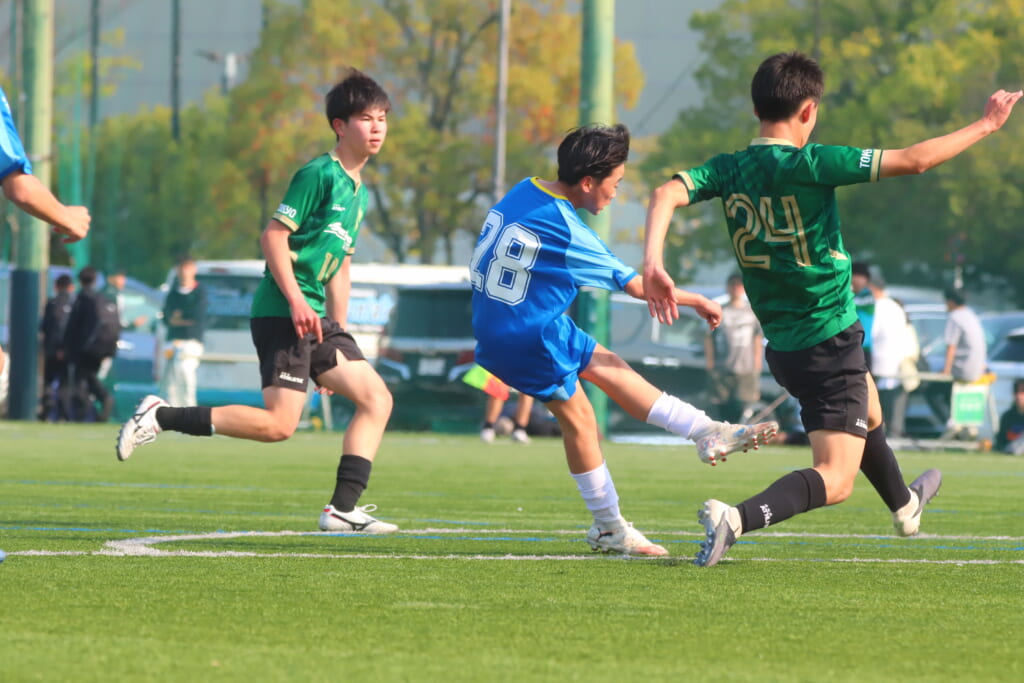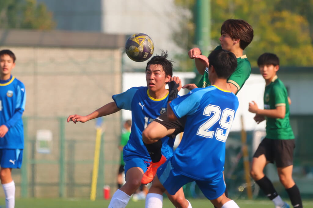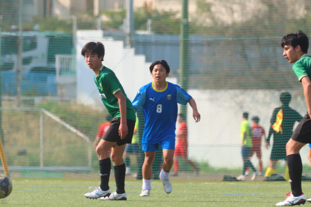セカンドボールを拾い、左サイドへ展開してきたところでは岩田陸叶がカット。簡単に前には行かせずに対応。