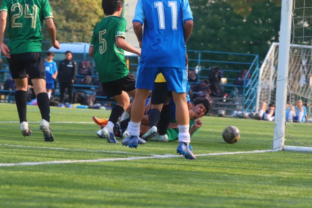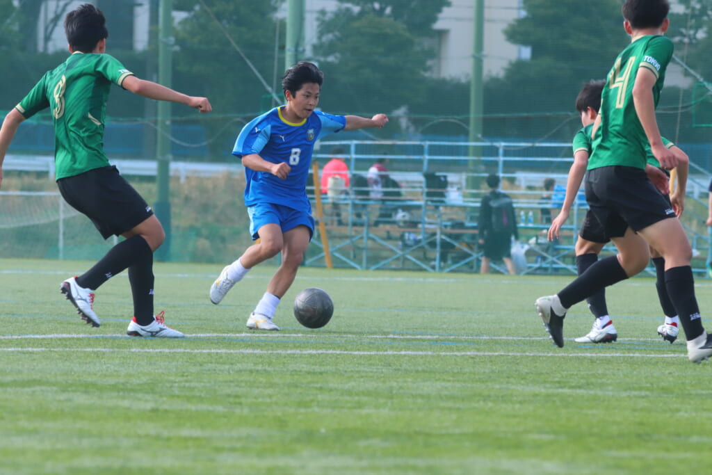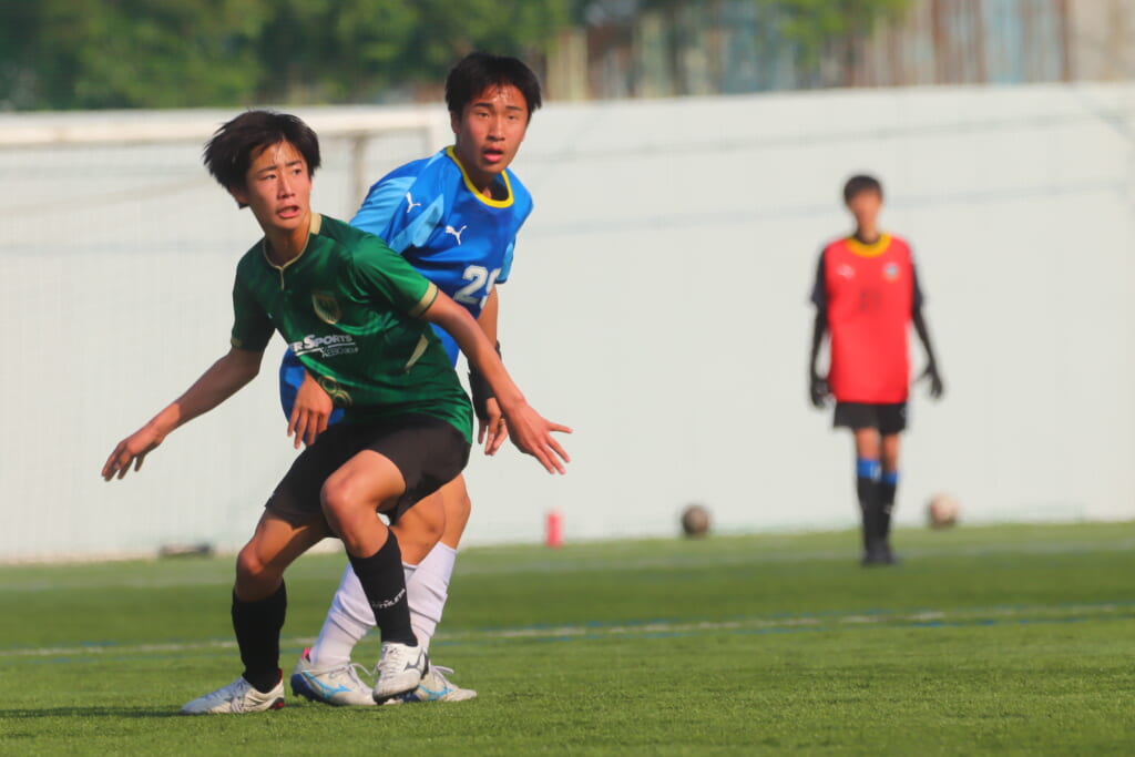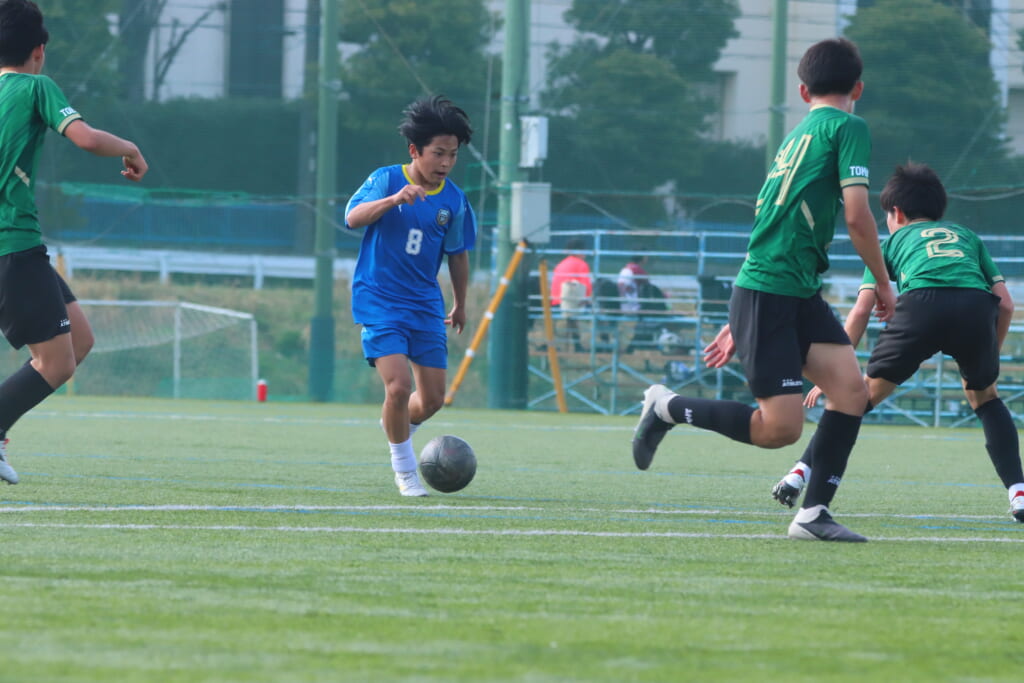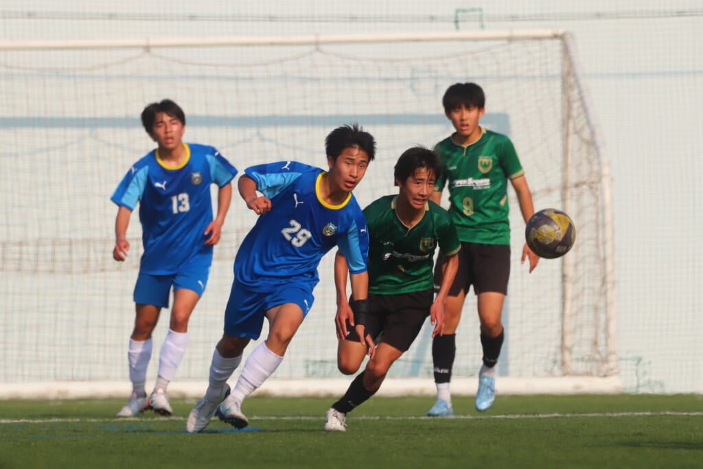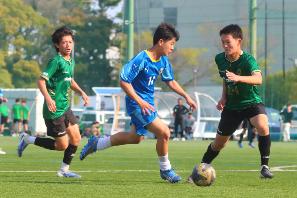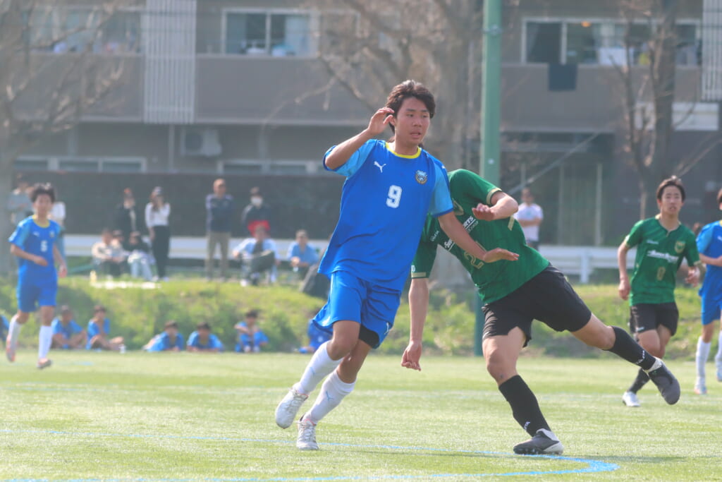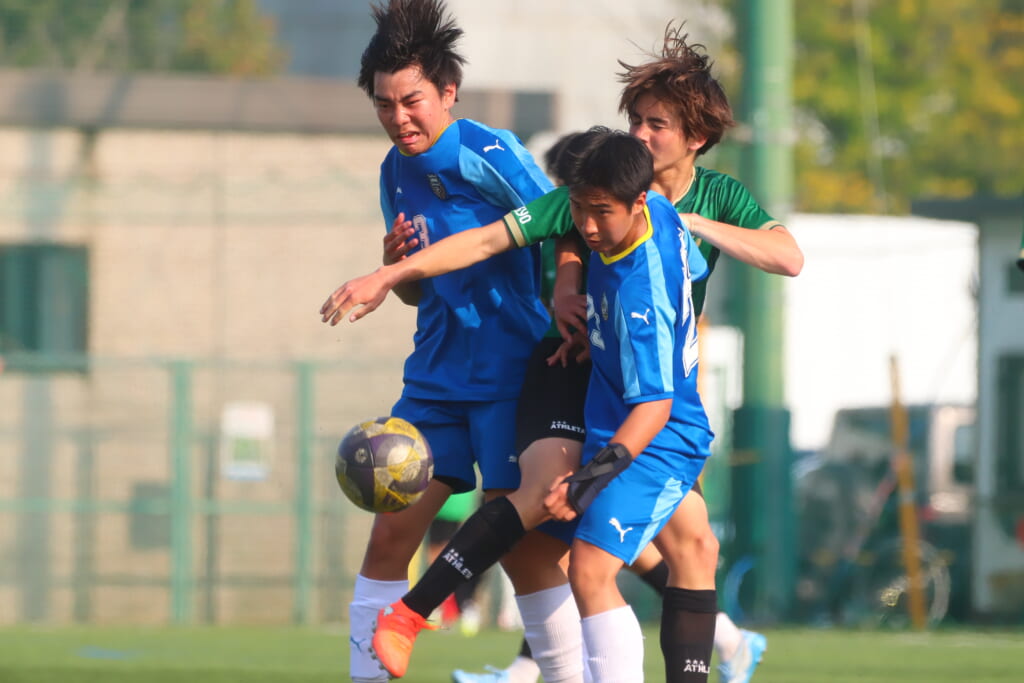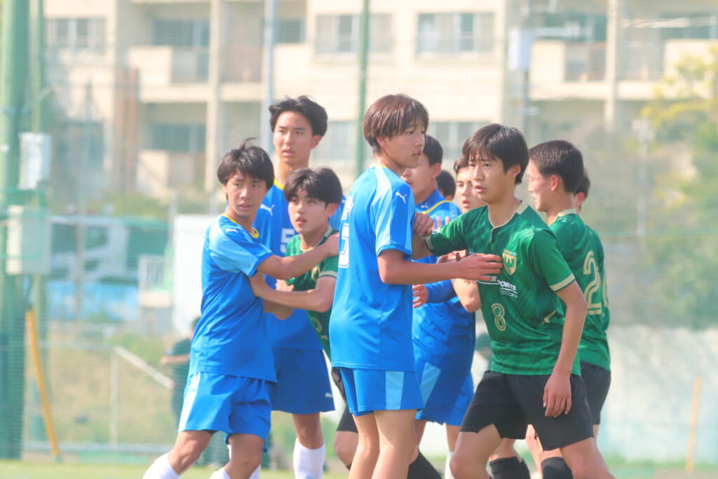セカンドボールを拾い、左サイドへ展開してきたところでは岩田陸叶がカット。簡単に前には行かせずに対応。