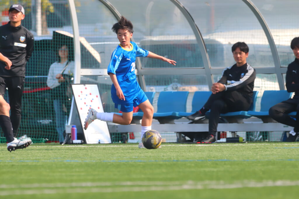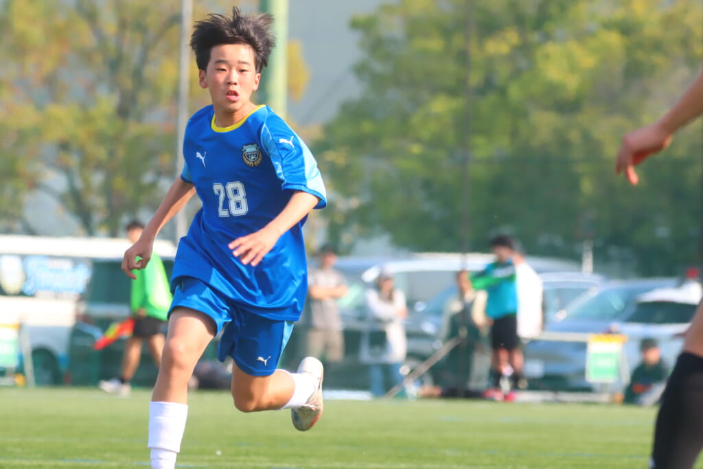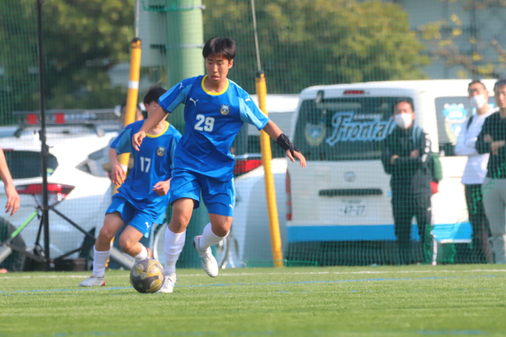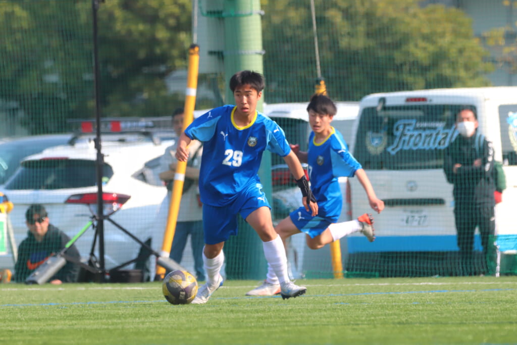 35分2本目、フロンターレ等々力は、GKに2年生の21山田龍青、最終ラインは右から15土本琉斗、5渡部朝陽、4西川諒、13川上琉偉、ボランチは6熊谷颯良、2年生の29細川惟旭、右MF11堀井陽向、左MF17長岡幸之介、トップ下2年生の28川埜蒼真、前線には2年生の37岩田陸叶。