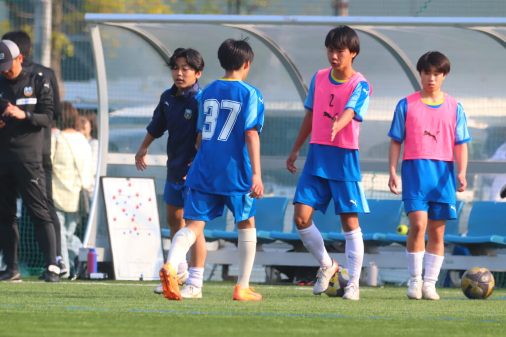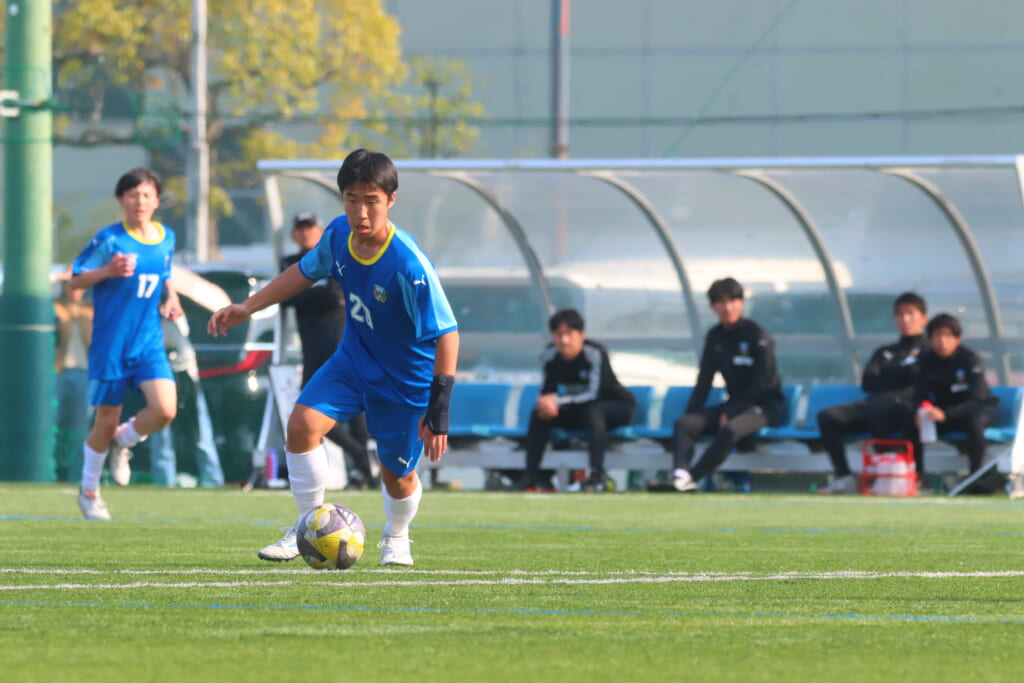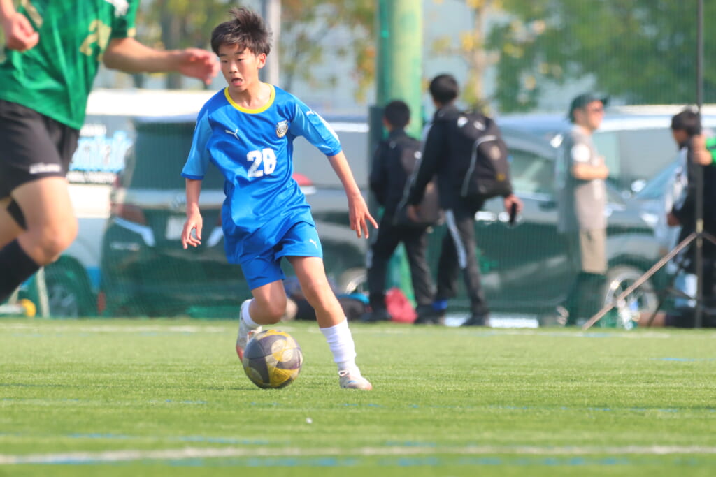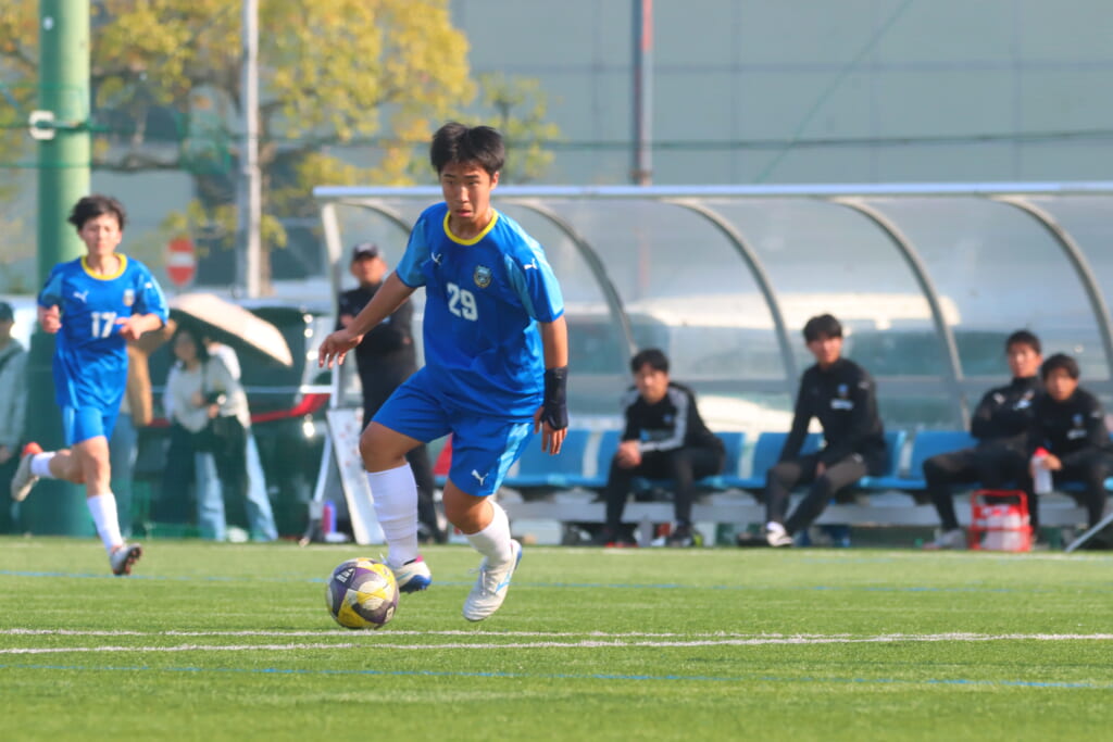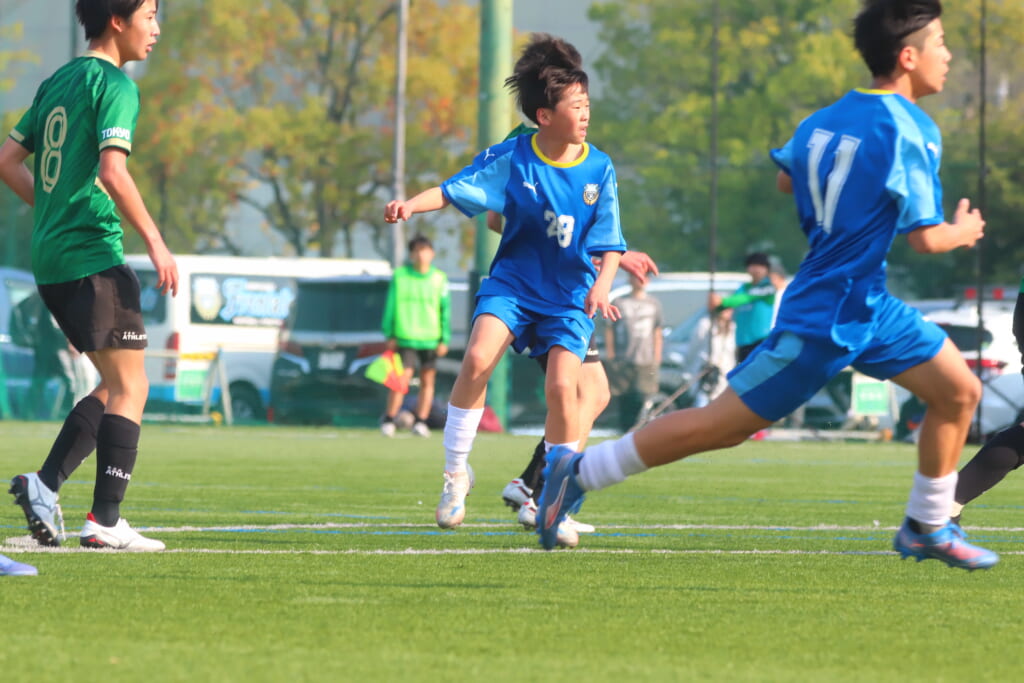 35分2本目、フロンターレ等々力は、GKに2年生の21山田龍青、最終ラインは右から15土本琉斗、5渡部朝陽、4西川諒、13川上琉偉、ボランチは6熊谷颯良、2年生の29細川惟旭、右MF11堀井陽向、左MF17長岡幸之介、トップ下2年生の28川埜蒼真、前線には2年生の37岩田陸叶。