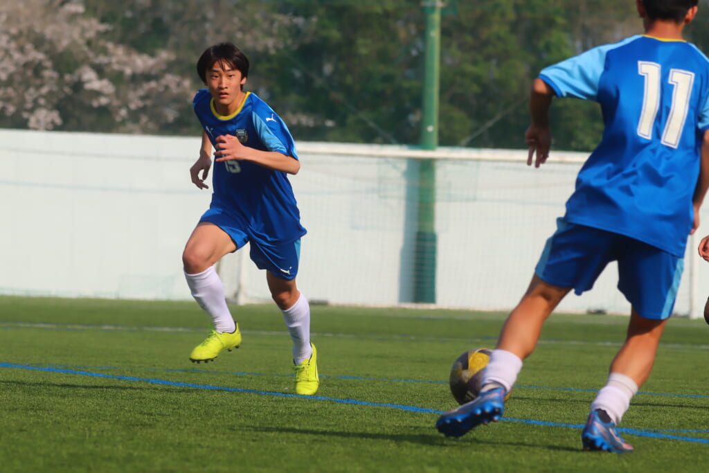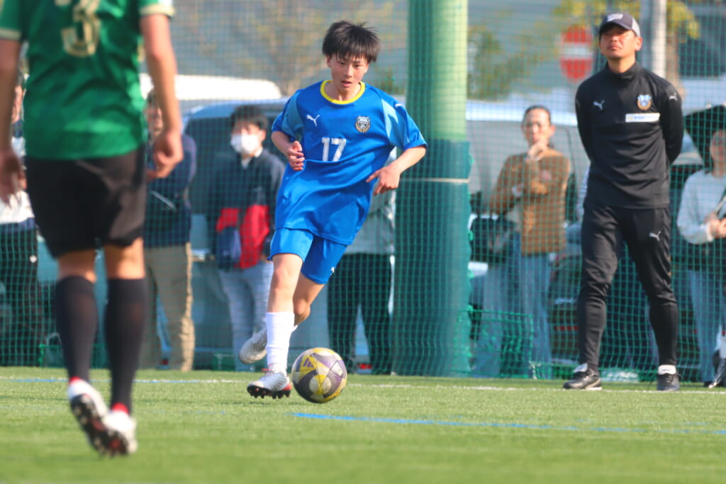下がり目で岩田陸叶が受け、熊谷、堀井と右サイドへつながったフロンターレ等々力は、堀井のパスに土本がエリア外右へ。