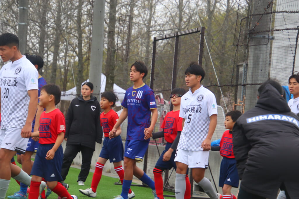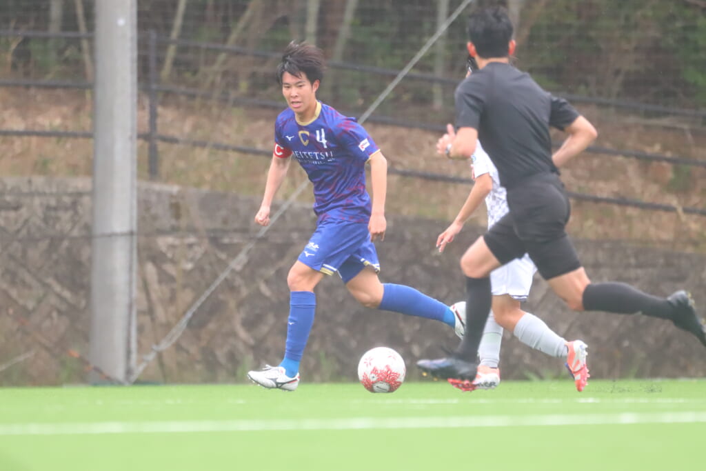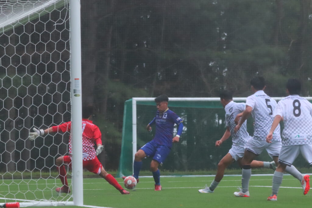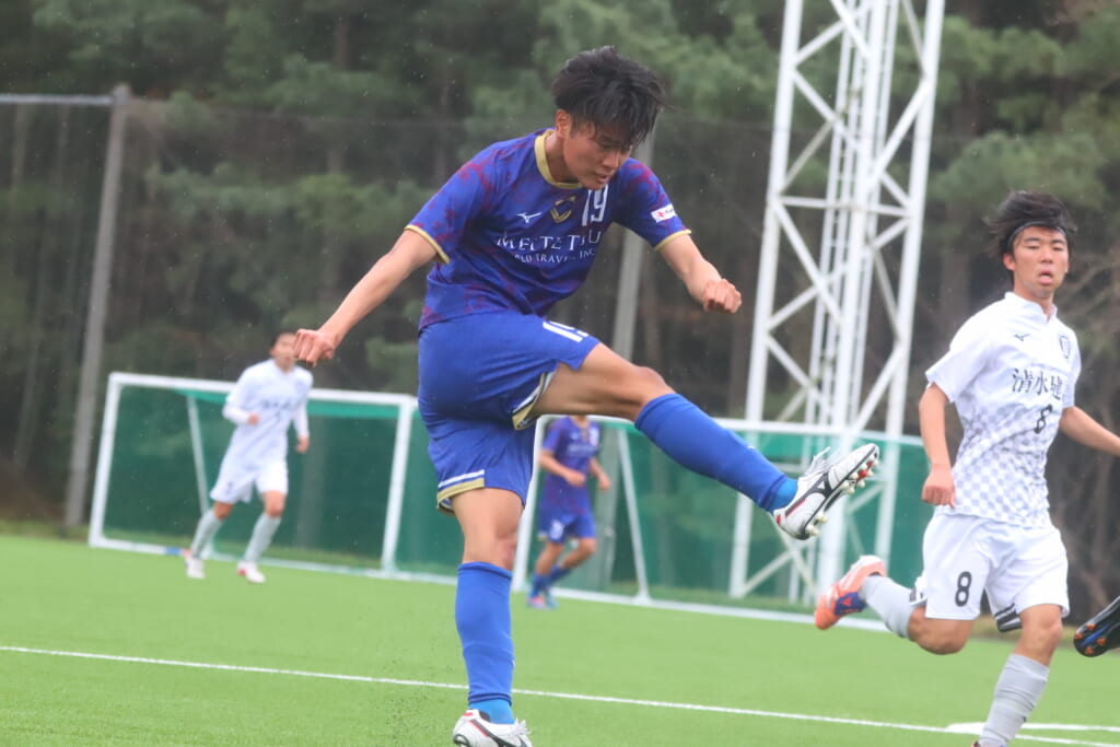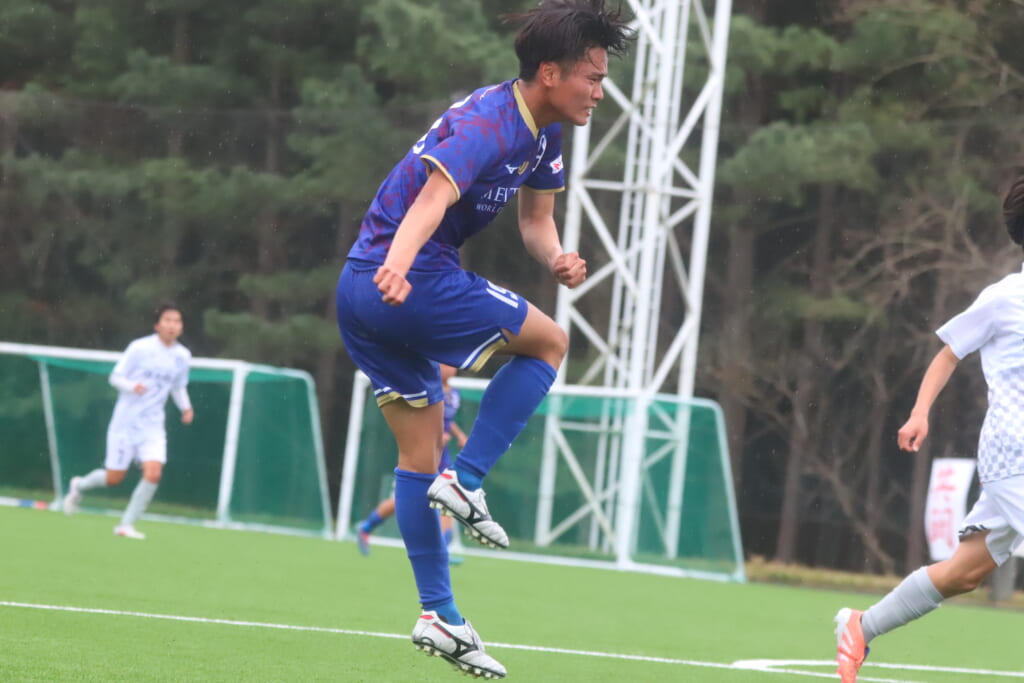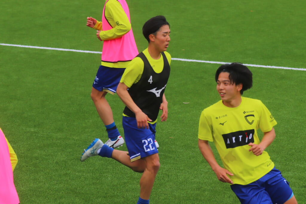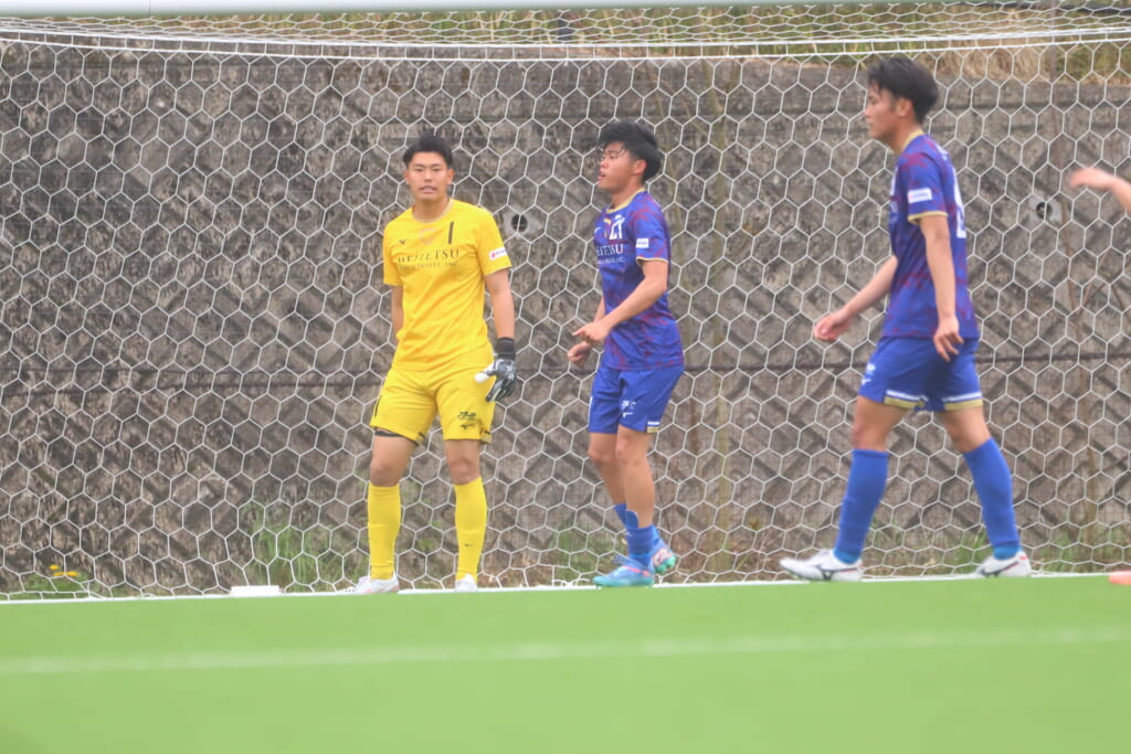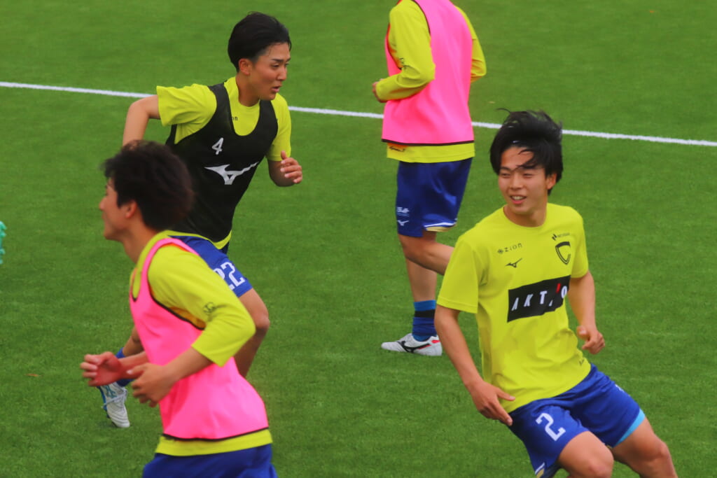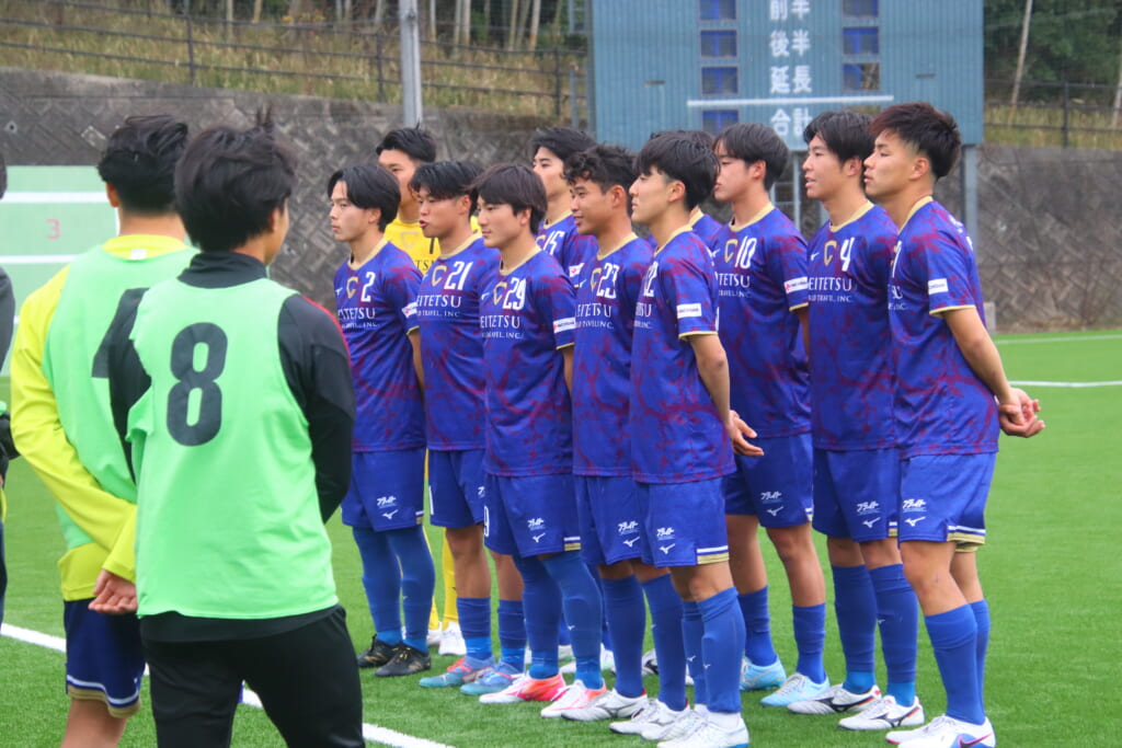 先発は、GK1山田匠真、最終ラインは右から20山本瑛士、3中田大翔、2宮下朋也、キャプテンの6松本翔暉、ボランチは8原徹平、5神谷昴成、右MF7川崎奈那斗、左MF16青山咲太、トップ下14井戸健介、前線には11稲垣椋也。