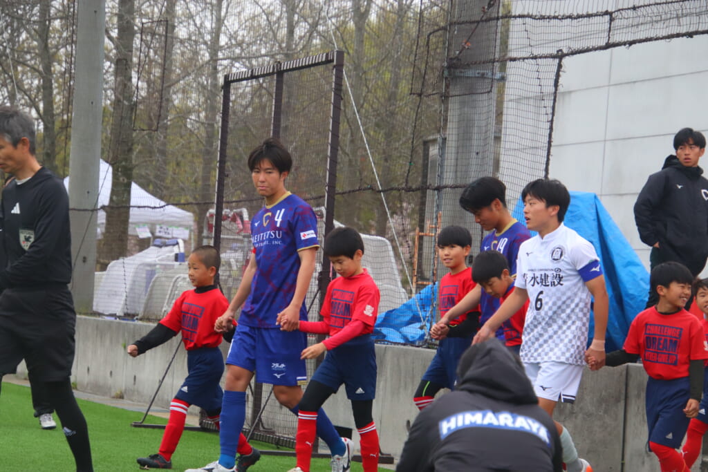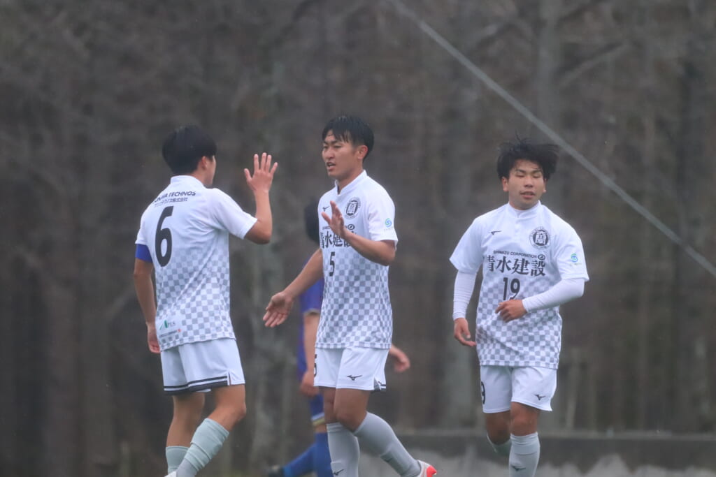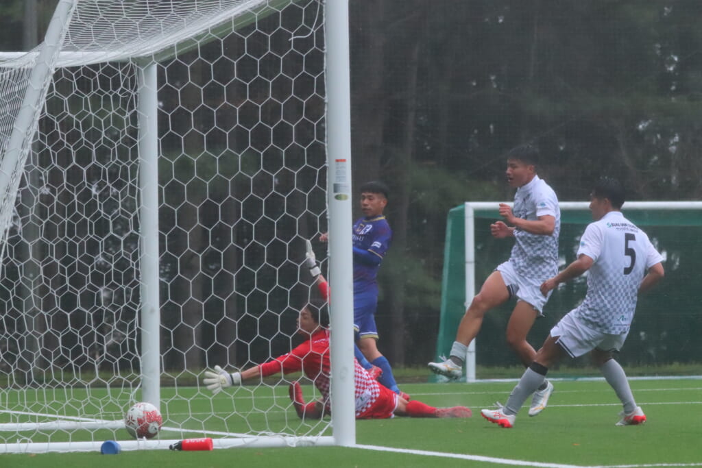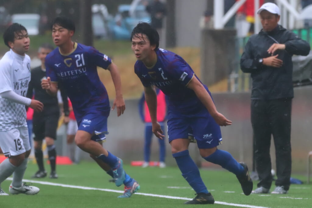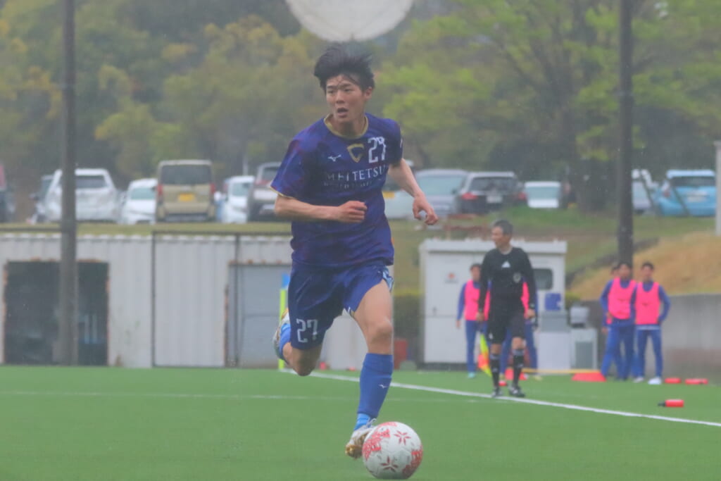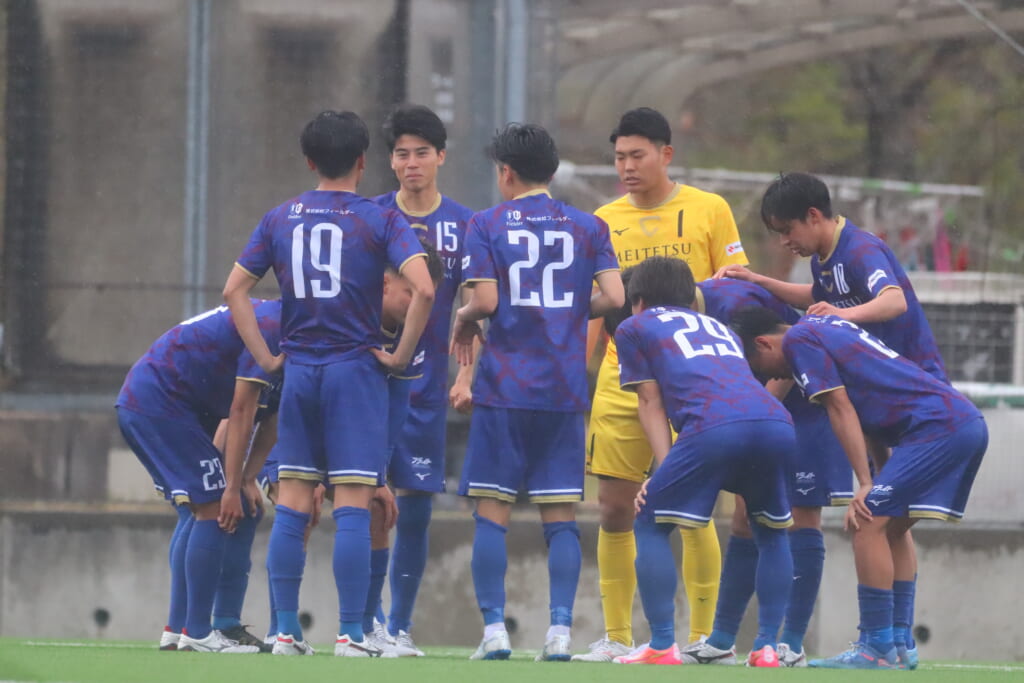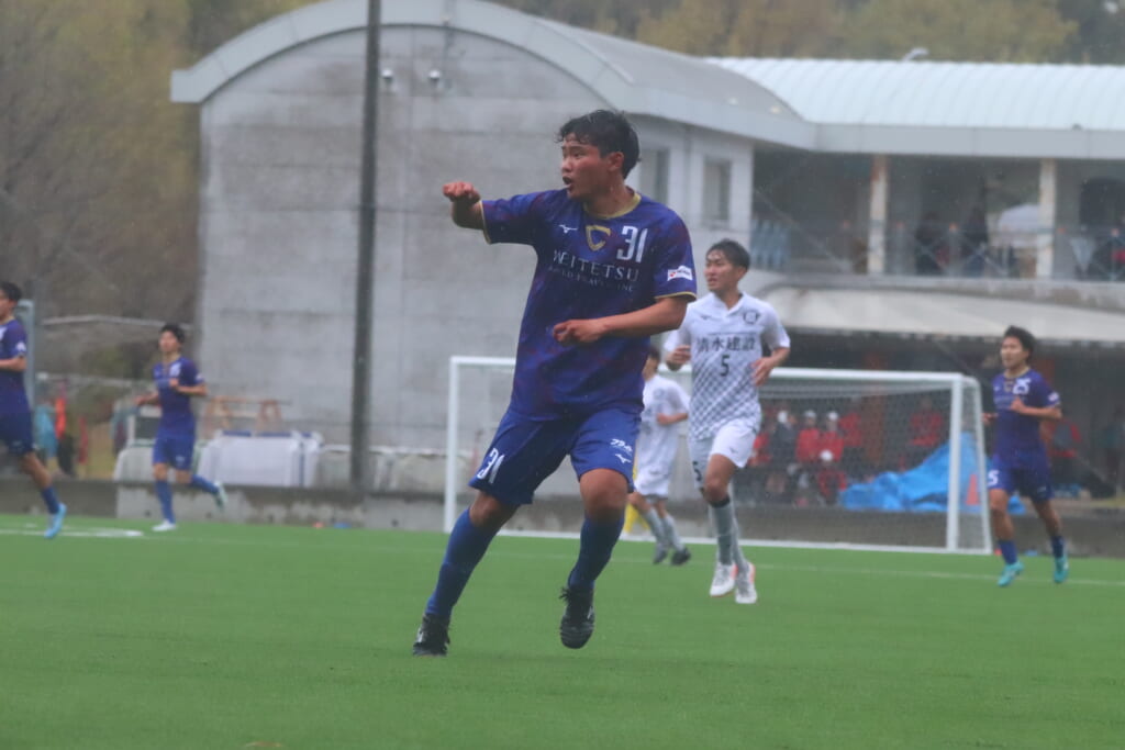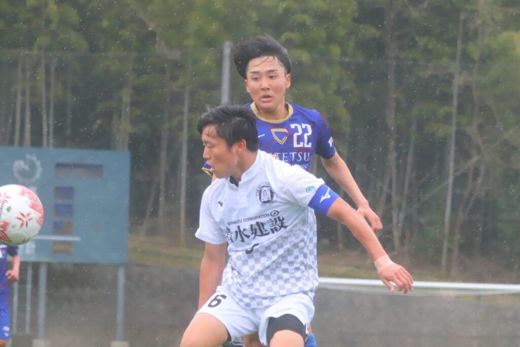 先発は、GK1山田匠真、最終ラインは右から20山本瑛士、3中田大翔、2宮下朋也、キャプテンの6松本翔暉、ボランチは8原徹平、5神谷昴成、右MF7川崎奈那斗、左MF16青山咲太、トップ下14井戸健介、前線には11稲垣椋也。