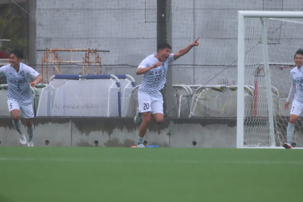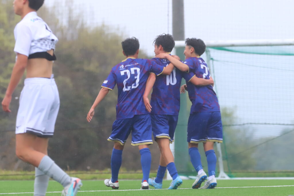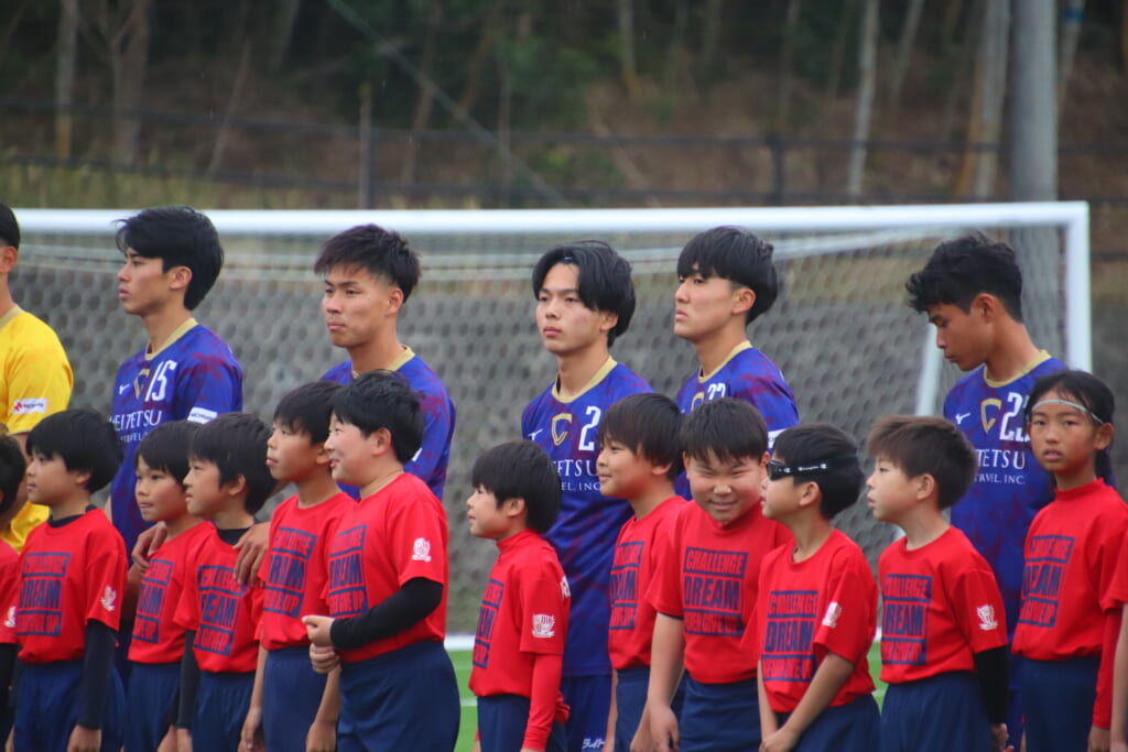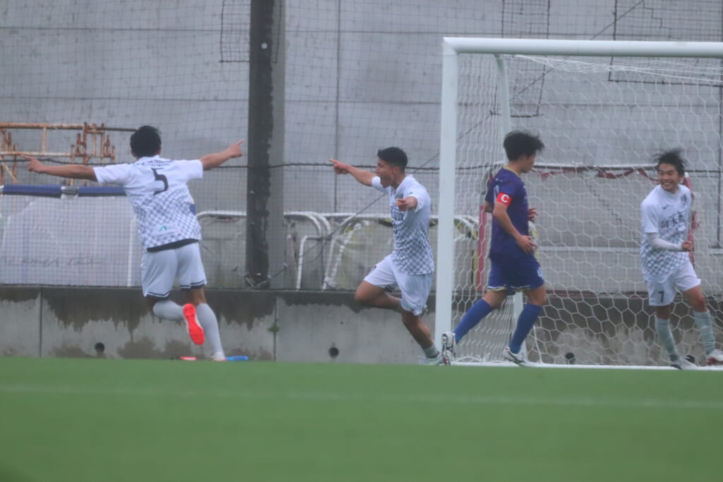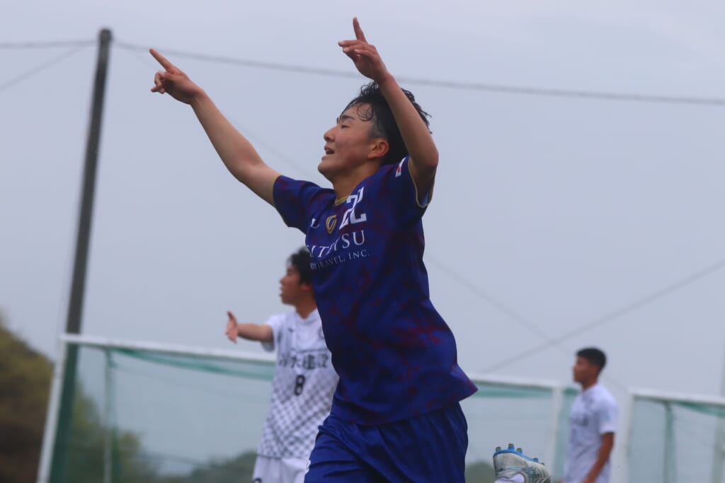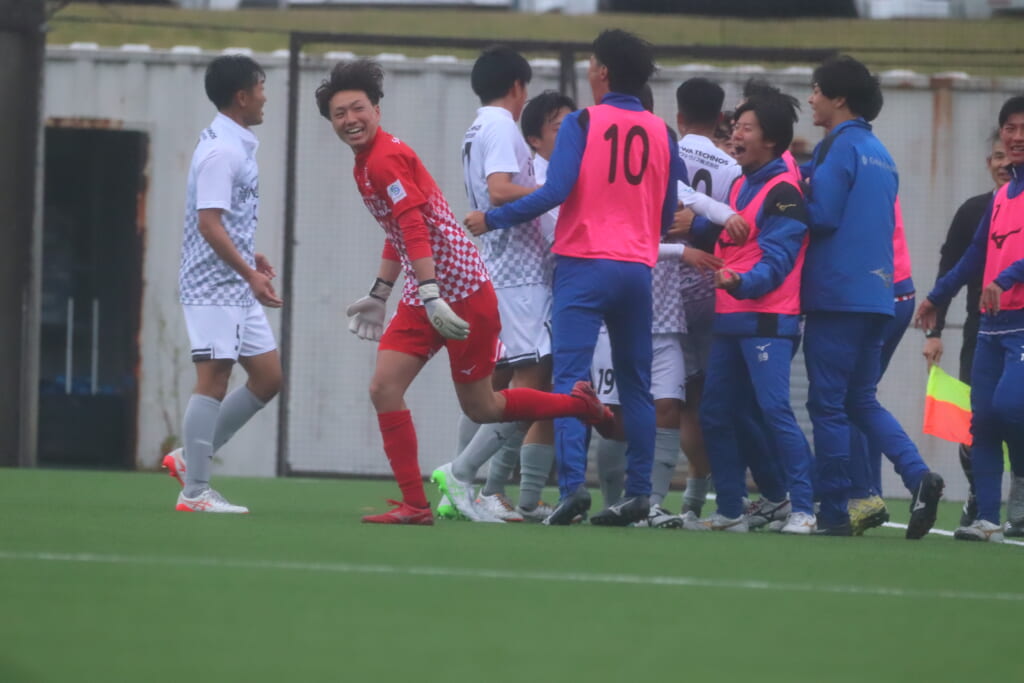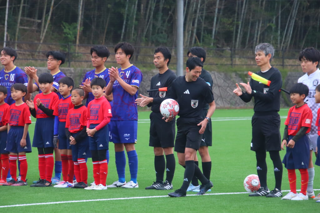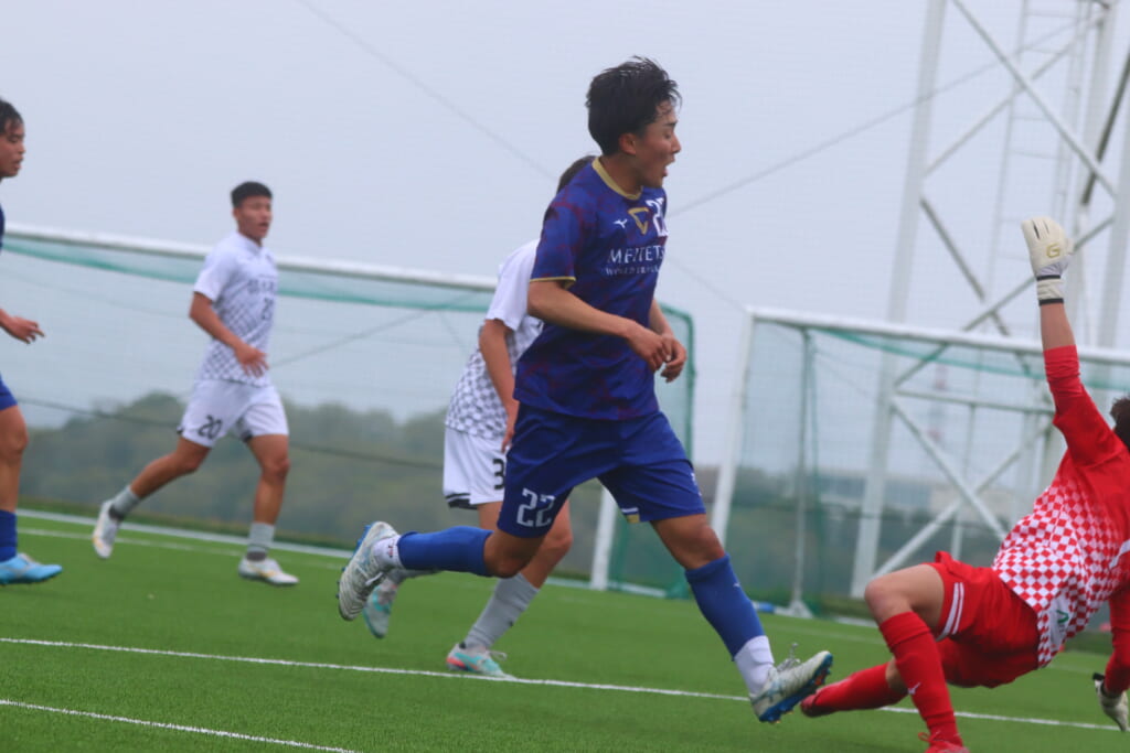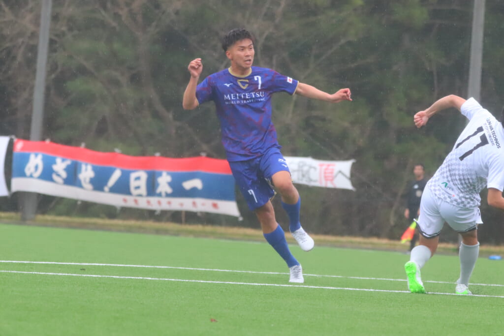 先発は、GK1山田匠真、最終ラインは右から20山本瑛士、3中田大翔、2宮下朋也、キャプテンの6松本翔暉、ボランチは8原徹平、5神谷昴成、右MF7川崎奈那斗、左MF16青山咲太、トップ下14井戸健介、前線には11稲垣椋也。
